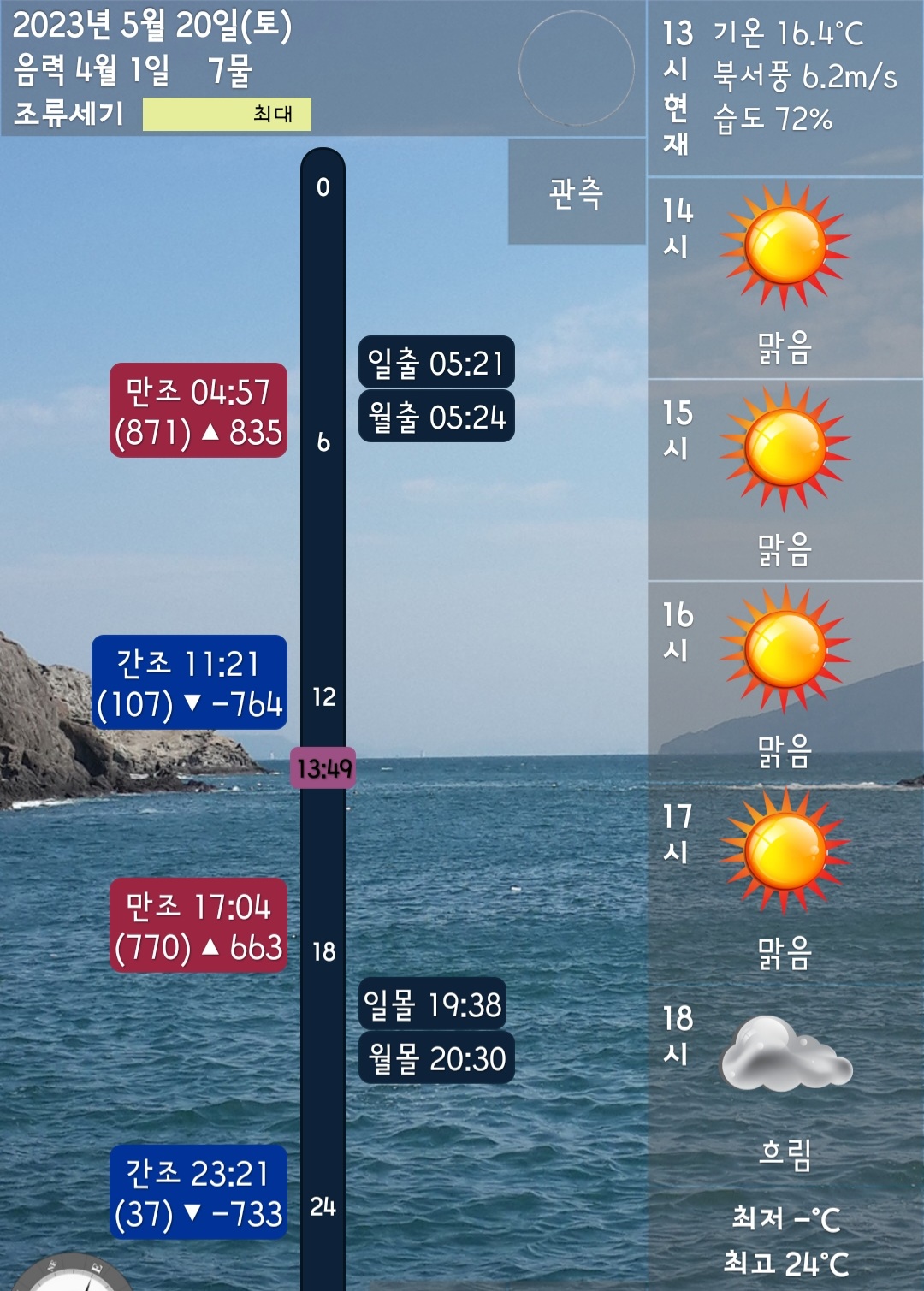 □ 바다상황 : 4~6단 바람, 파도 다소 높음