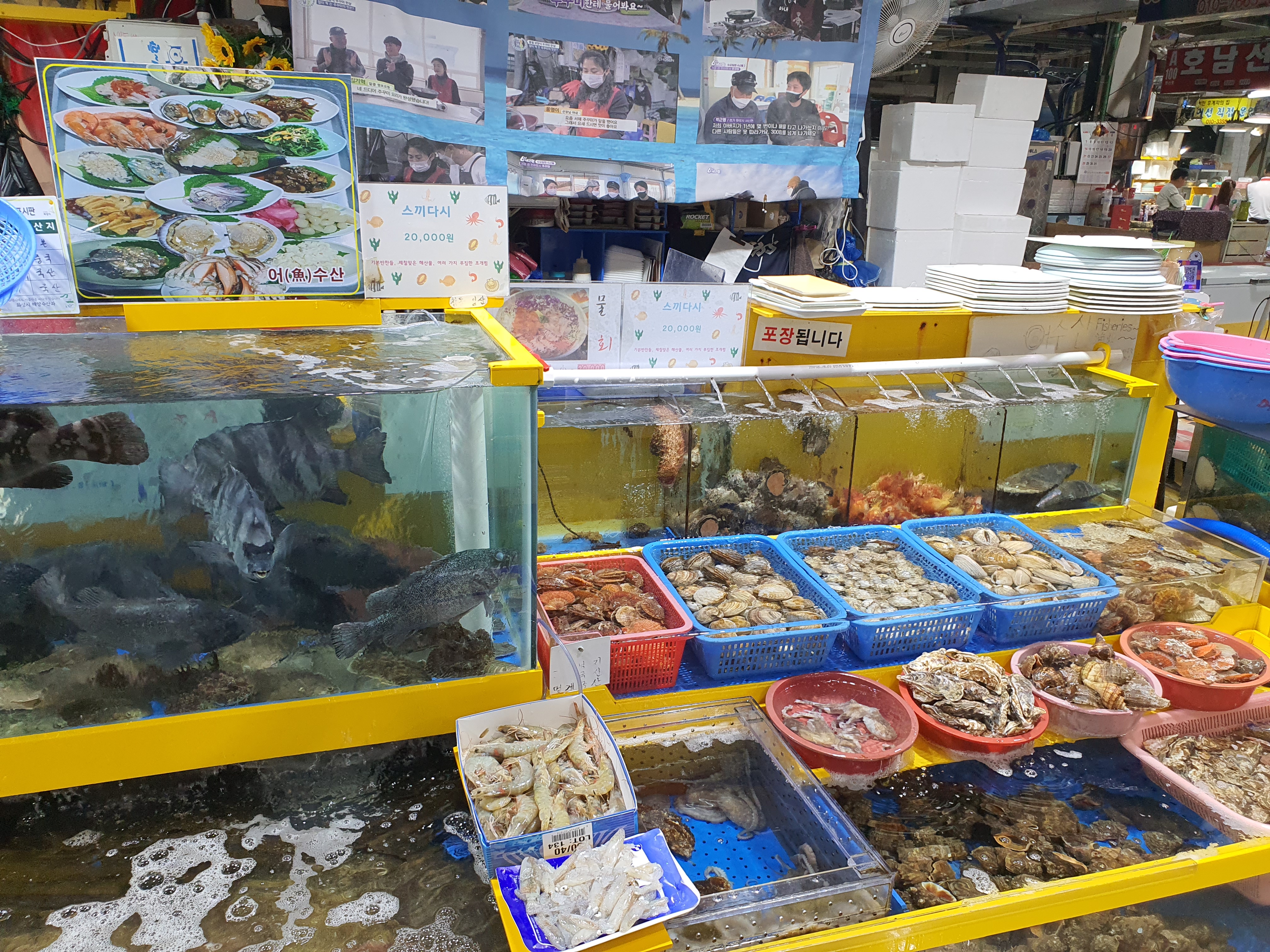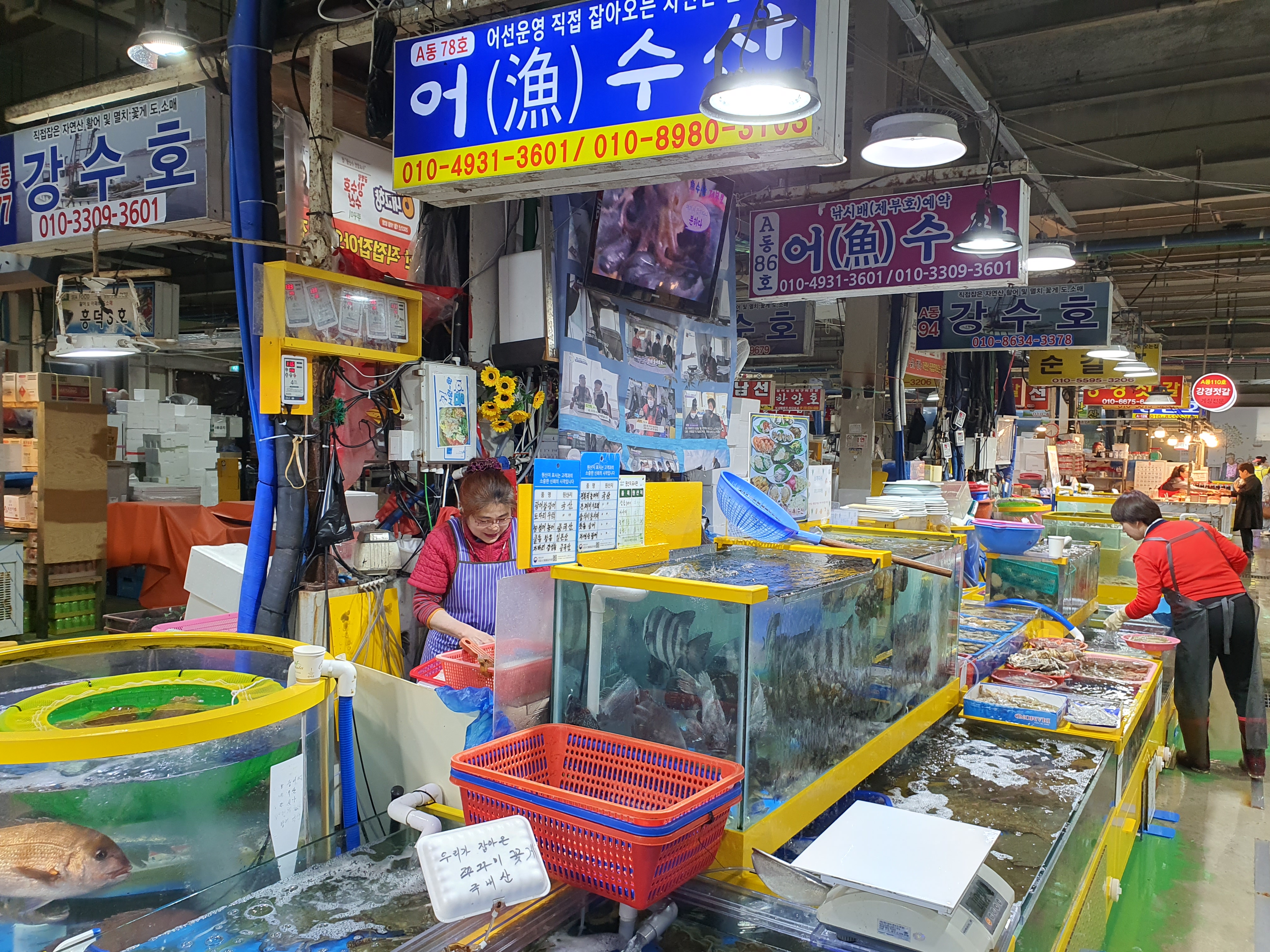 수산물직판장은 A동과 B동으로 나뉘어지는데, 당일은 B동은 쉬는거 같더라구요. A동 둘러보다가 자연산 광어를 추천하는 어수산에서 구매했네요.