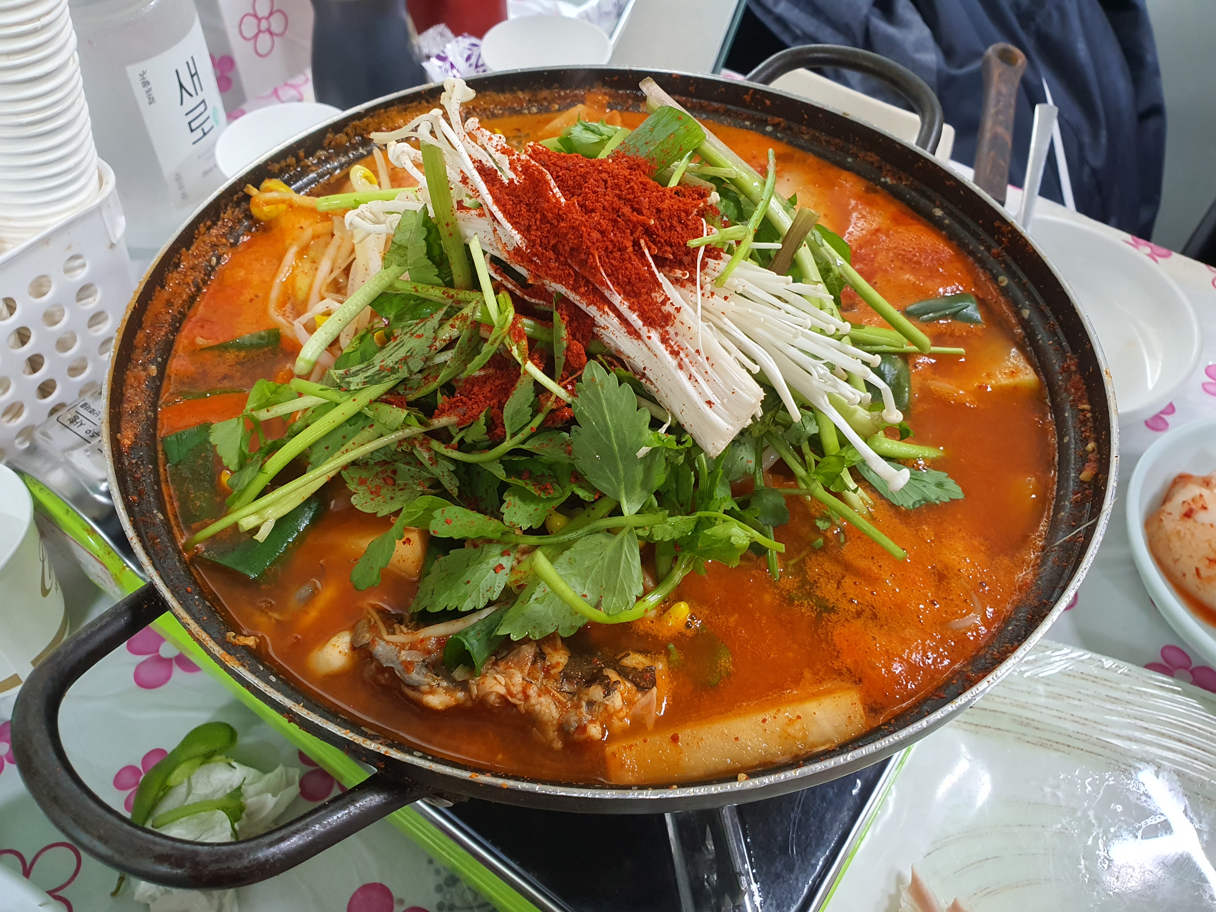 그래도 매운탕은 빠질 수 없기에 작은걸로 주문해서 먹는데 광어이외에도 다른 어종도 푸짐하게 많이 들어가 있더군요.