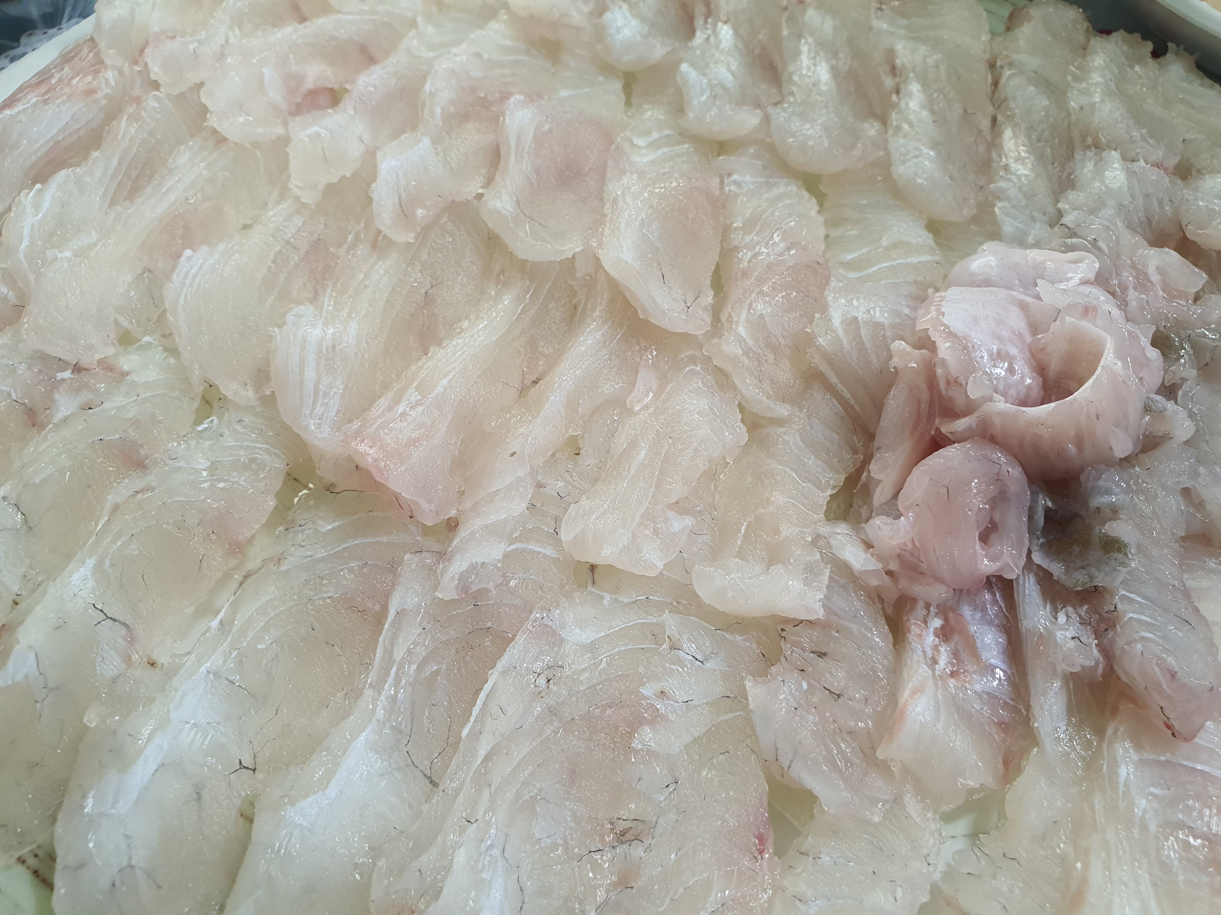 스키다시로 에피타이저로 먹고 있으니 자연산 광어회가 나옵니다.
