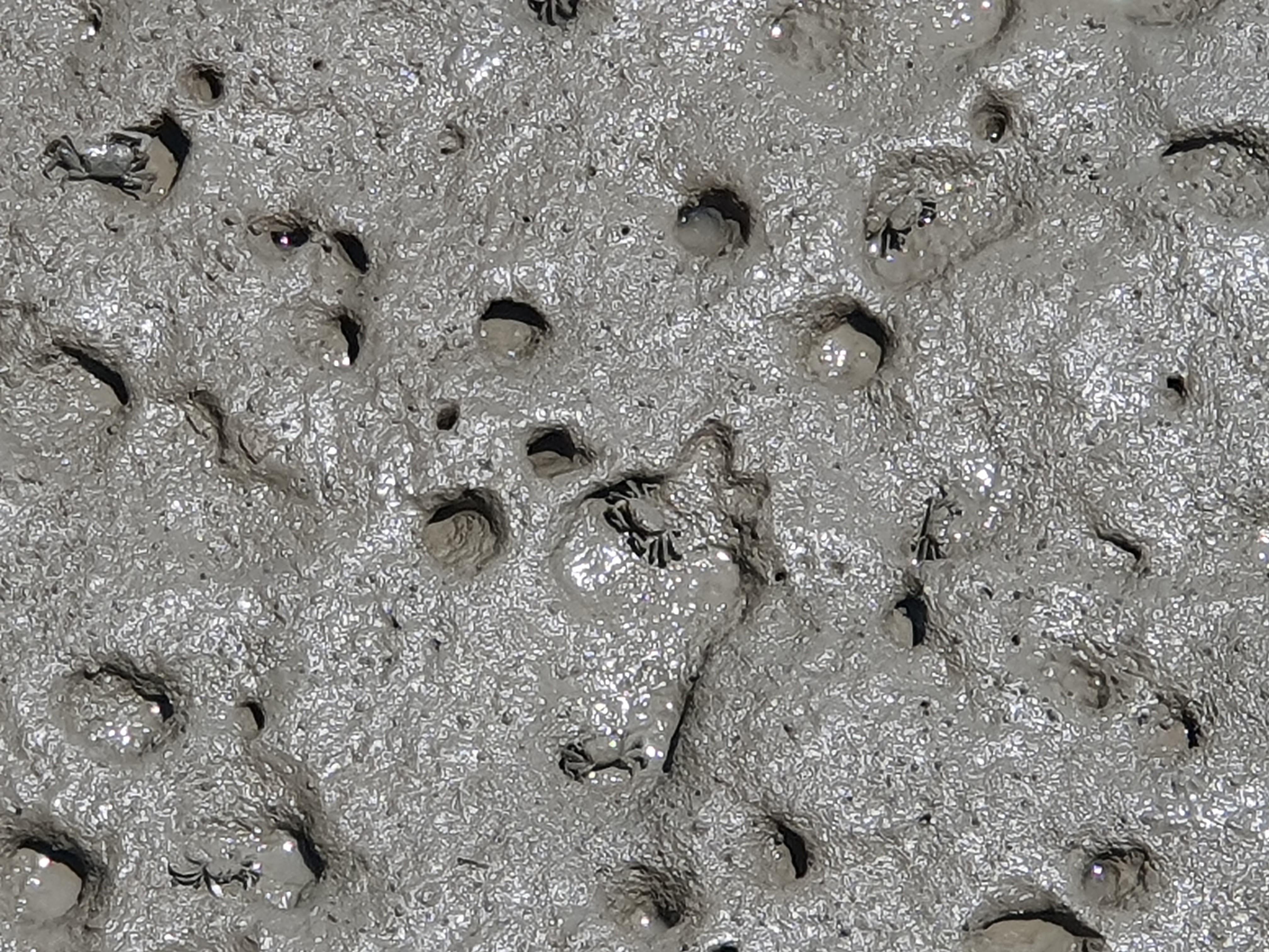 도착하자마자 물 들오기 전 갯벌에 위장한 게 한컷!