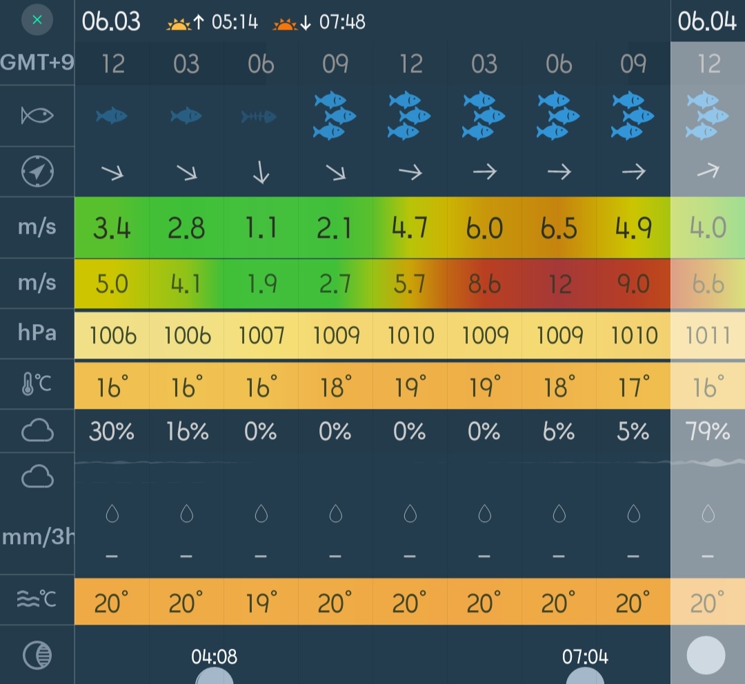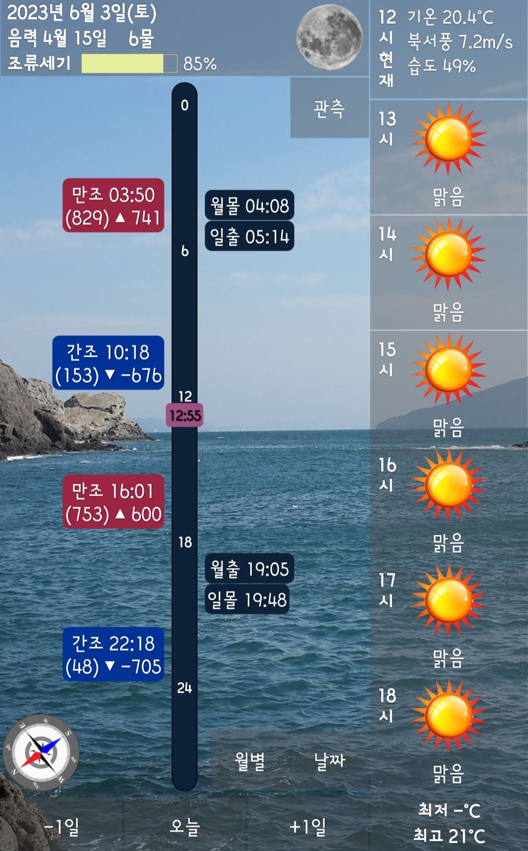 □ 바다상황 : 4~6단 바람, 파도 다소 있음