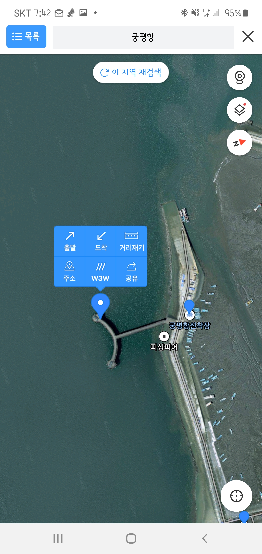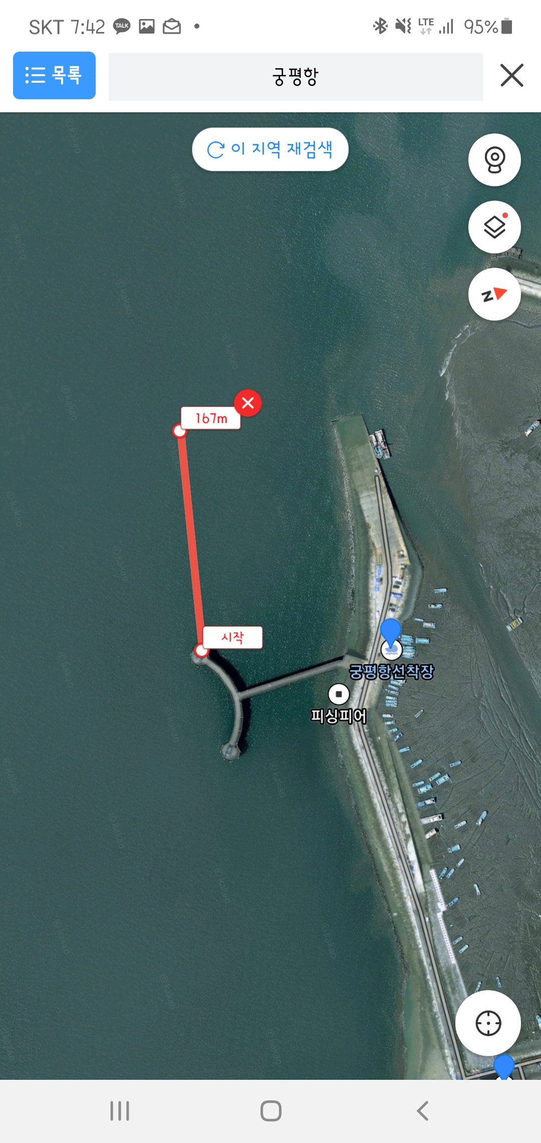모바일에서는 거리재기가 지원되지 않는 걸로 알았는데, 카카오맵에서는 직선거리 재기가 가능하다는 걸 이제야 알았네요.