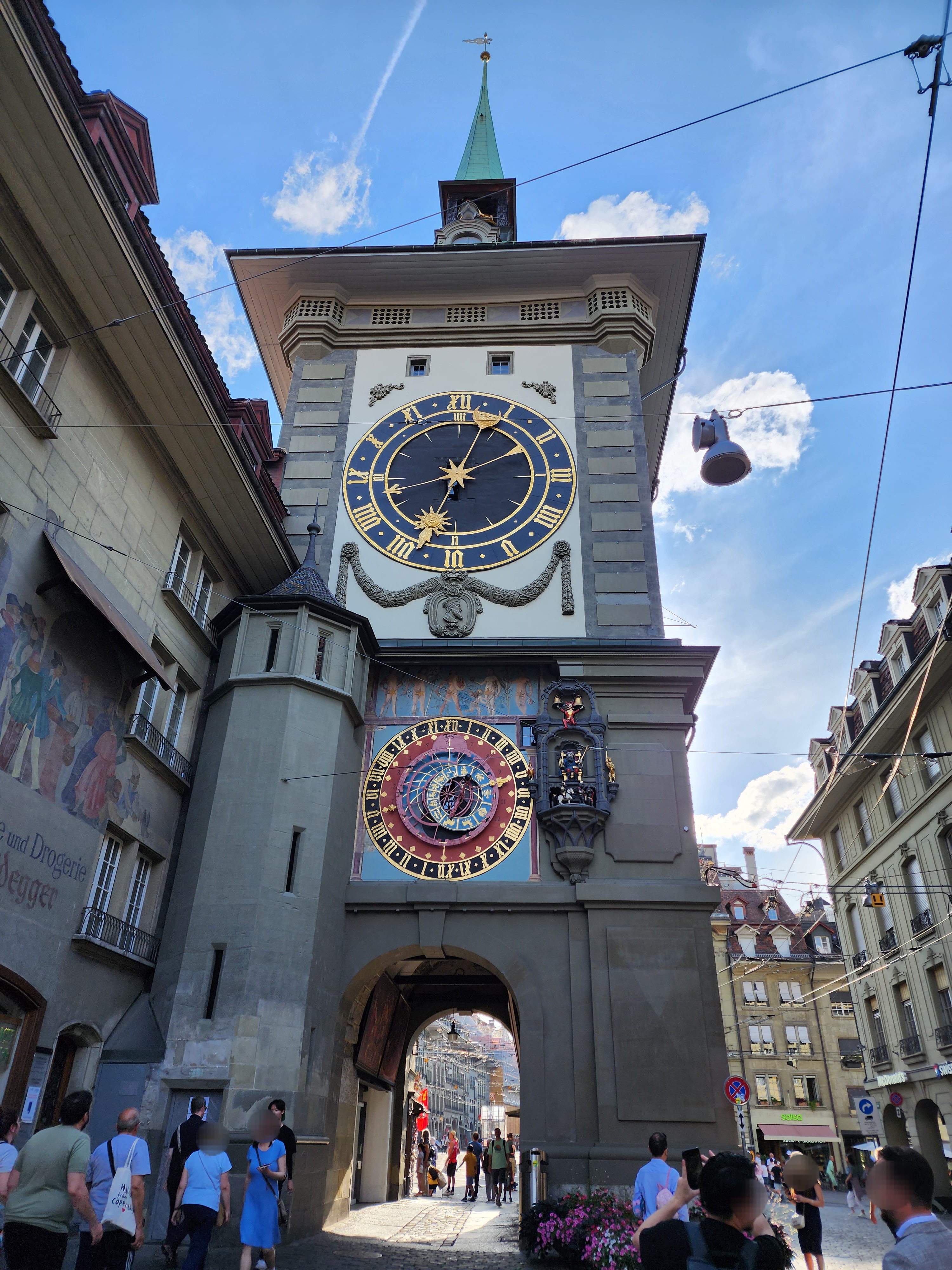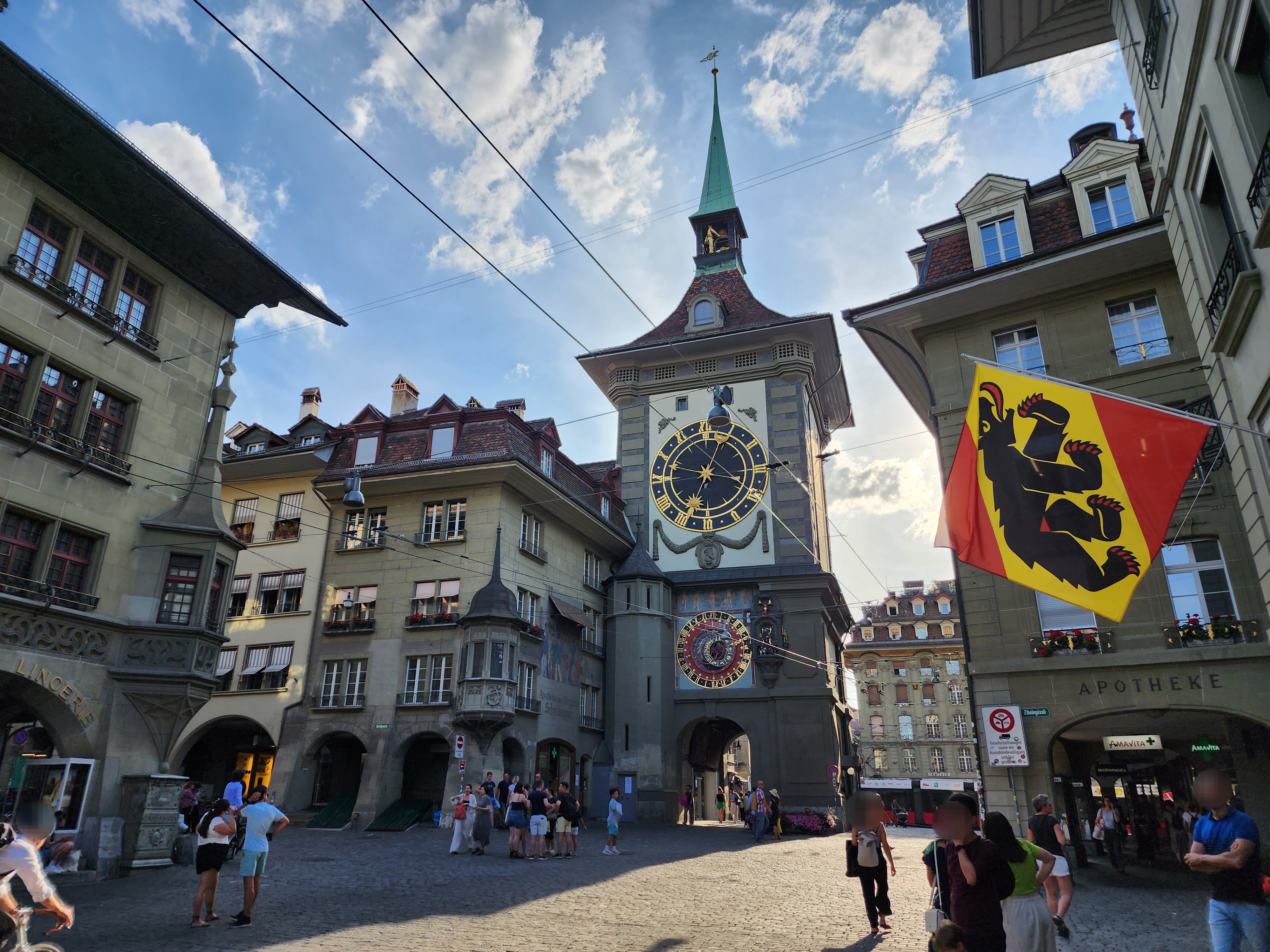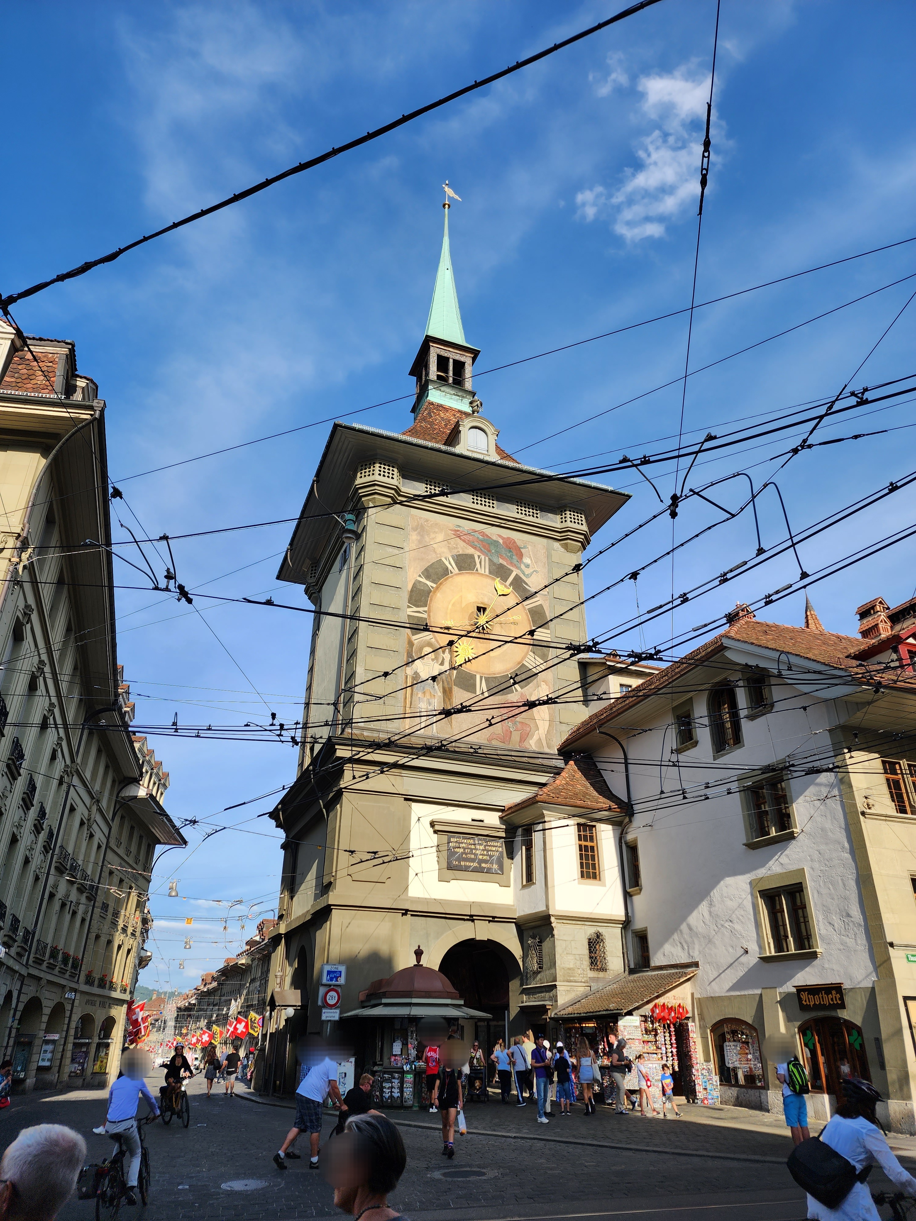 베른 구시가지의 랜드마크인 13세기에 지어진 치트글로게 시계탑을 만났습니다.