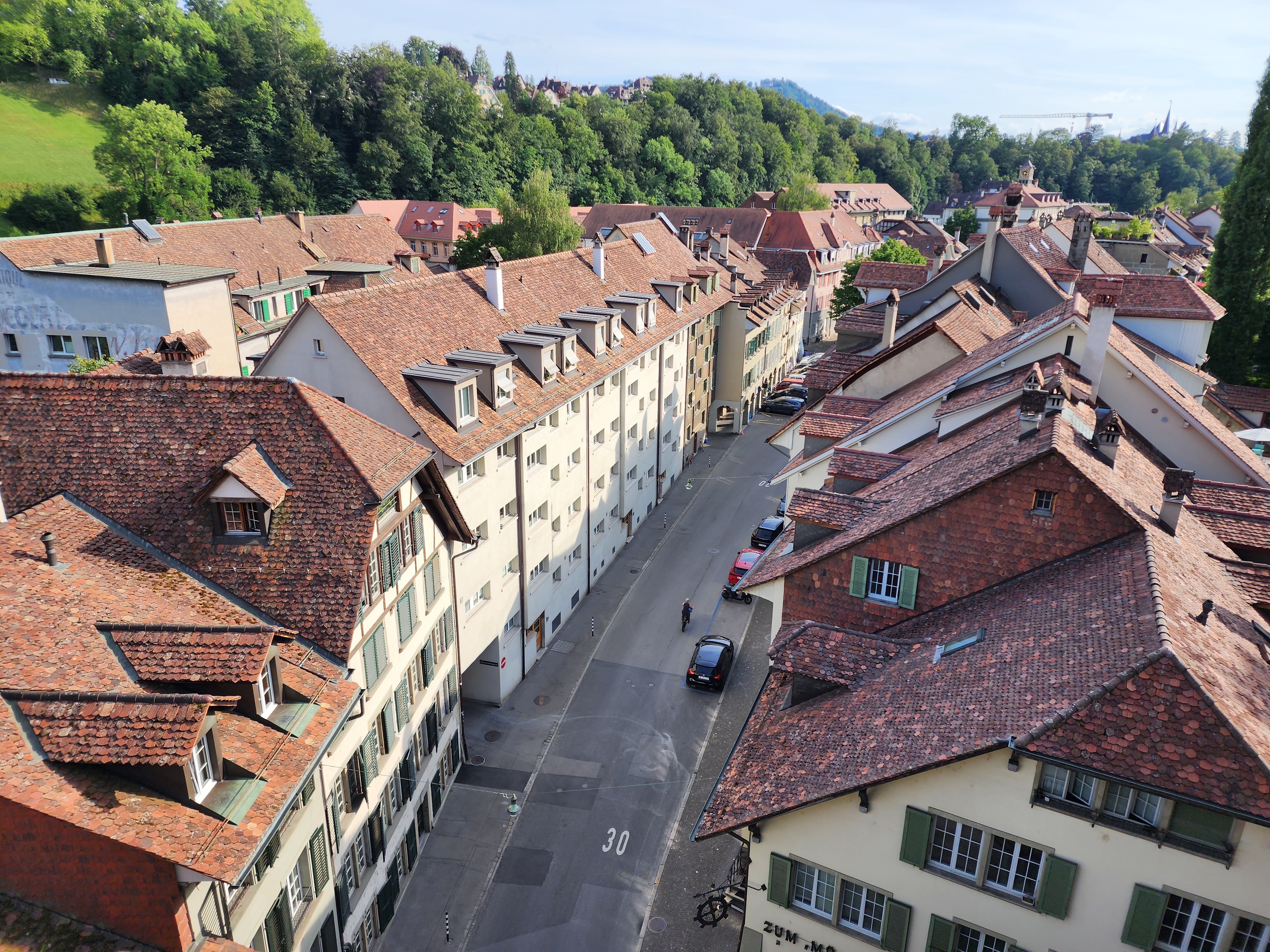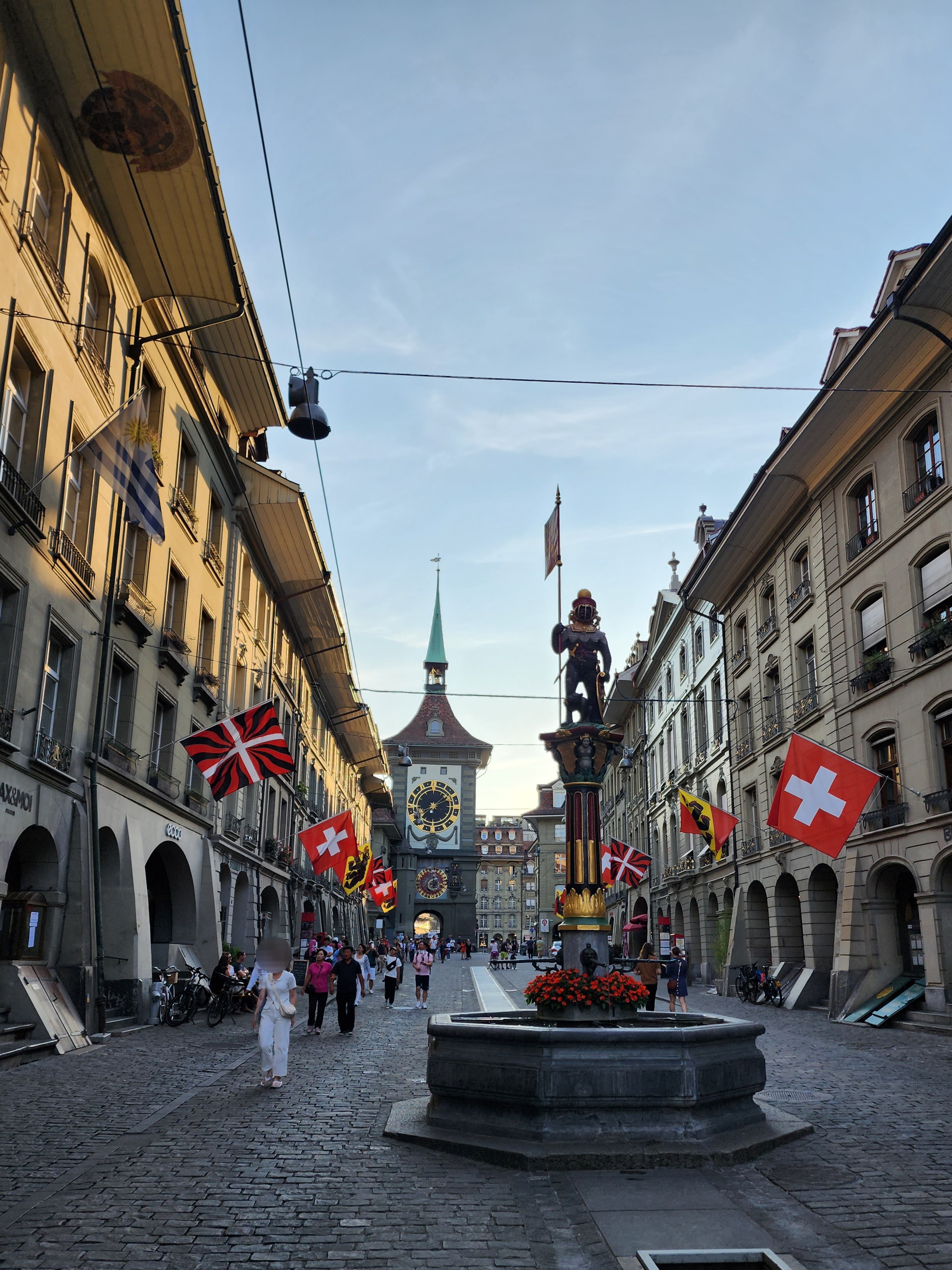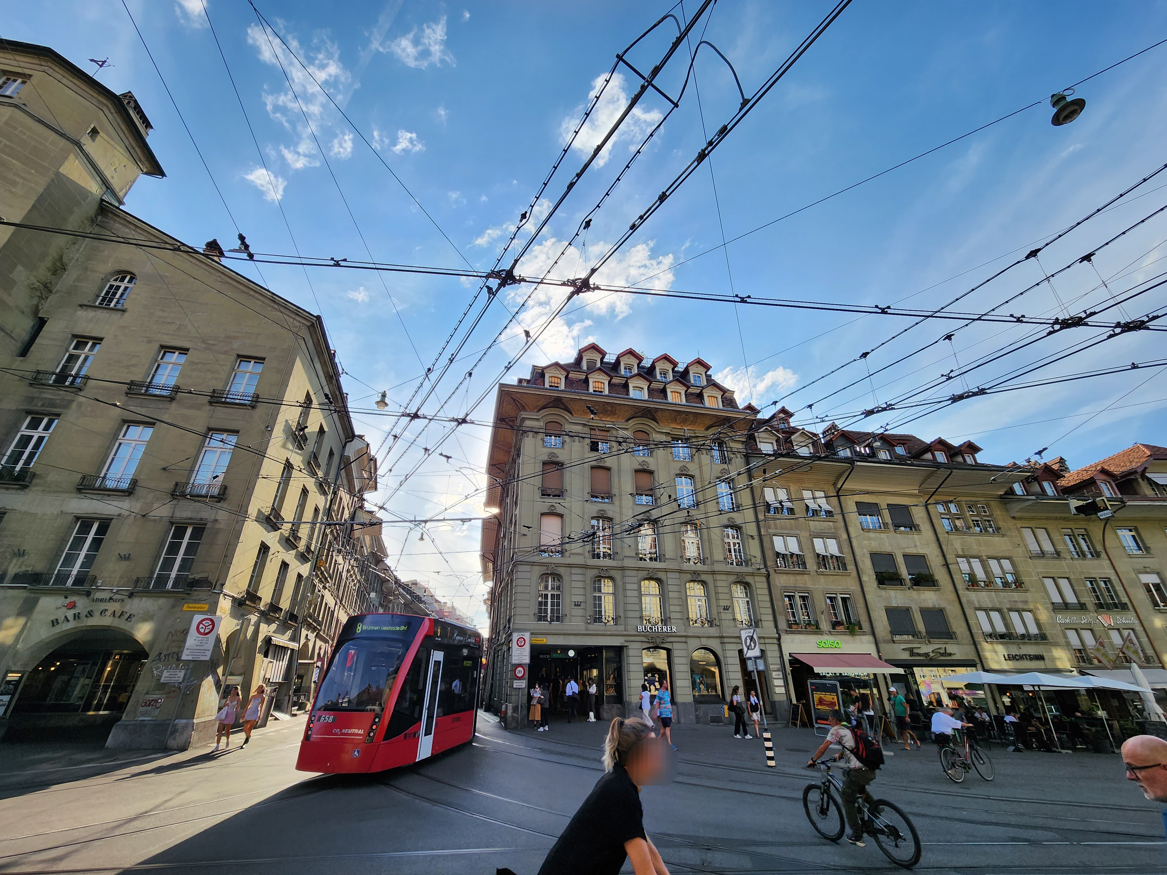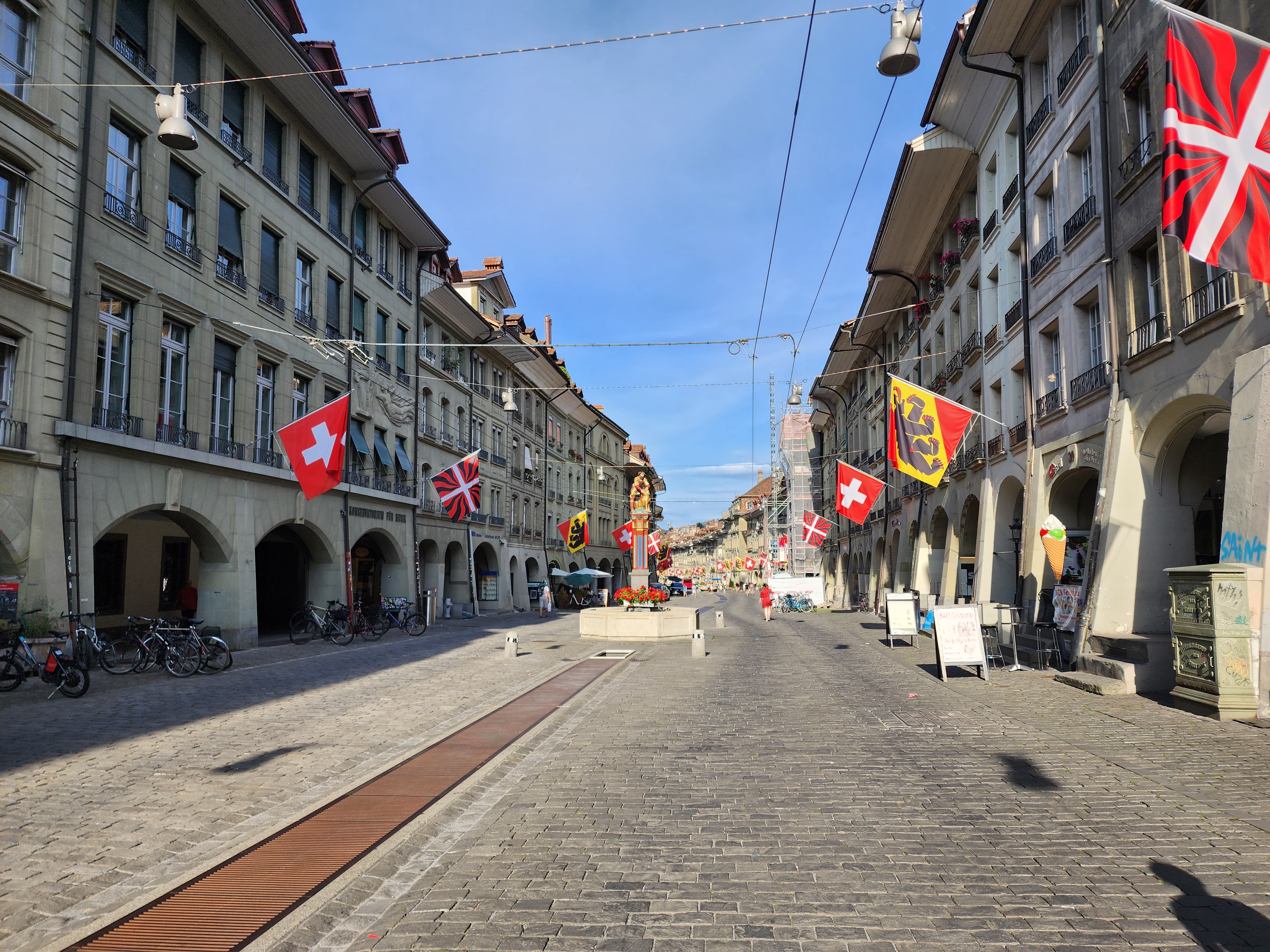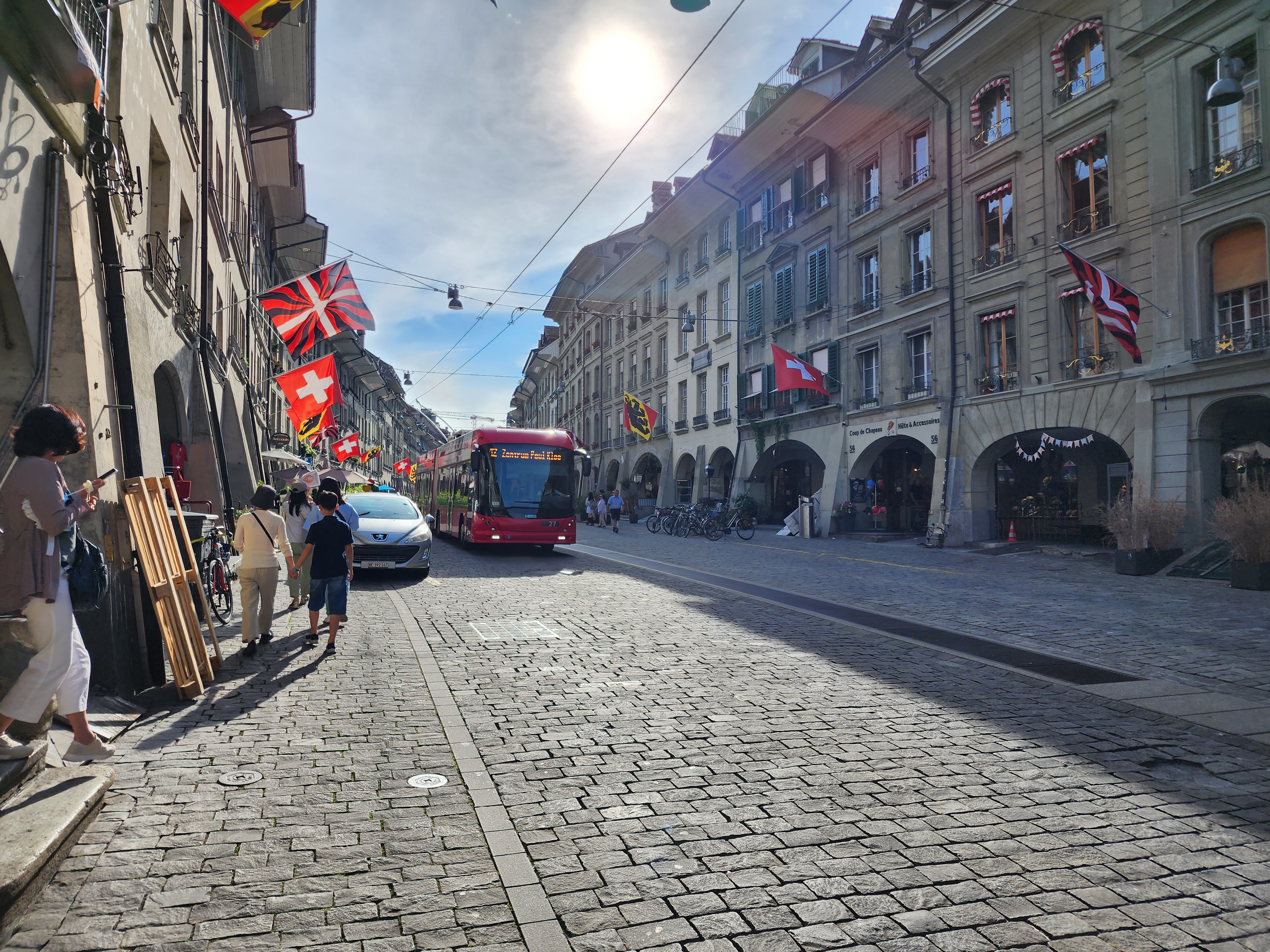 유네스코 세계문화유산으로 등재된 구시가지는 스위스 깃발을 비롯해 다양한 문양의 깃발이 걸려 있고, 전기버스와 트램이 다니더군요.