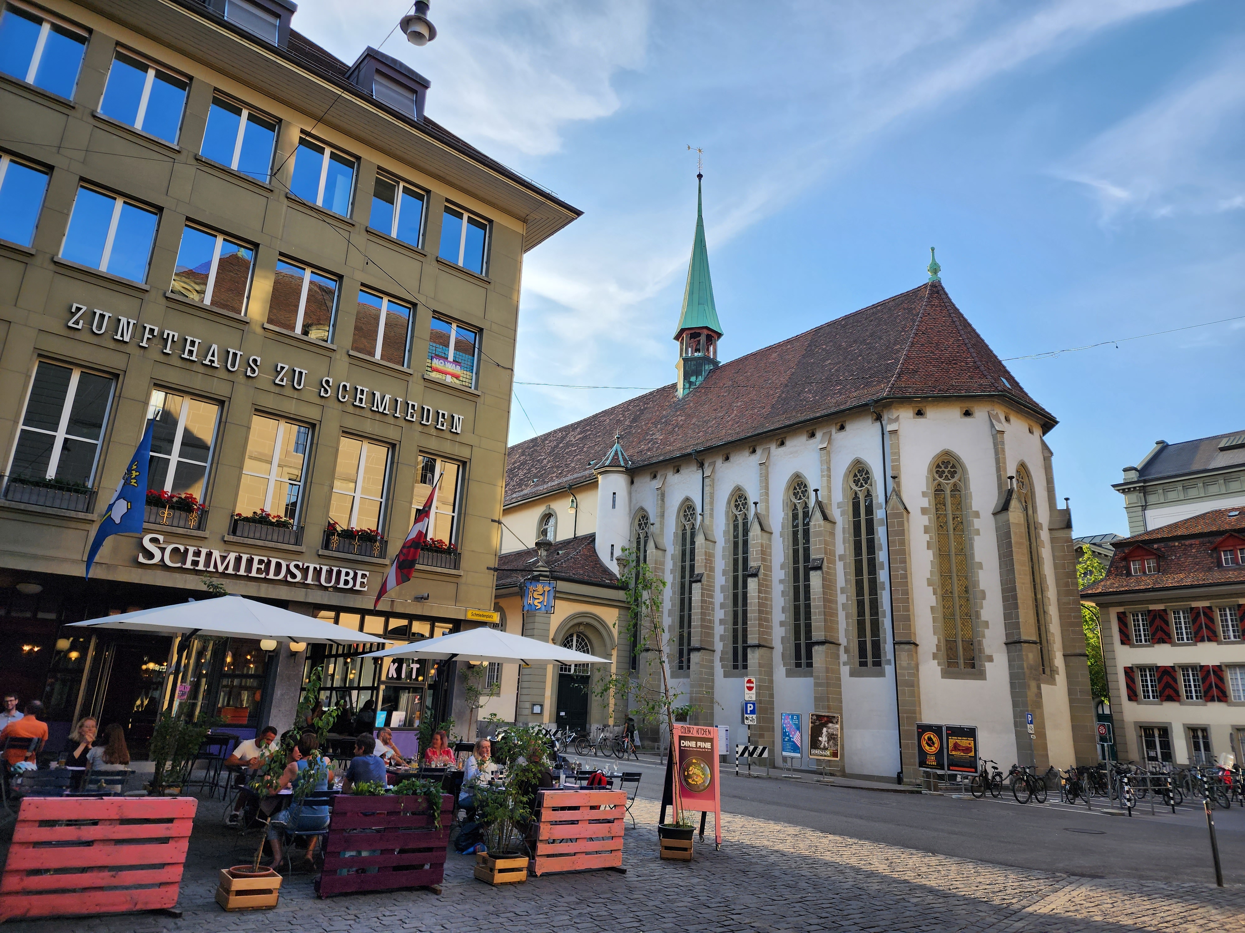 전기버스나 트램도 붉은색인데 스위스 국기와 다양한 깃발도 강렬한 붉은색으로 건물들의 색과 대조되어 더욱 눈에 잘 들어오더군요.