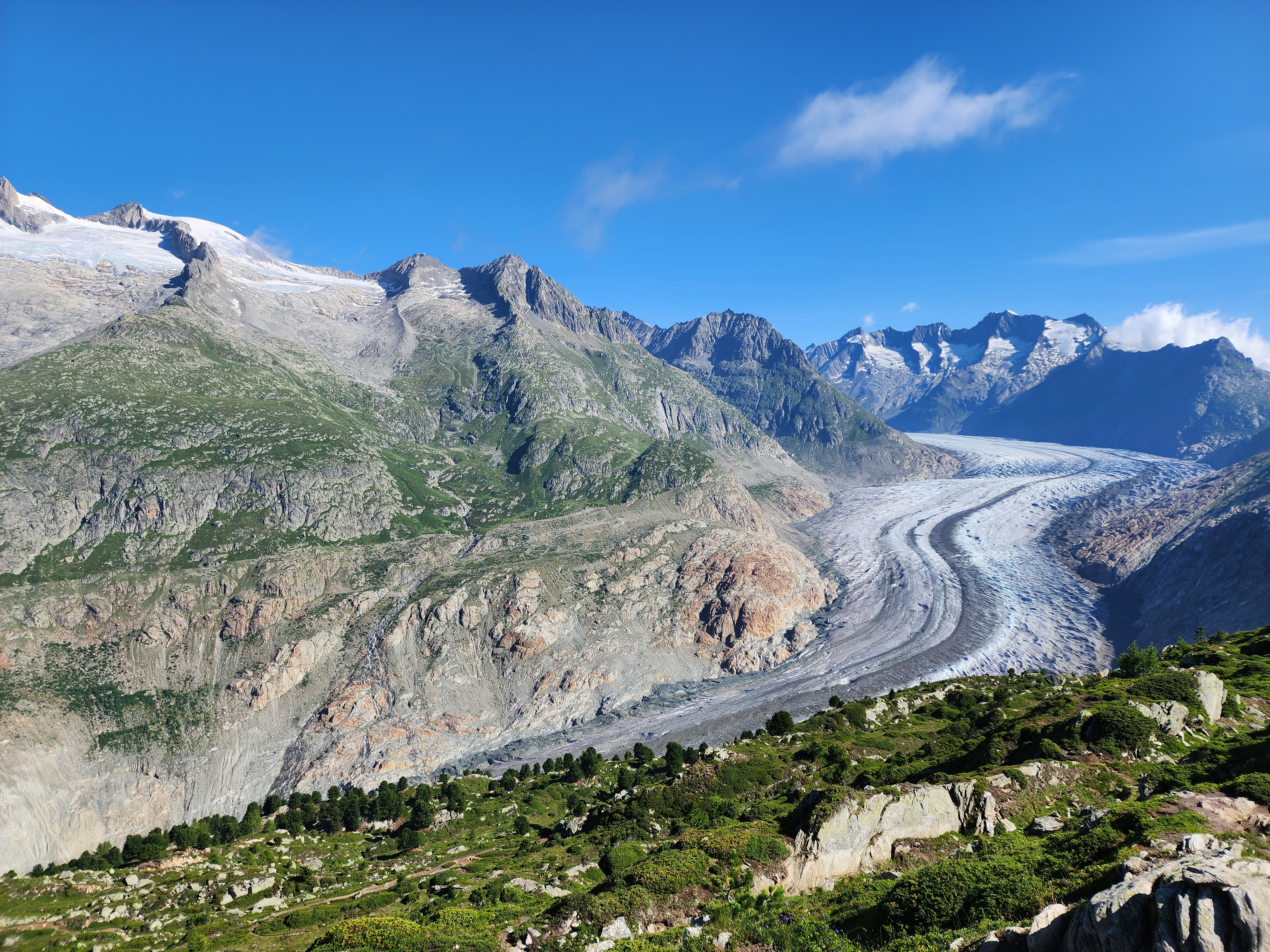 알레치빙하는 유네스코 세계자연유산으로 등재되어 있다고 하네요. 총 23km의 길이라고 하는데, 전망대에서는 일부만 보이는 듯 합니다.