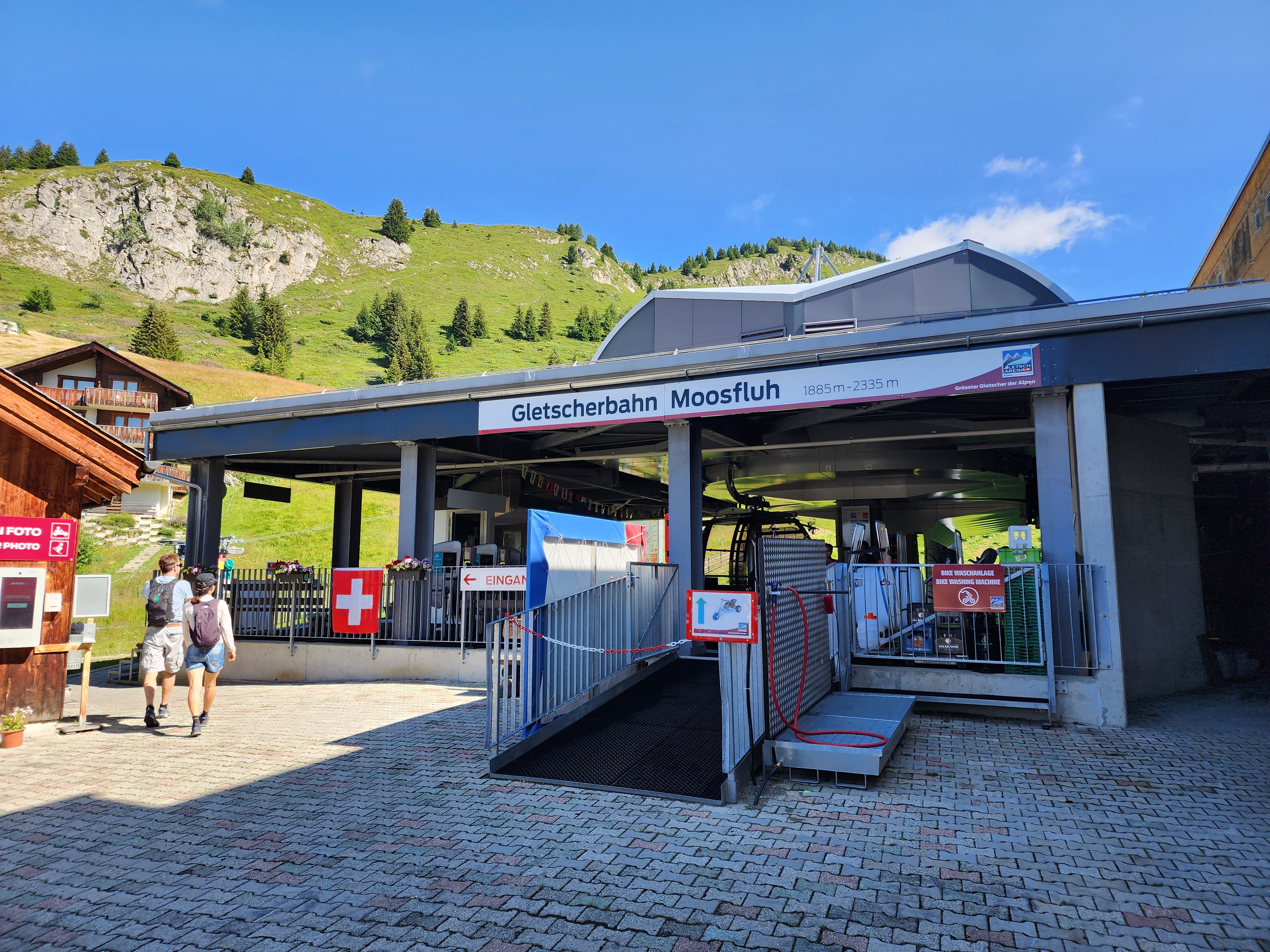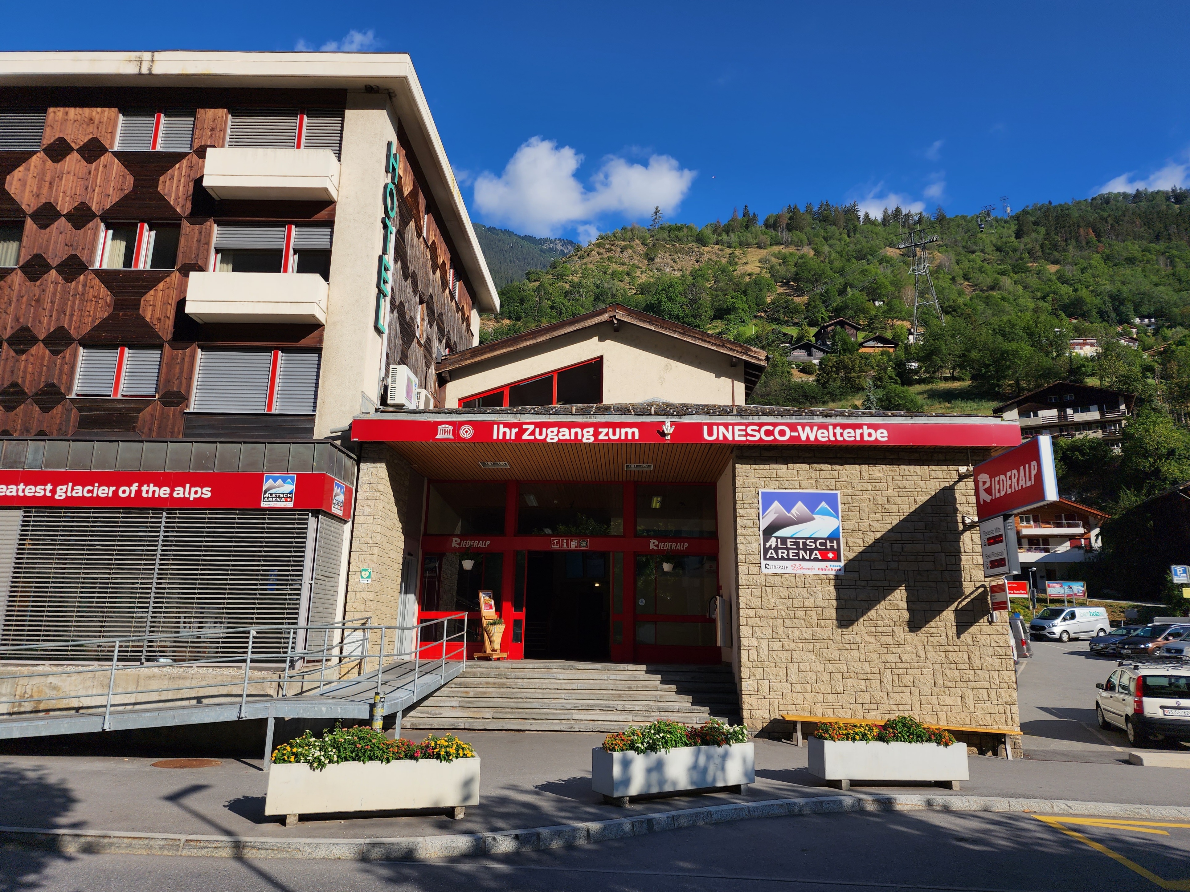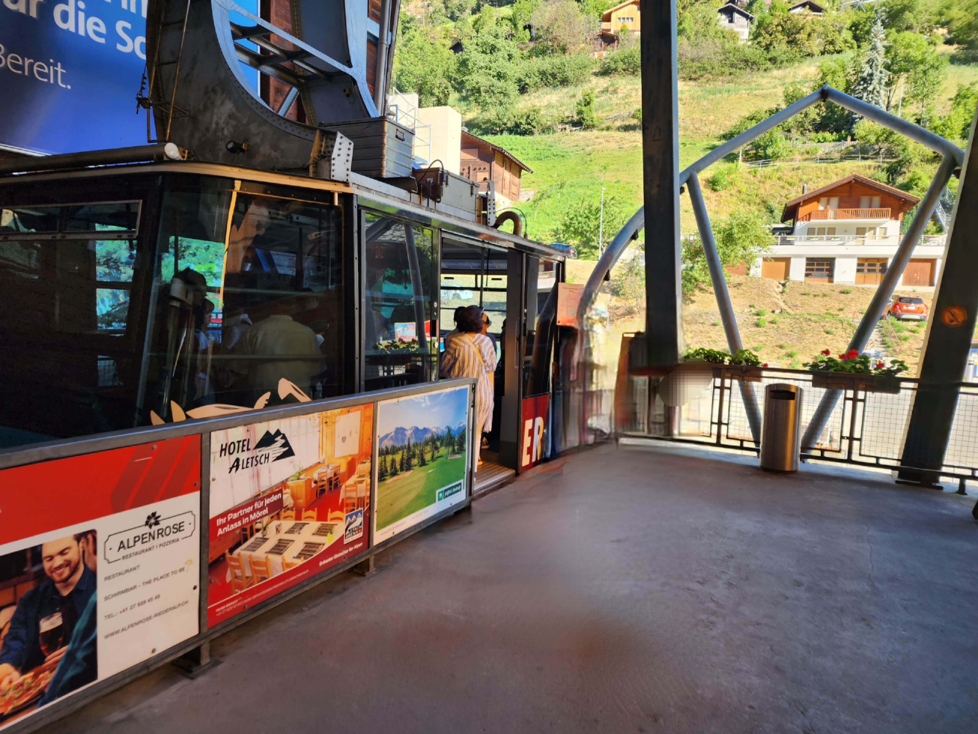 알레치 빙하를 조망할 수 있는 무스플루 전망대로 가는 케이블카 승강장이네요.