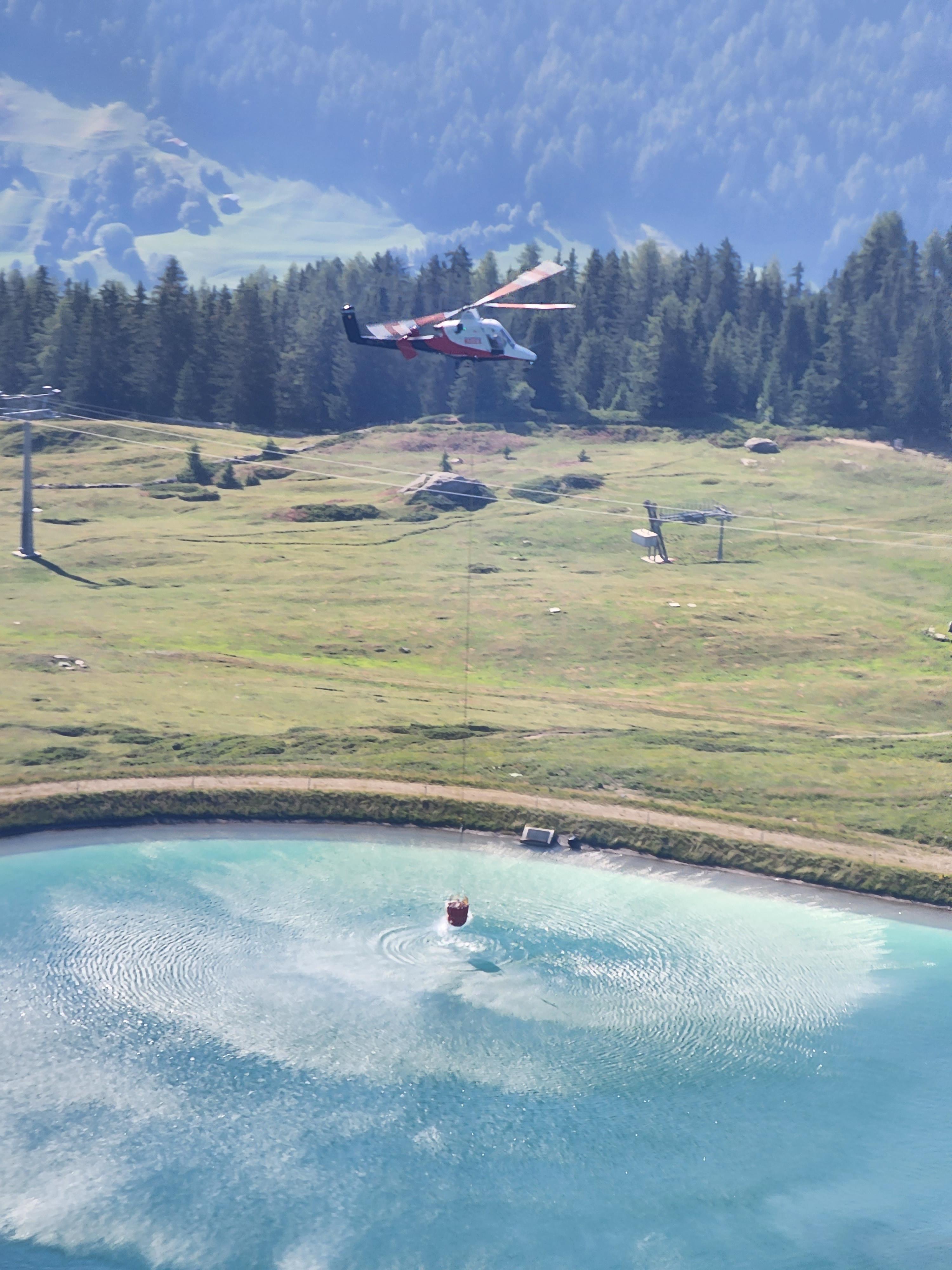 산불진화 헬기가 근처 인공호수에서 물을 채우고 있더군요. 산이 많은 지역이다 보니 저렇게 높은 지대에 인공호수를 만들어 둔 듯 합니다.