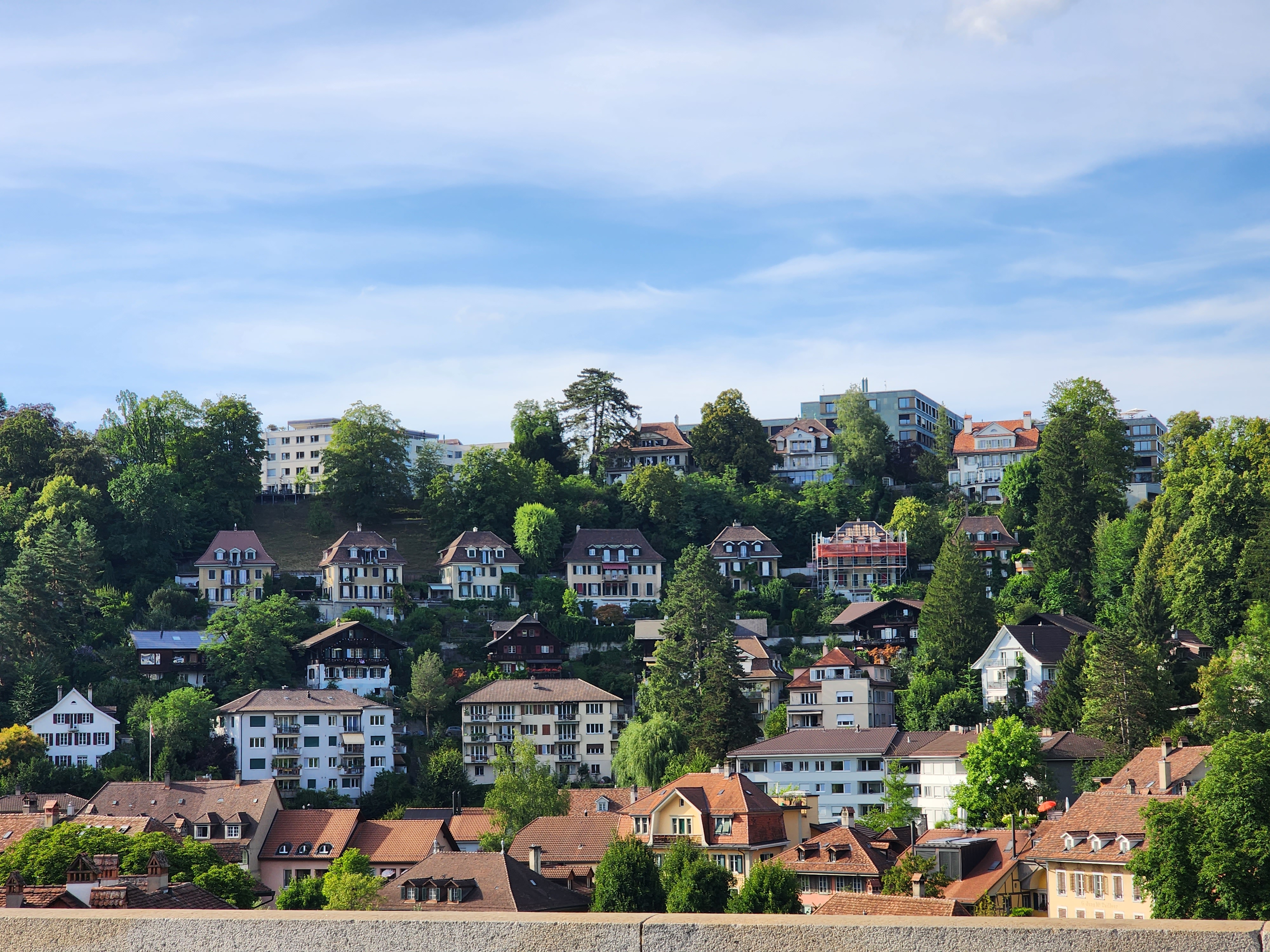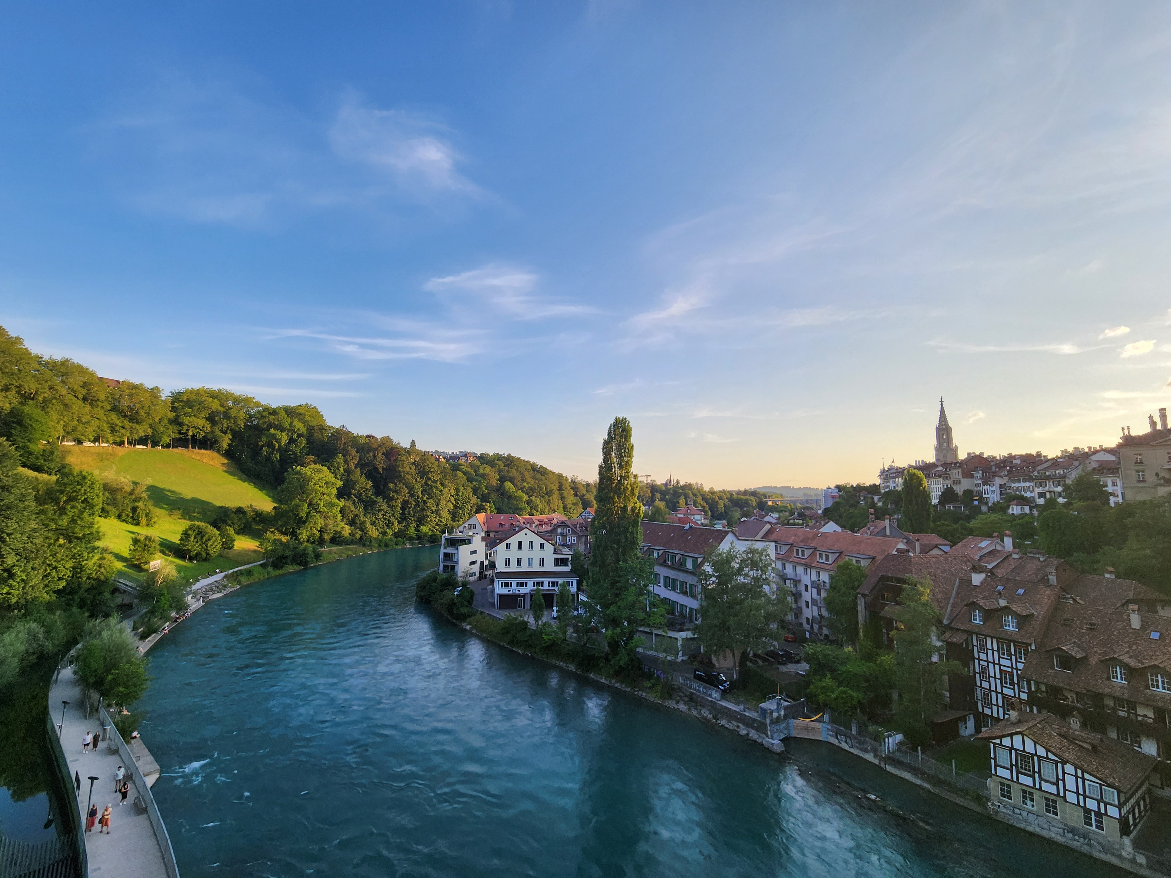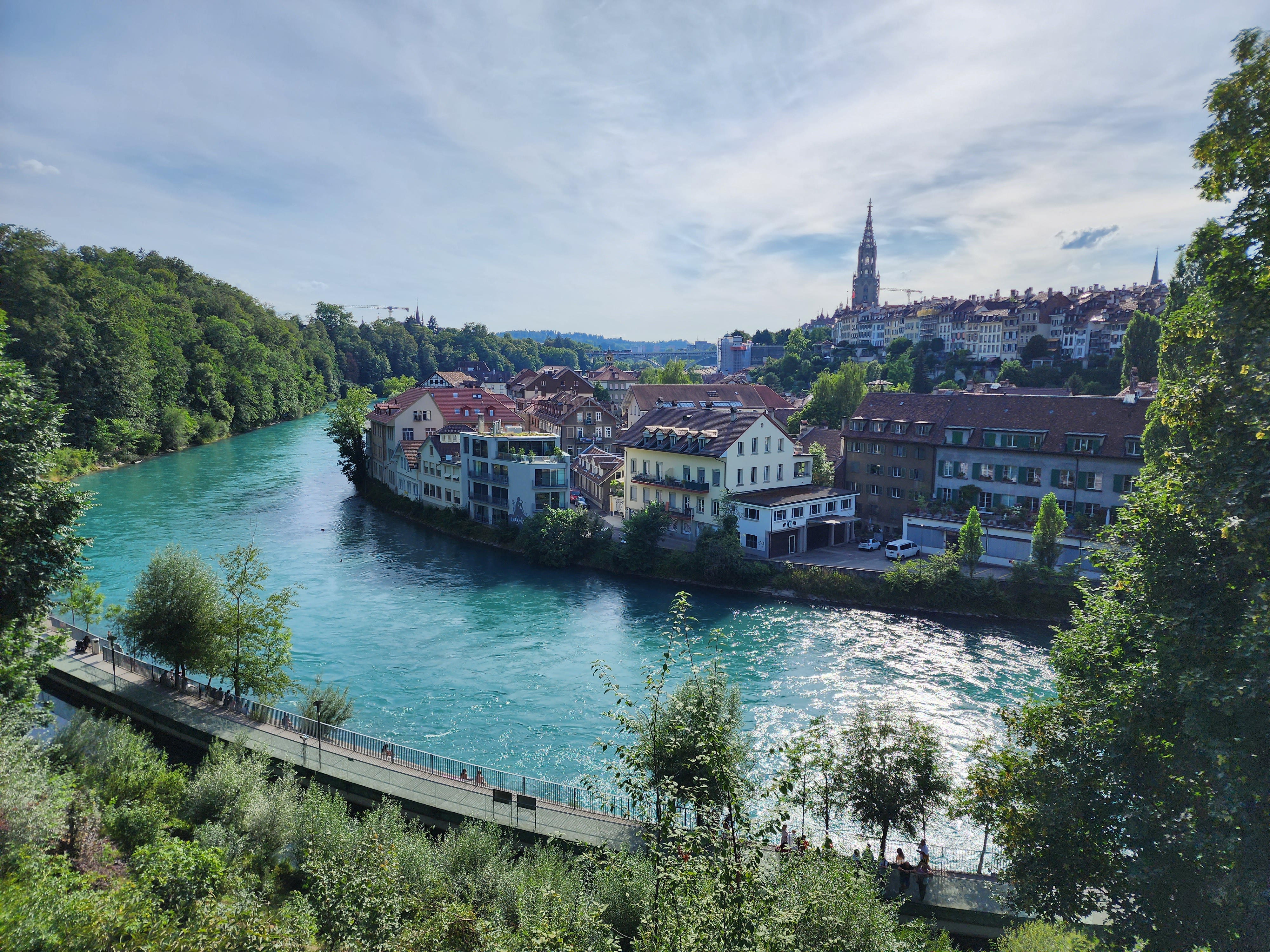 베른을 가로지르는 아레강 뒤로 베른 구시가지가 아름답네요.