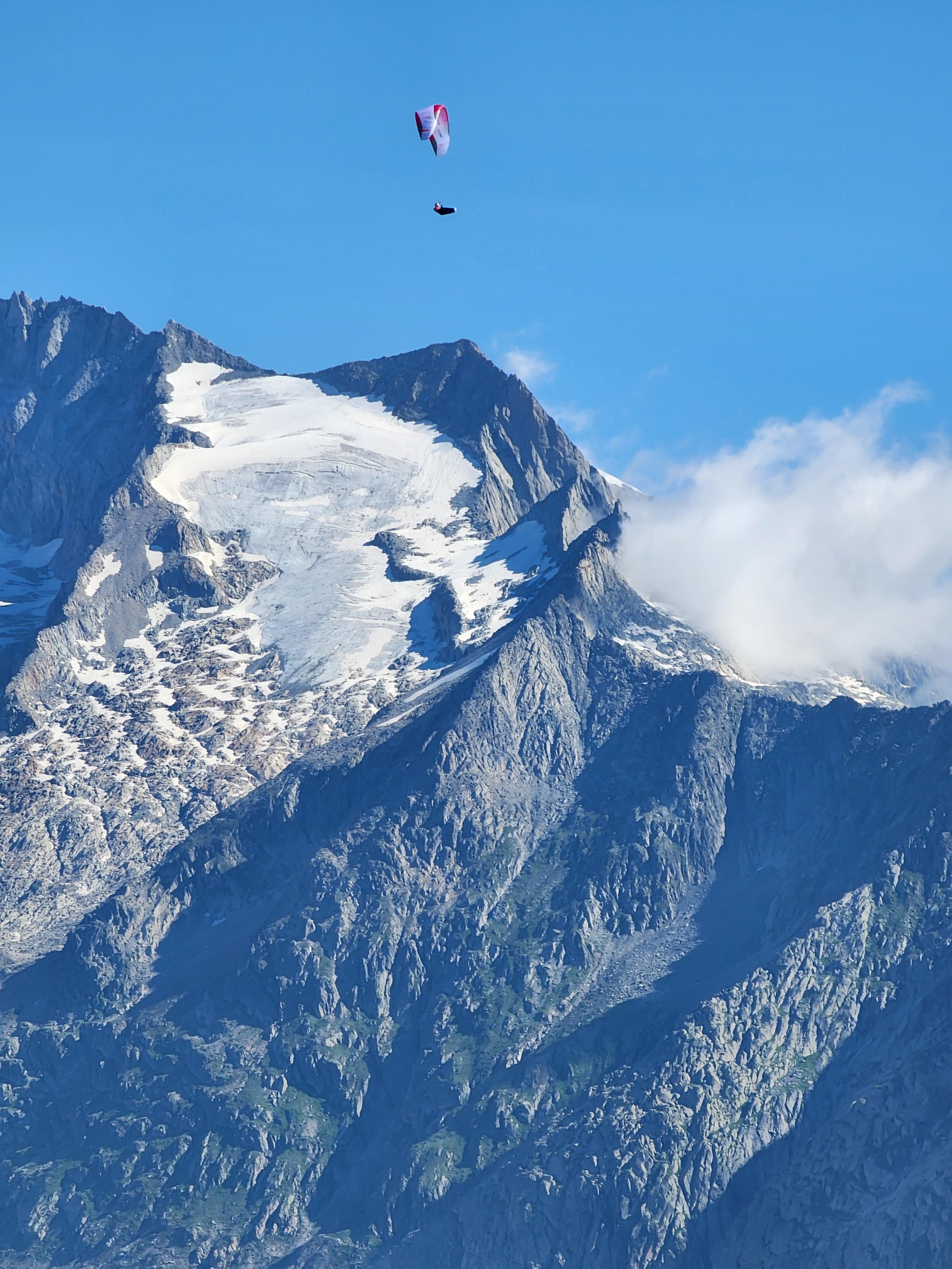 하이킹으로 더 높은 봉우리로 가시던 분들도 있었는데, 어디선가 행글라이더를 즐기는 분들도 포착되었네요. 이런 아름다운 알프스 산맥에서의 행글라이딩이라니...무지 부럽네요 .
