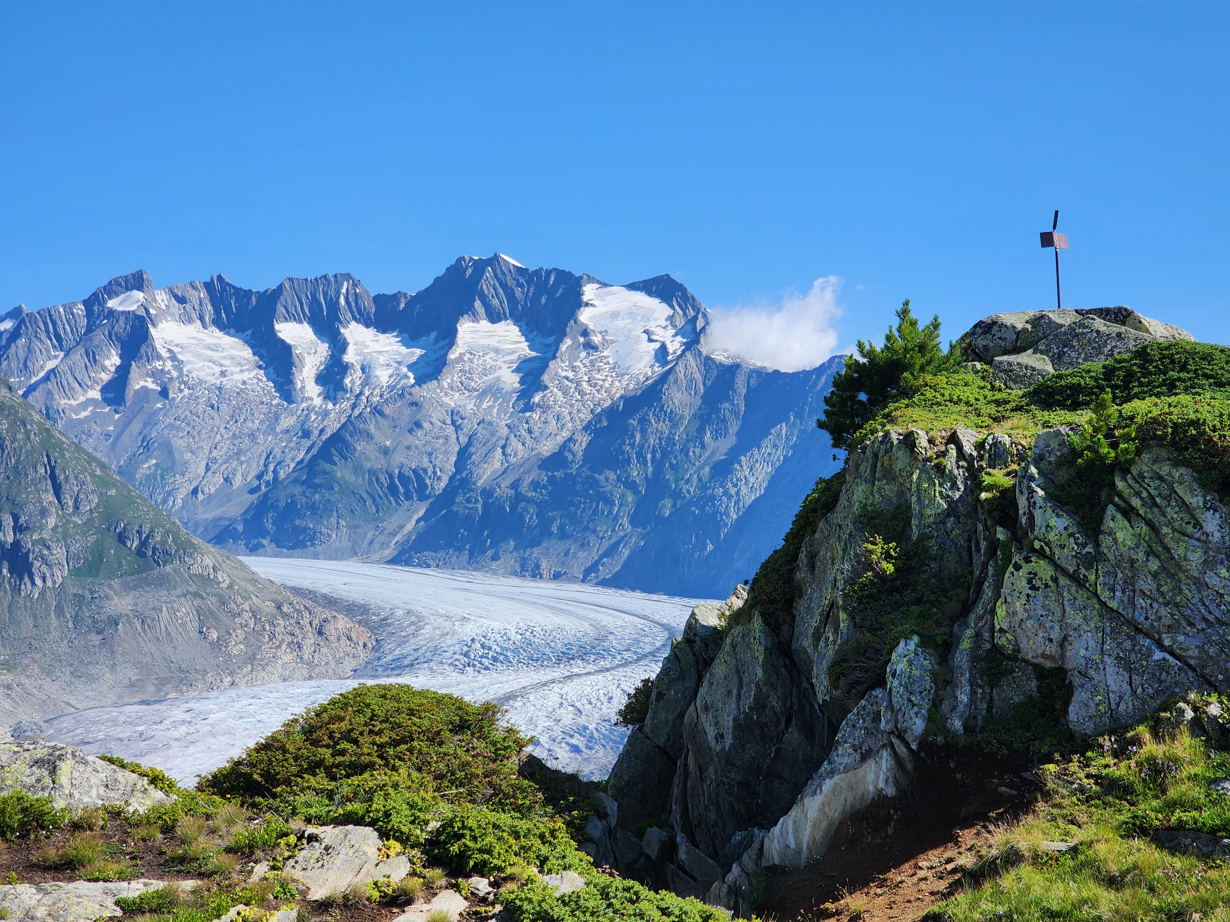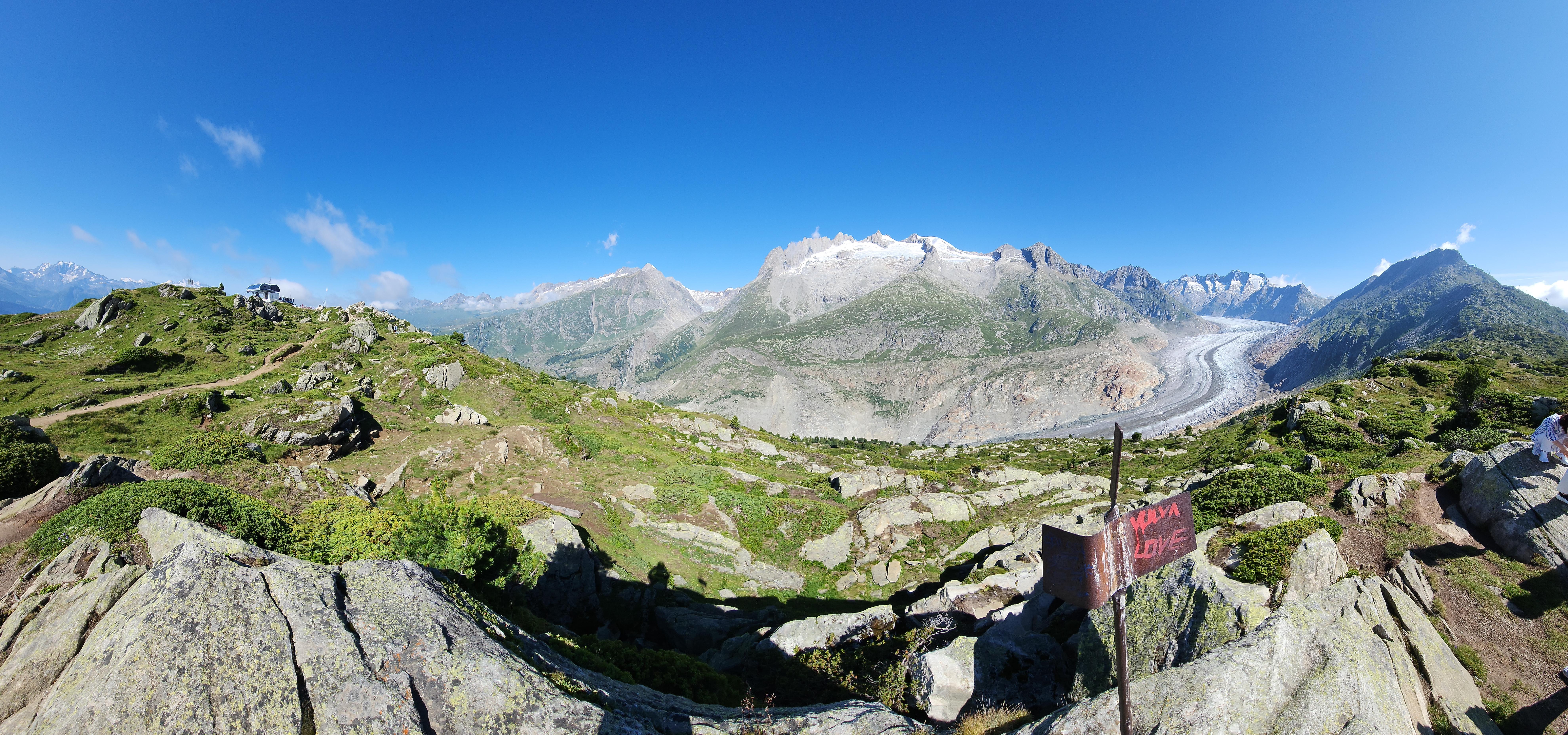 무스플루전망대에서는 알레치 빙하뿐만 아니라 360도 돌아보면 곳곳에 만년설로 뒤덮인 고산들을 조망할 수 있더군요.