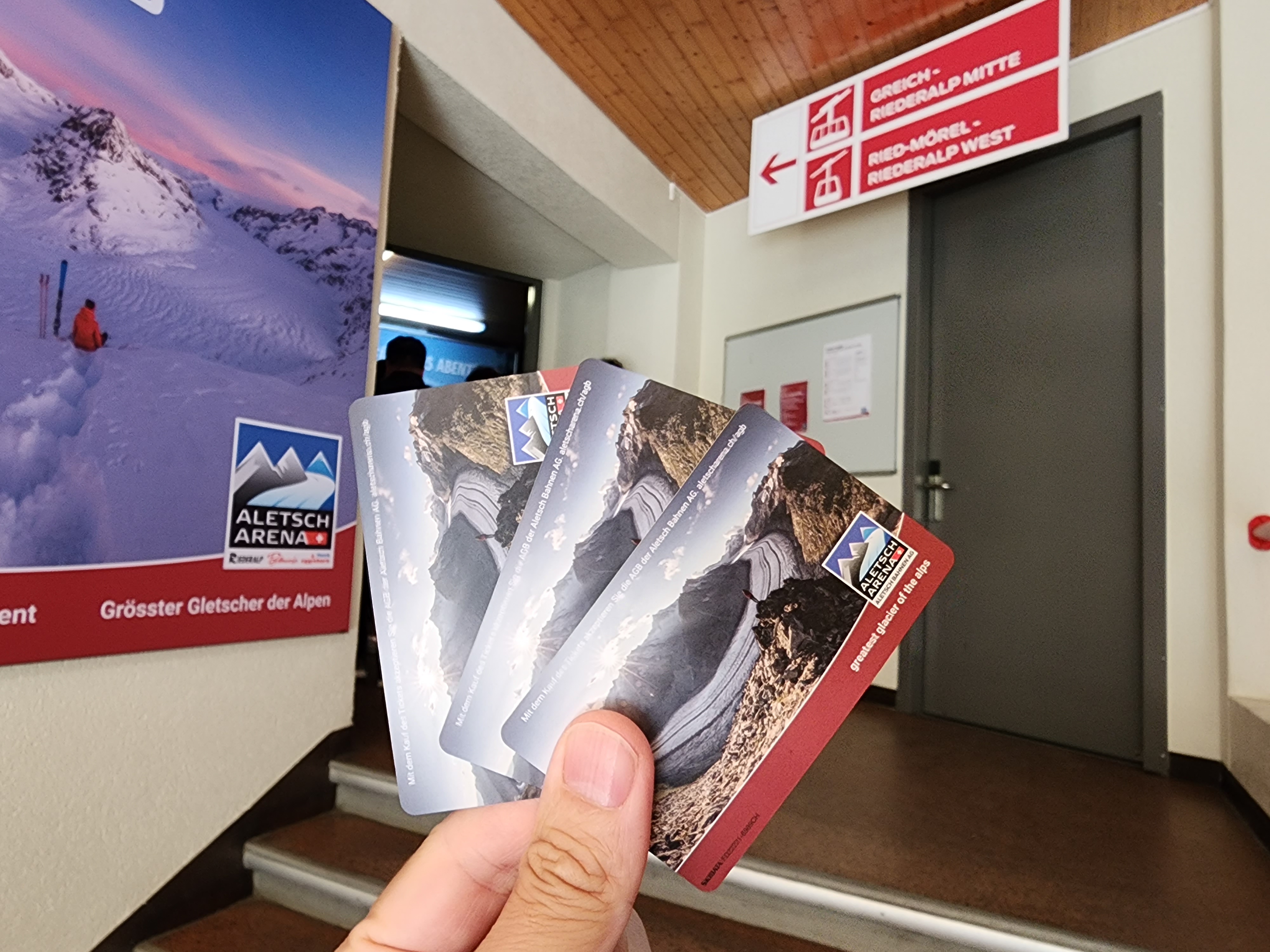 알레치 빙하를 보기위해 케이블카를 타고 올라가야하는데, 그 시작은 알레치 아레나입니다.