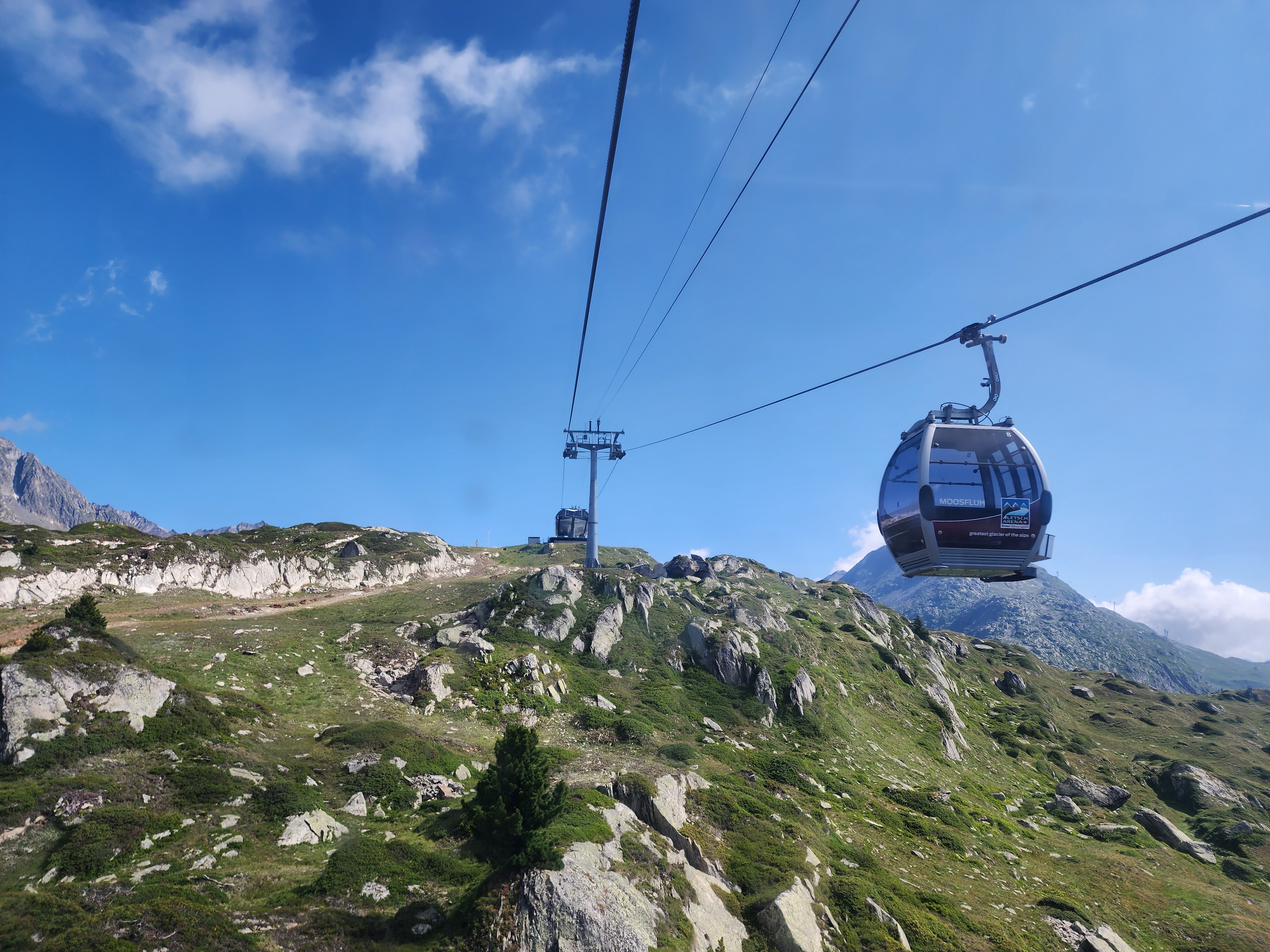 무스플루전망대에서의 알레치 빙하를 뒤로 하고, 다음 여정지로 가기위해 케이블카를 타고 내려옵니다.