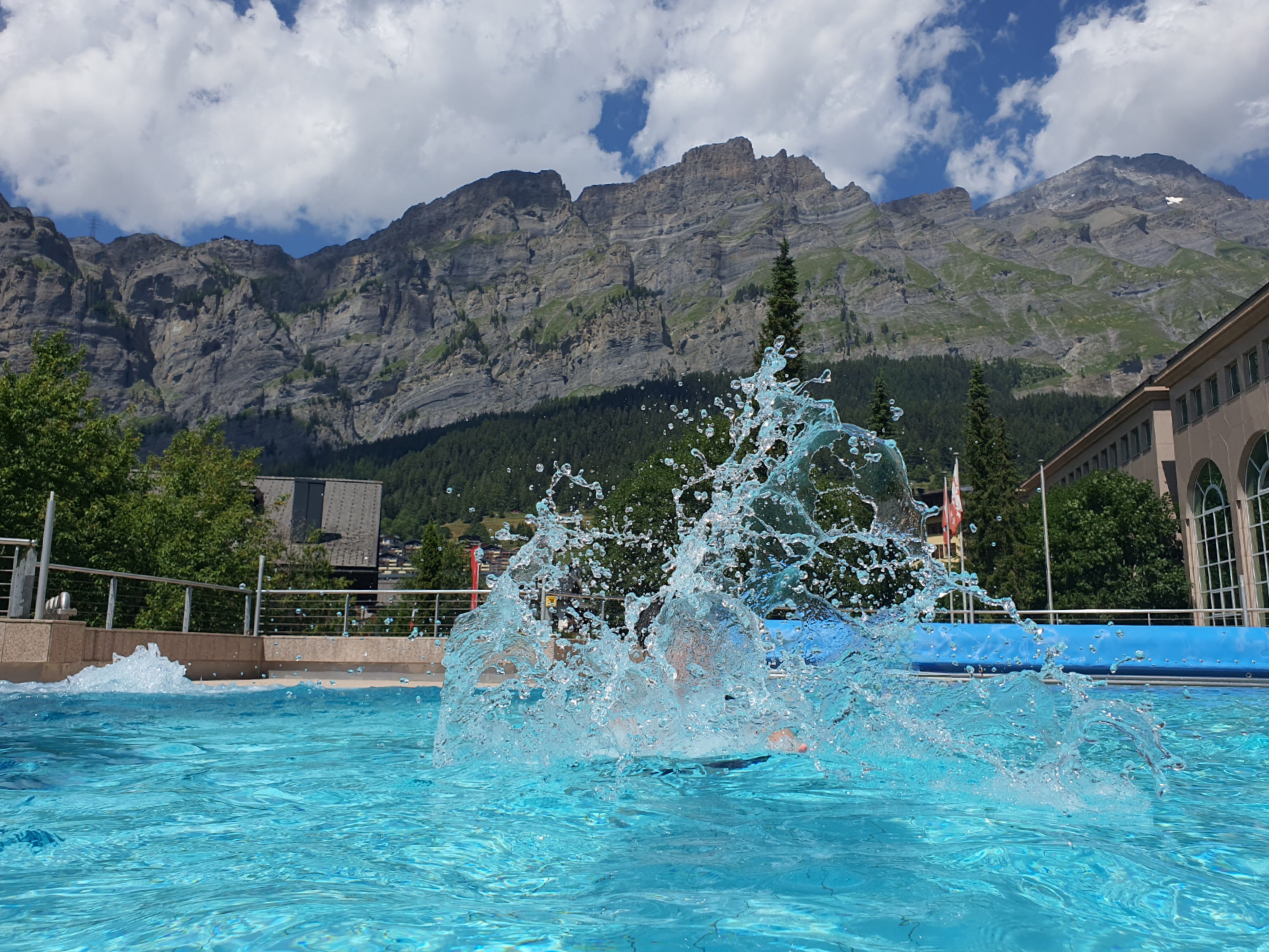 알프스산맥을 병풍삼아 즐기는 야외천연스파네요. 아이도 신이나서 열심히 헤엄쳐 다닙니다.