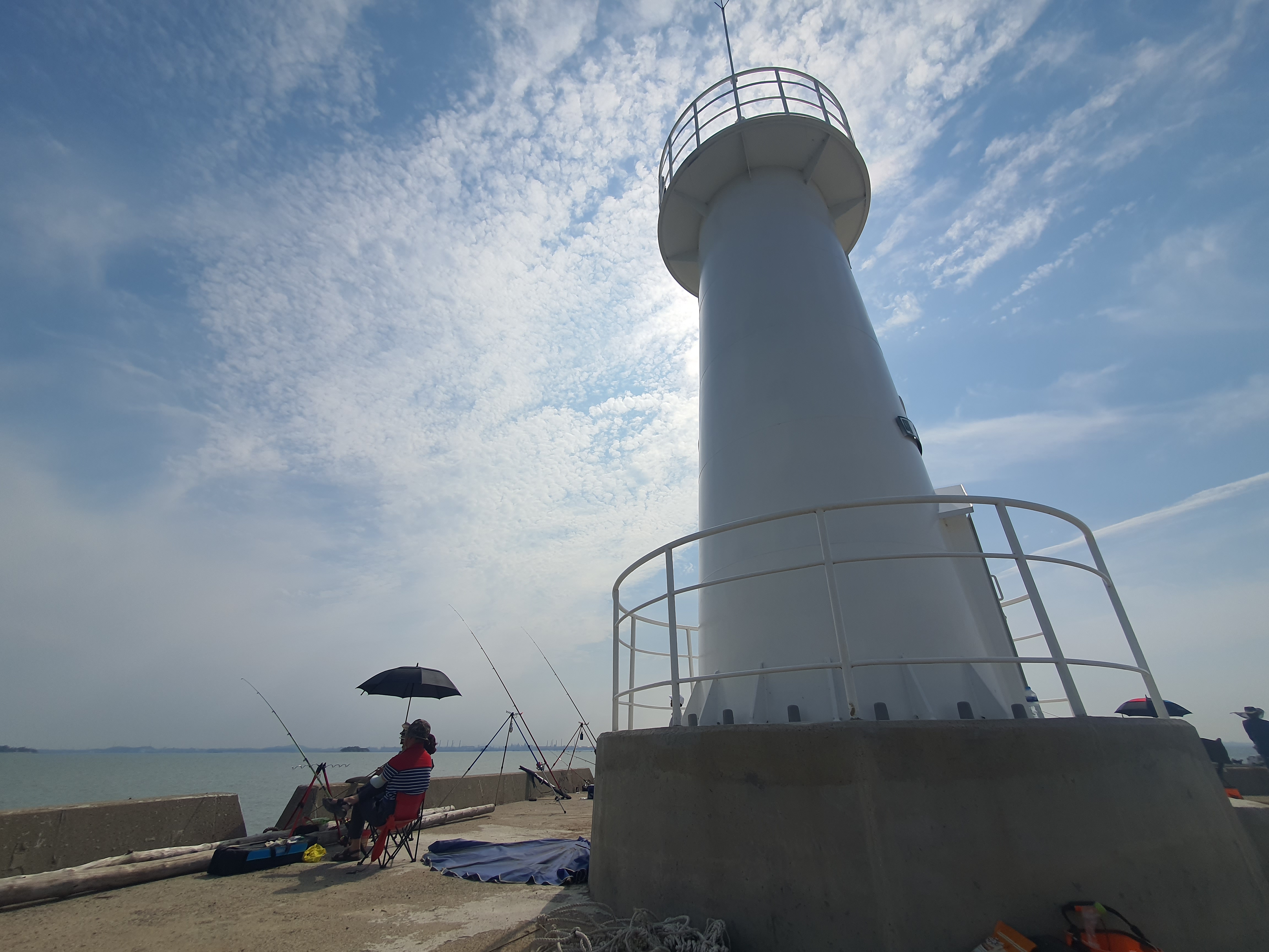강한 햇살을 피하기 위해 파라솔을 가지고 오신 분들도 많았지만, 준비해 오지 않았기에 등대 그늘에서 입질을 기다립니다.