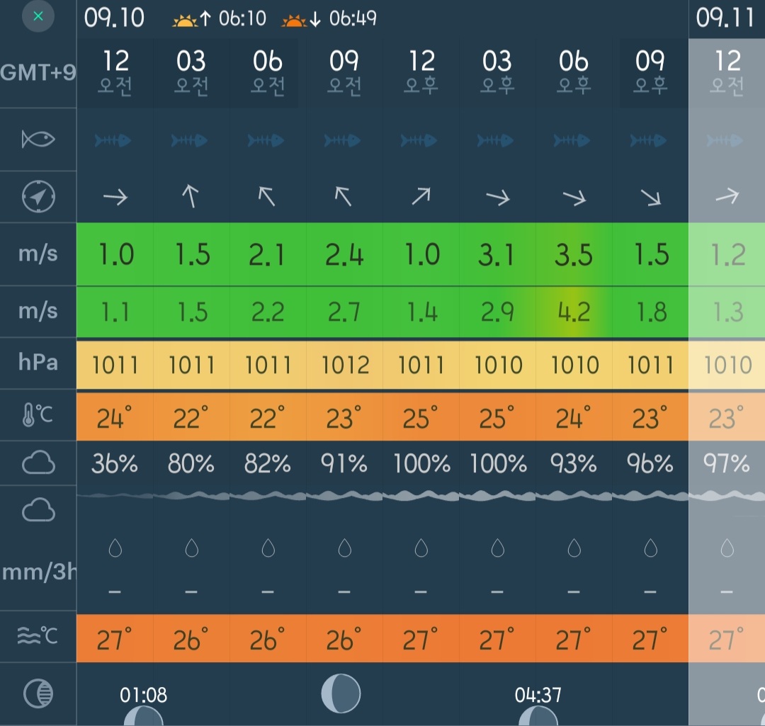 □ 바다상황 : 바람 2단 이하, 파도 없음