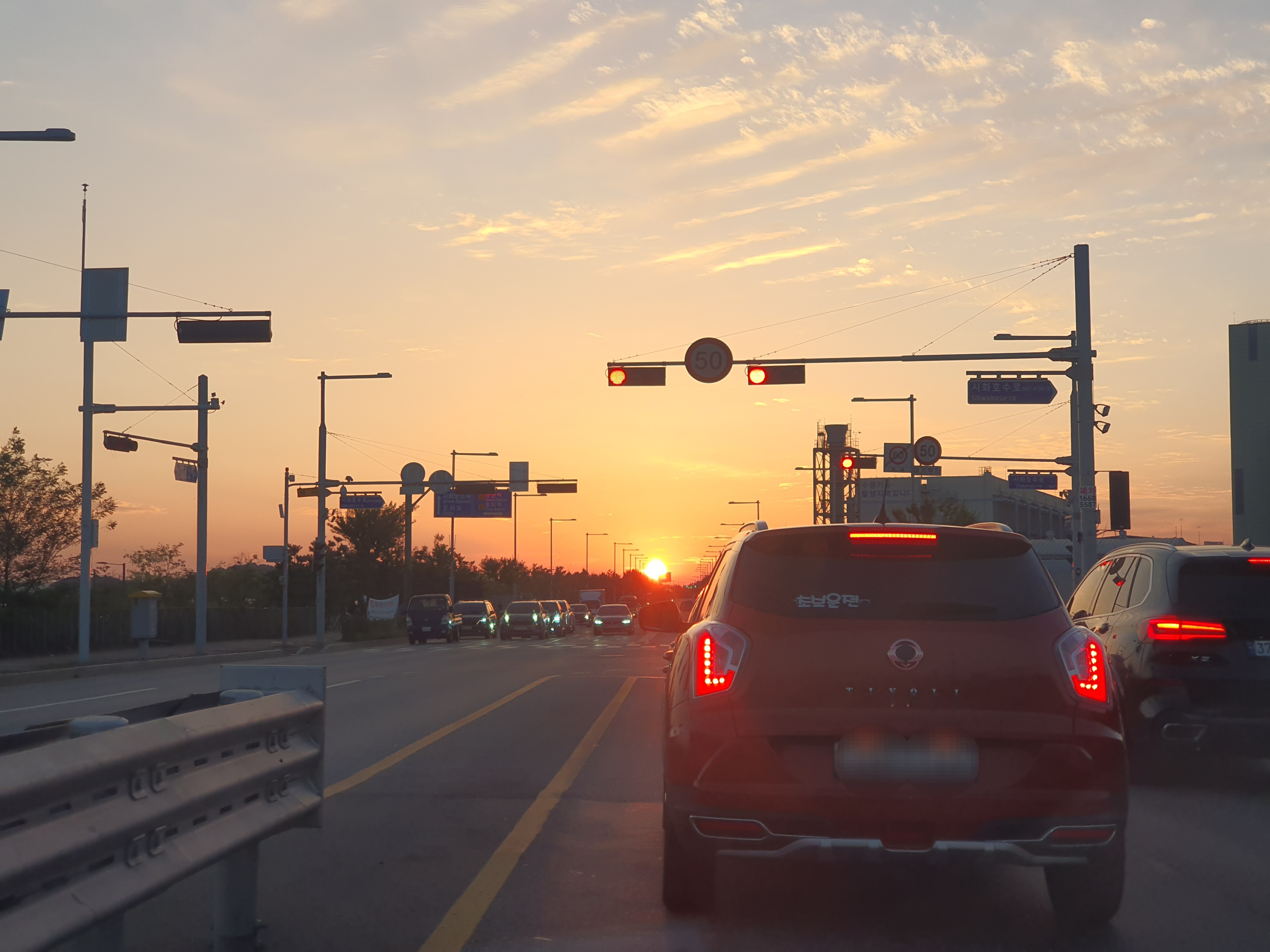 주말이기는 했지만, 시화방조제까지 가는 길이 조금 막히더군요. 시화공단인근을 지날때 일몰이 멋져 신호를 받는 동안 사진을 담아 봅니다.