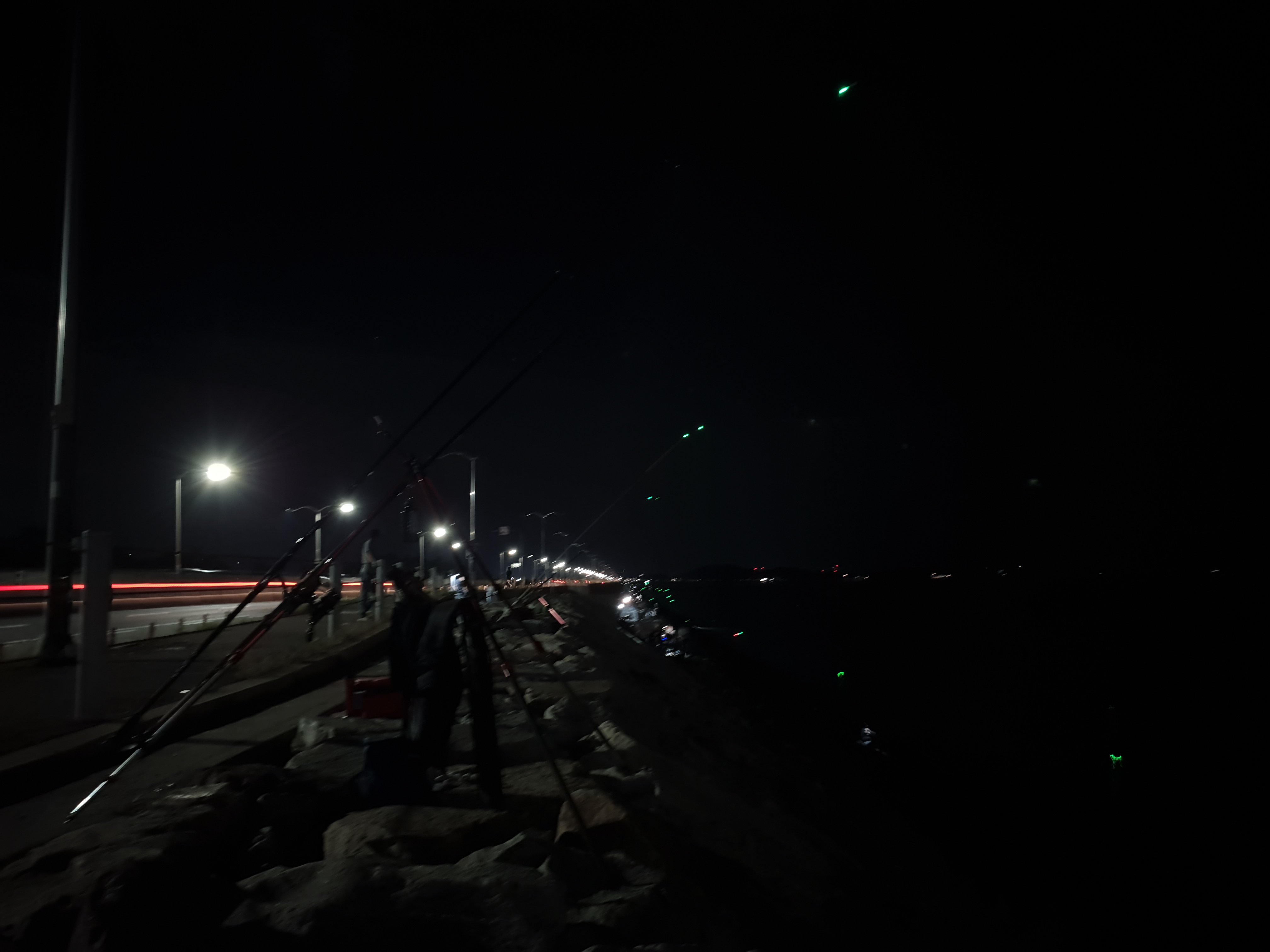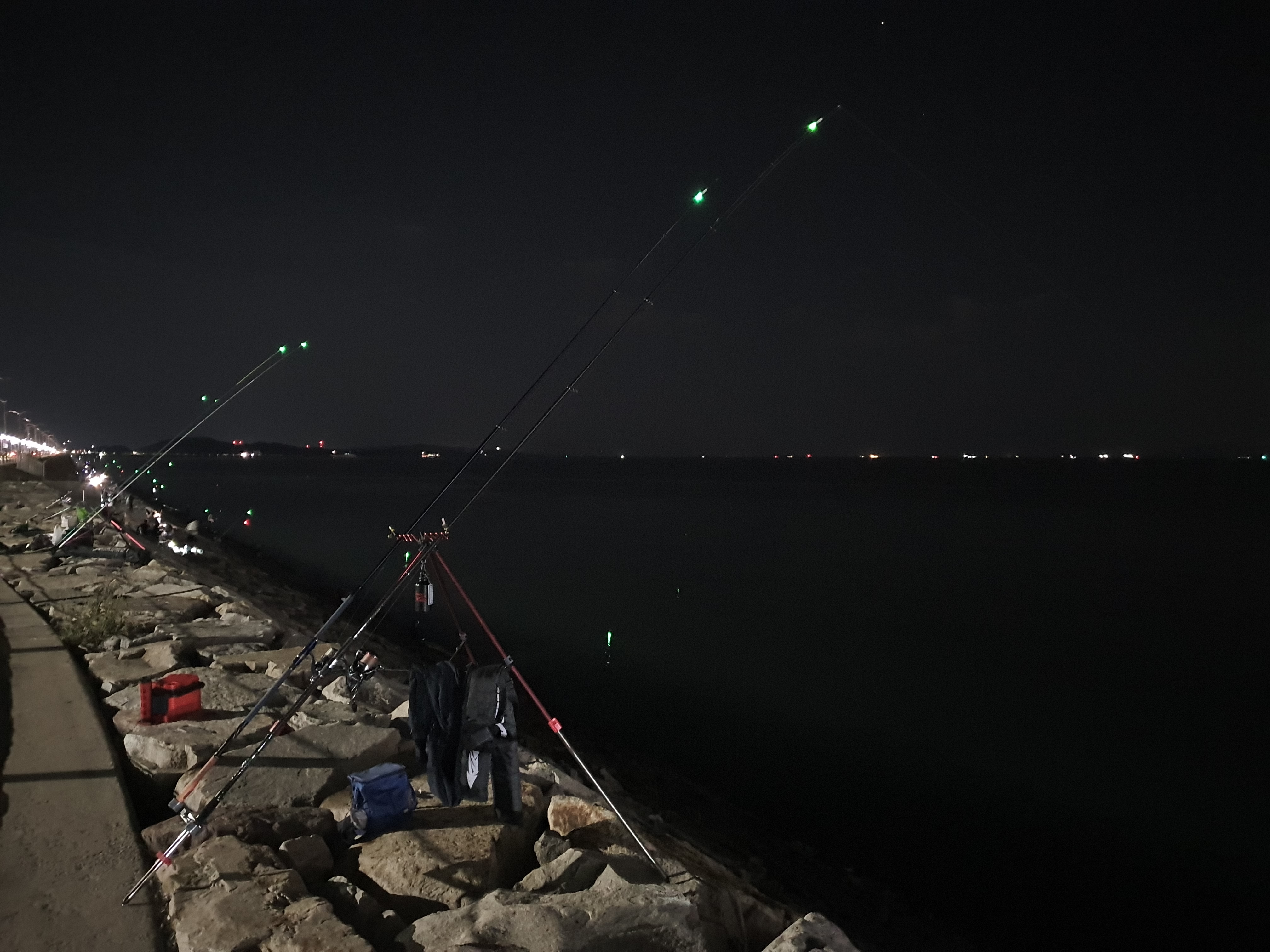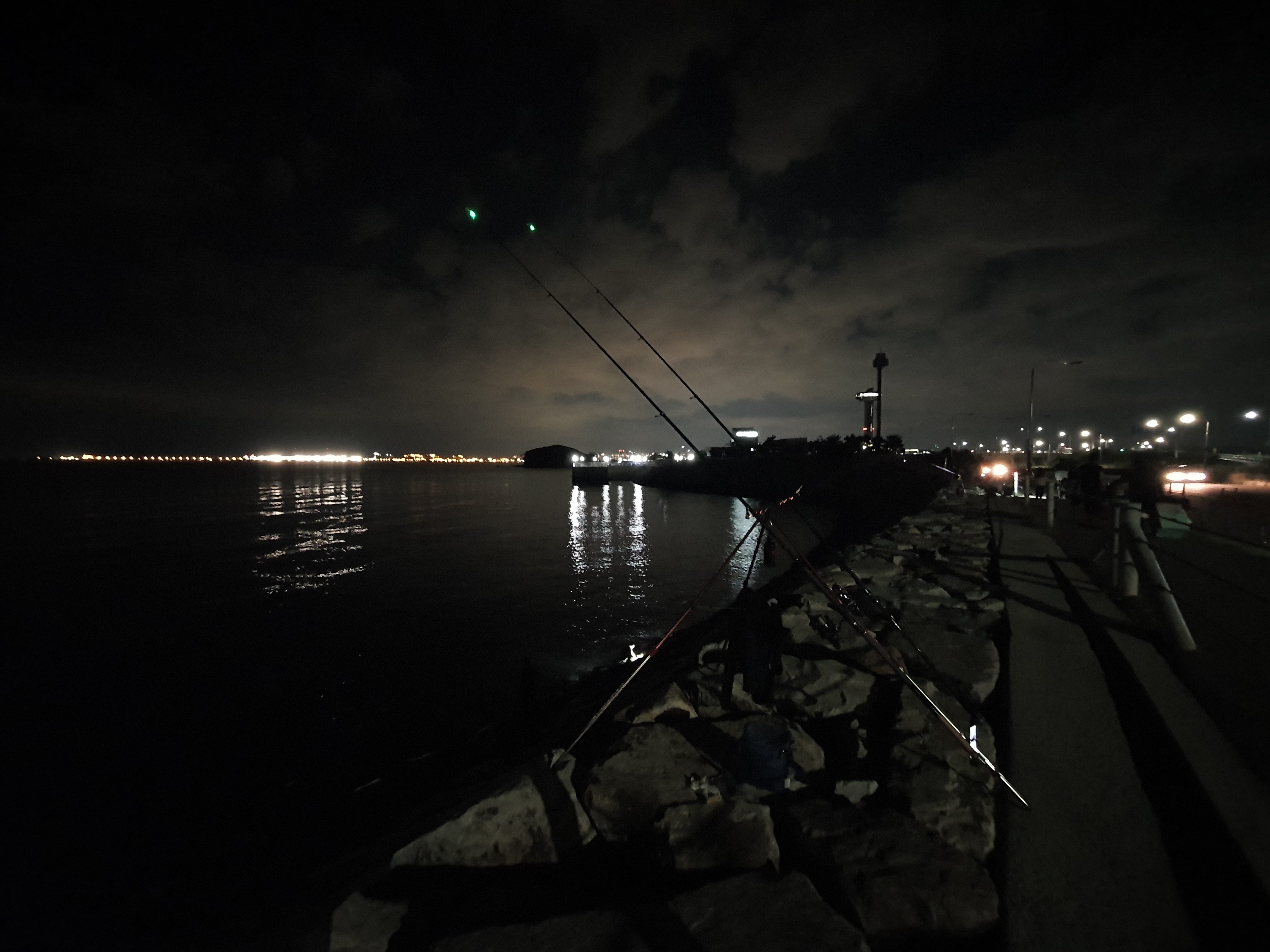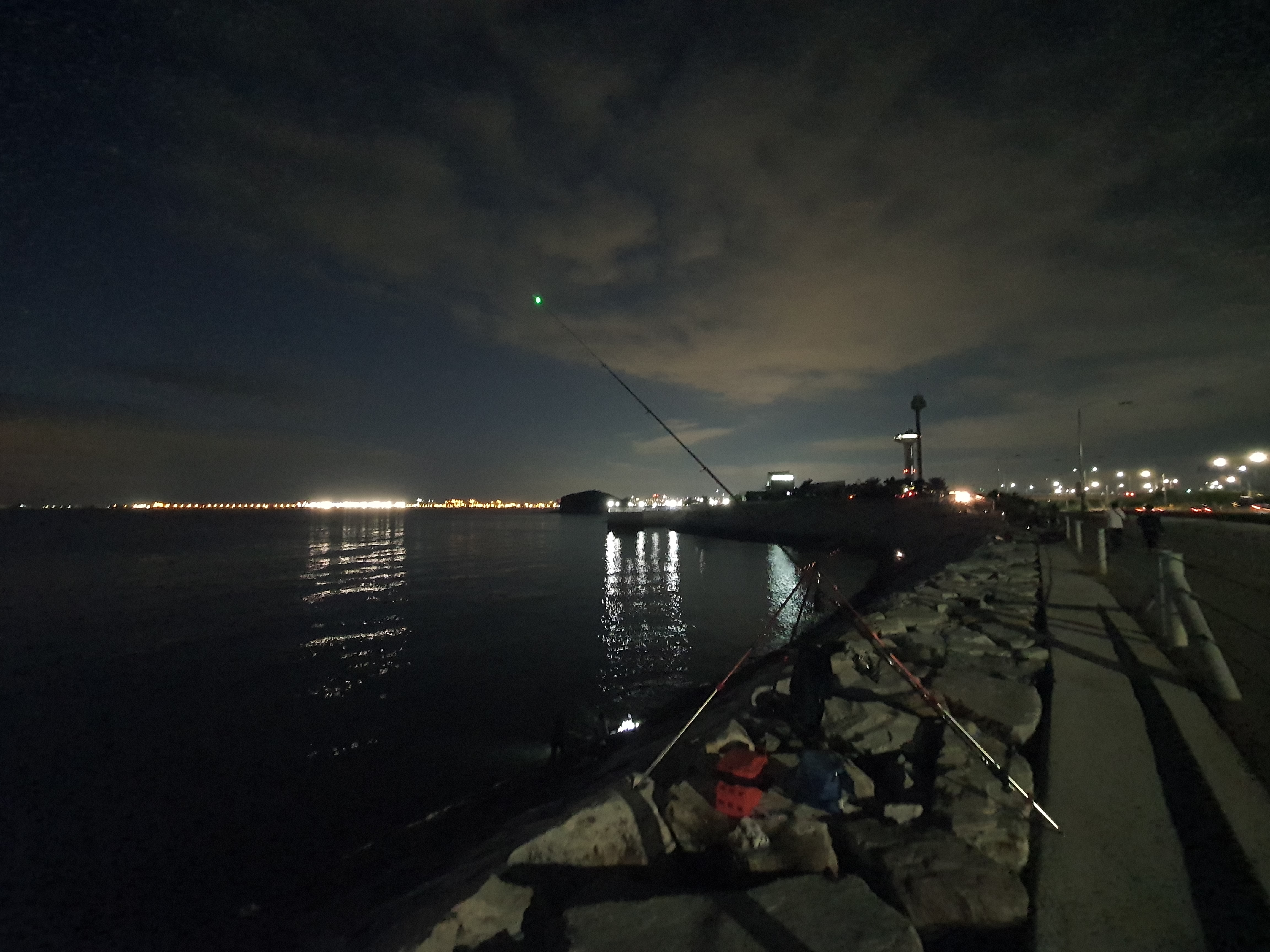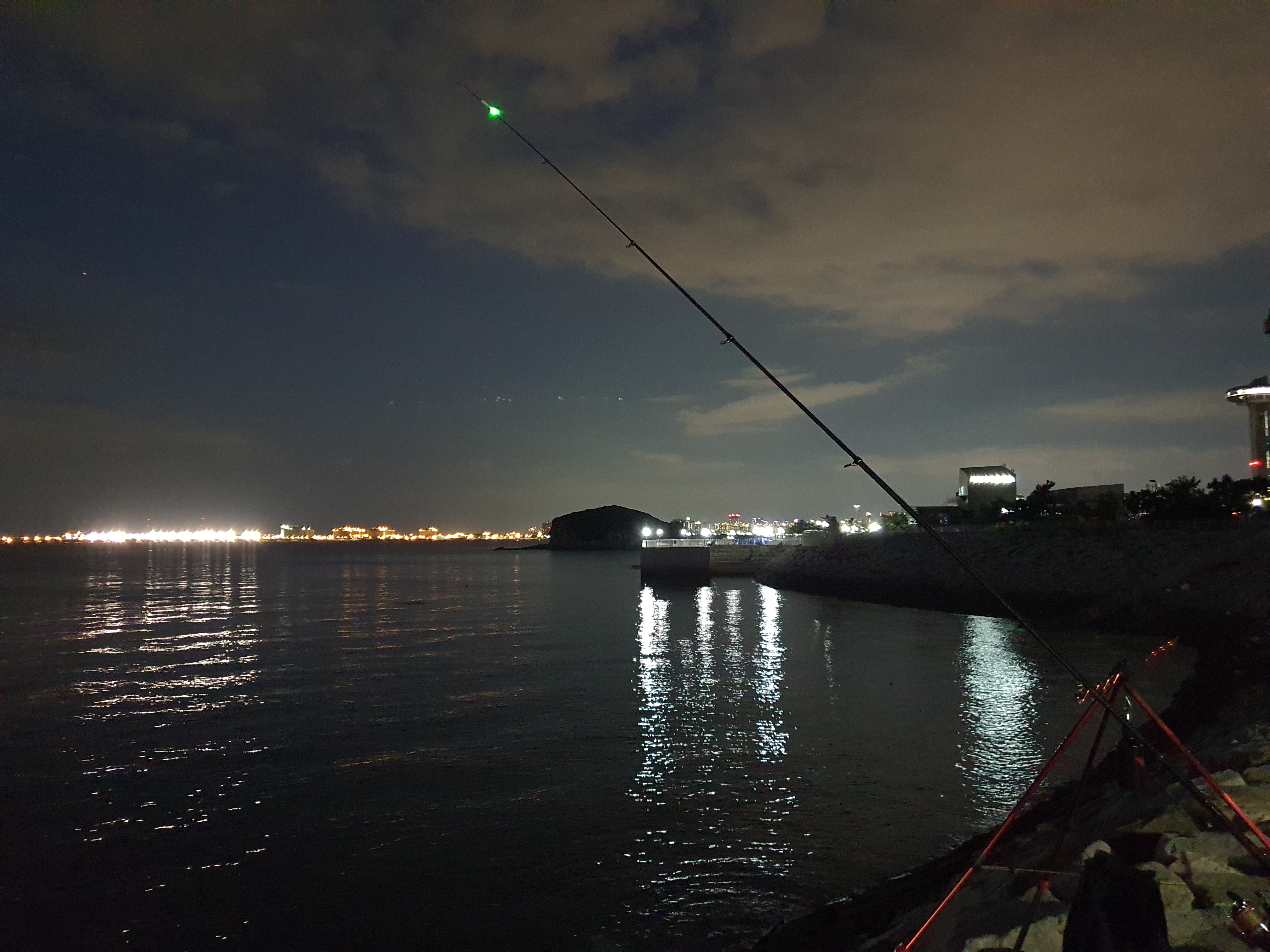 해가 지니 캐미들이 하나 둘 켜지니 저 멀리 1번초소이후까지 꽤 많은 원투조사님들이 낚시를 하고 계신듯 하더군요.