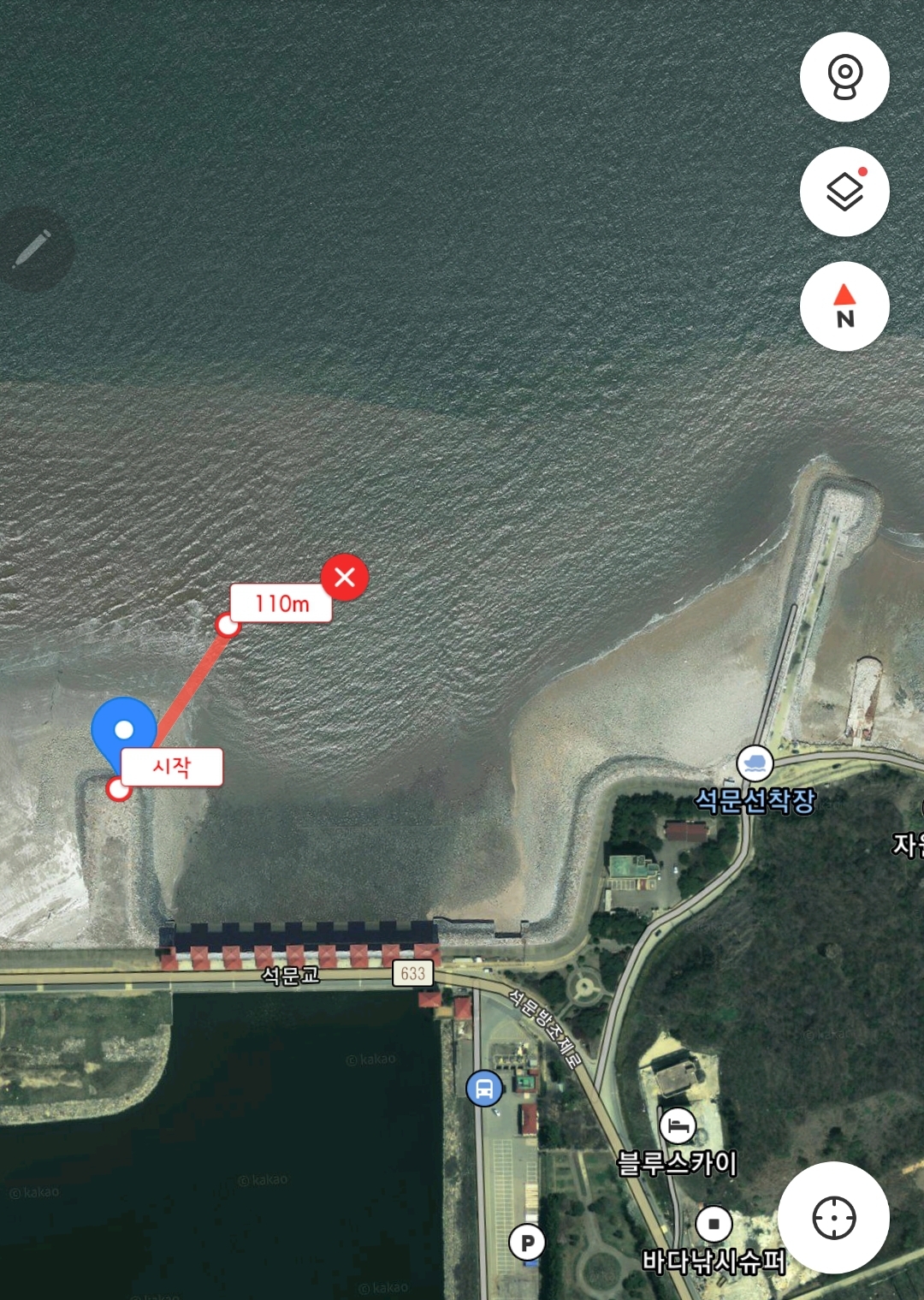 우측 수문 방향으로는 밑걸림이 심하고 전방이나 좌측으로는 모래나 뻘밭인지 밑걸림은 거의 없습니다.