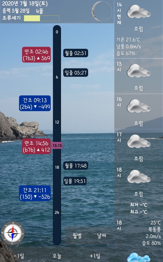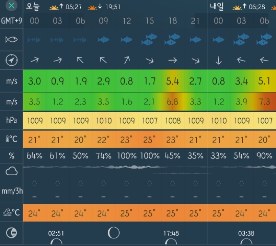 □ 바다상황 : 바람 무, 파도 장판, 물색 좋음