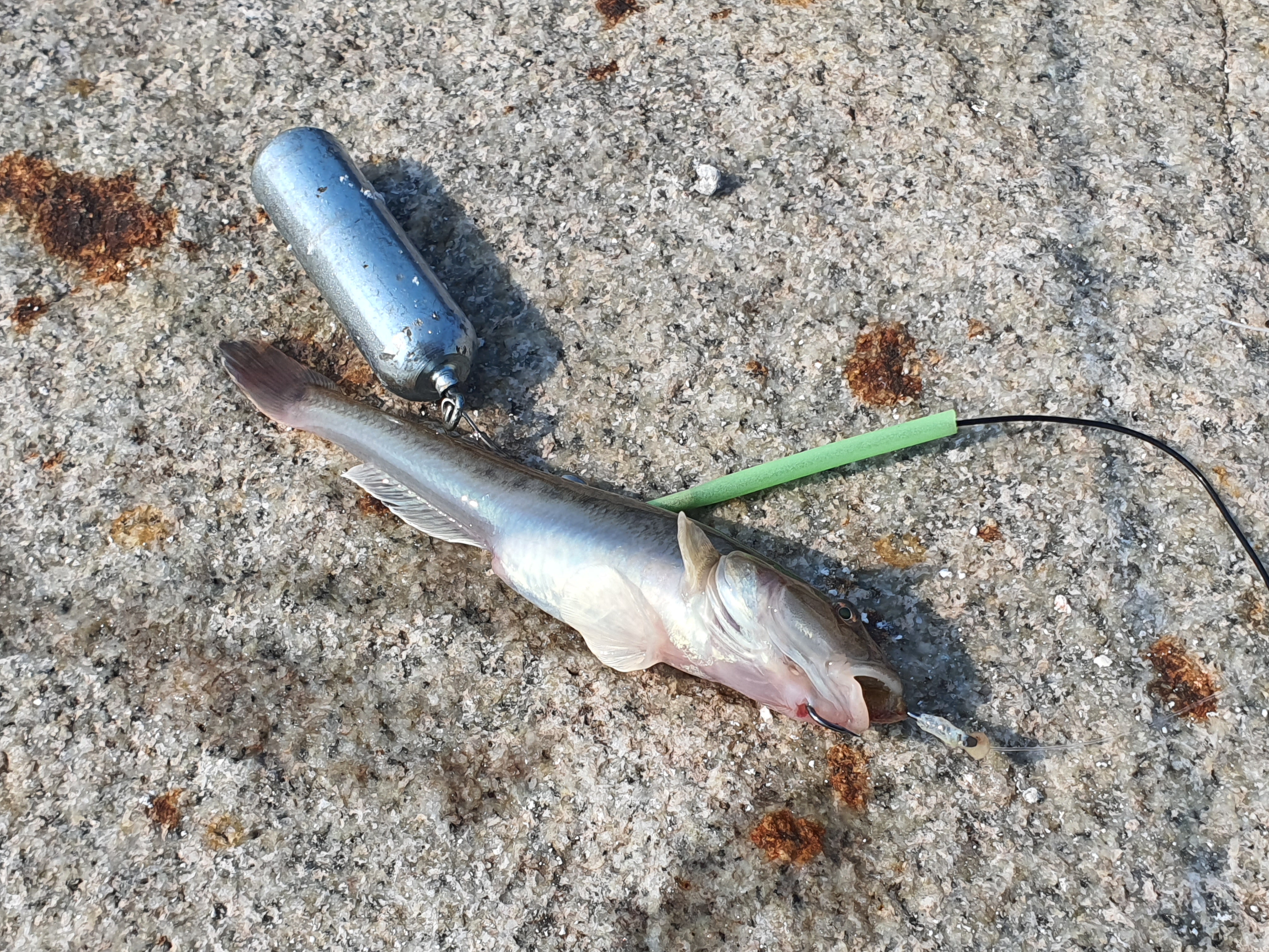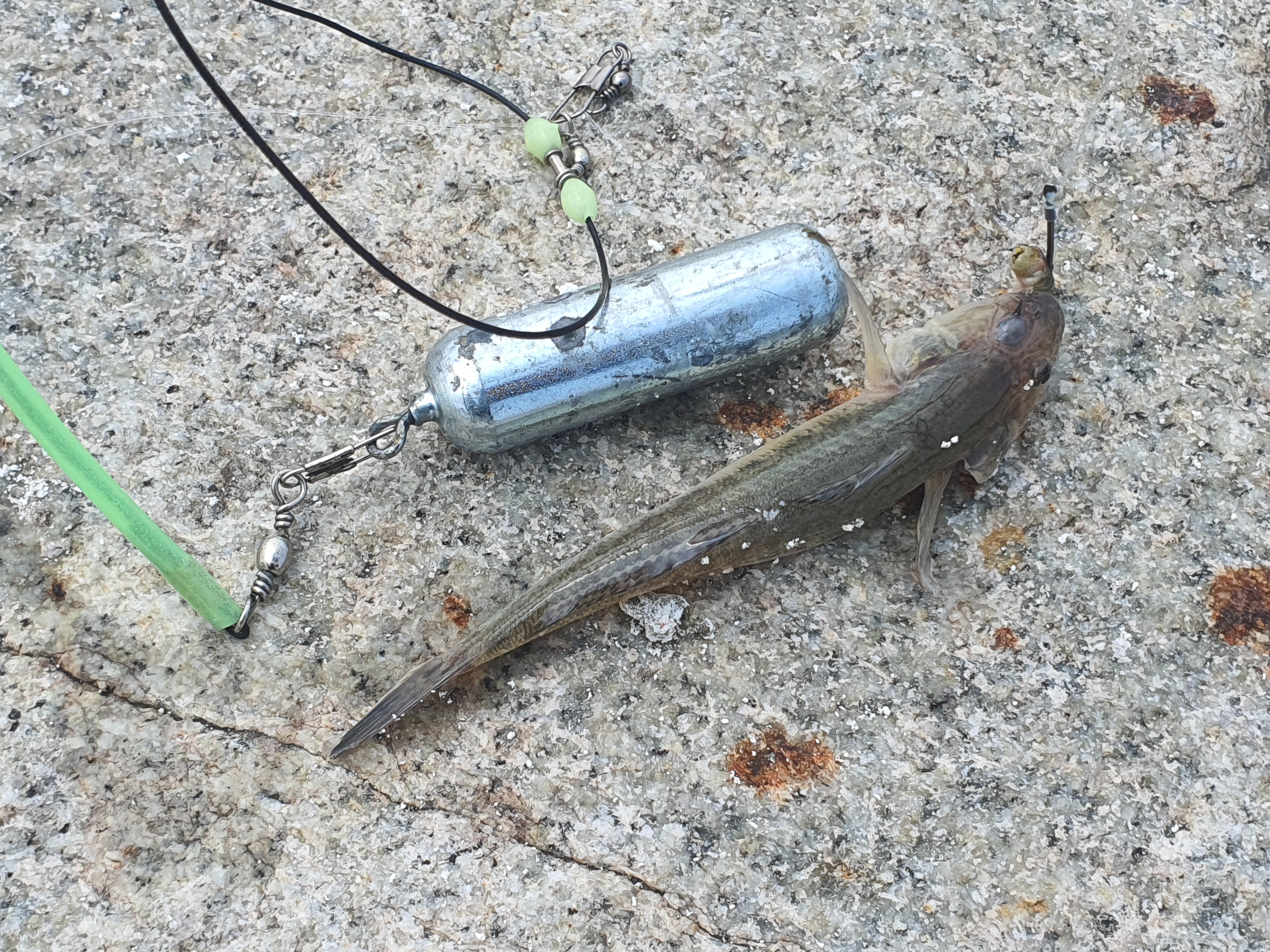던지자마자 오는 입질에 올리니 망둥어가 올라오네요.