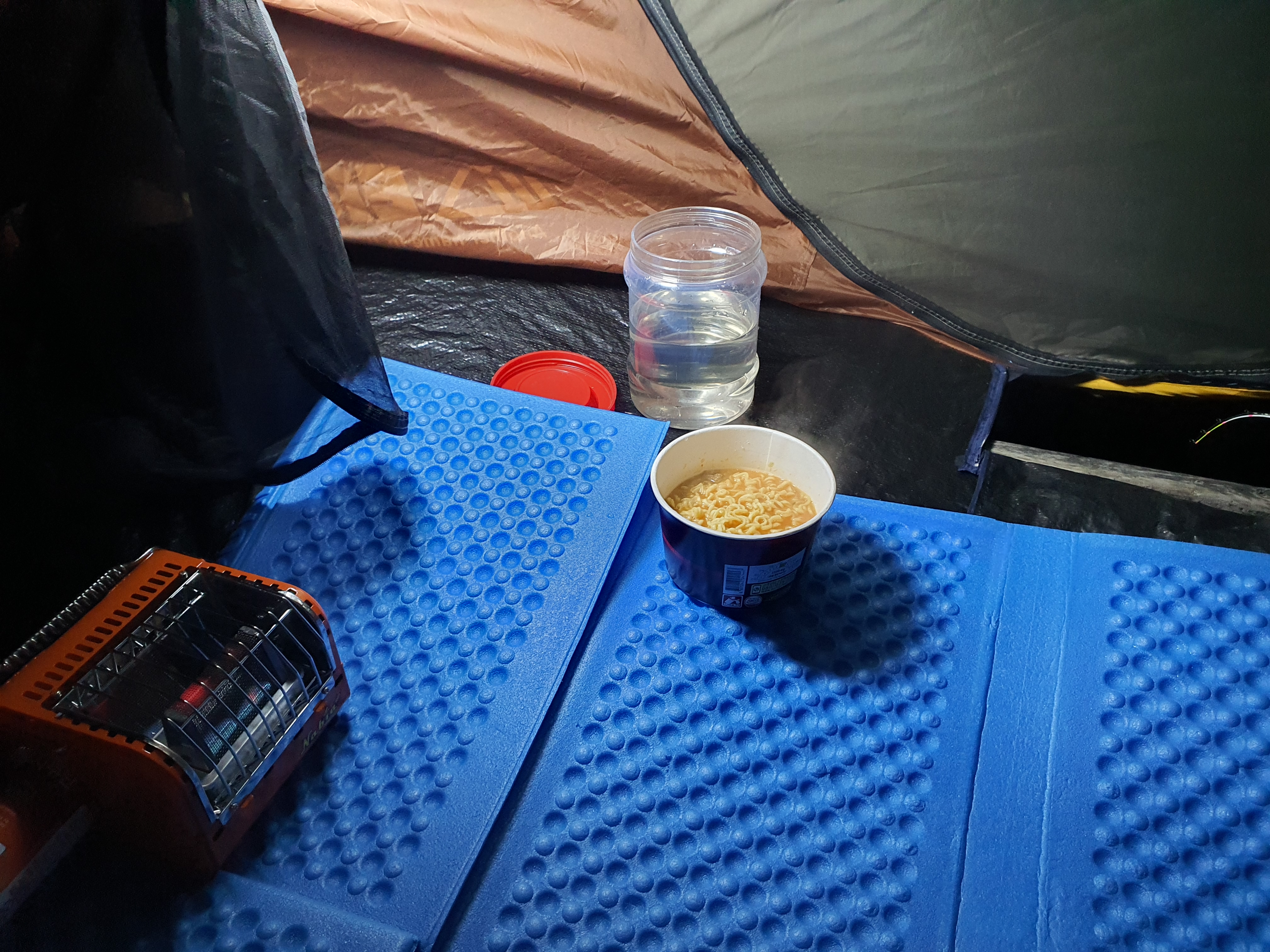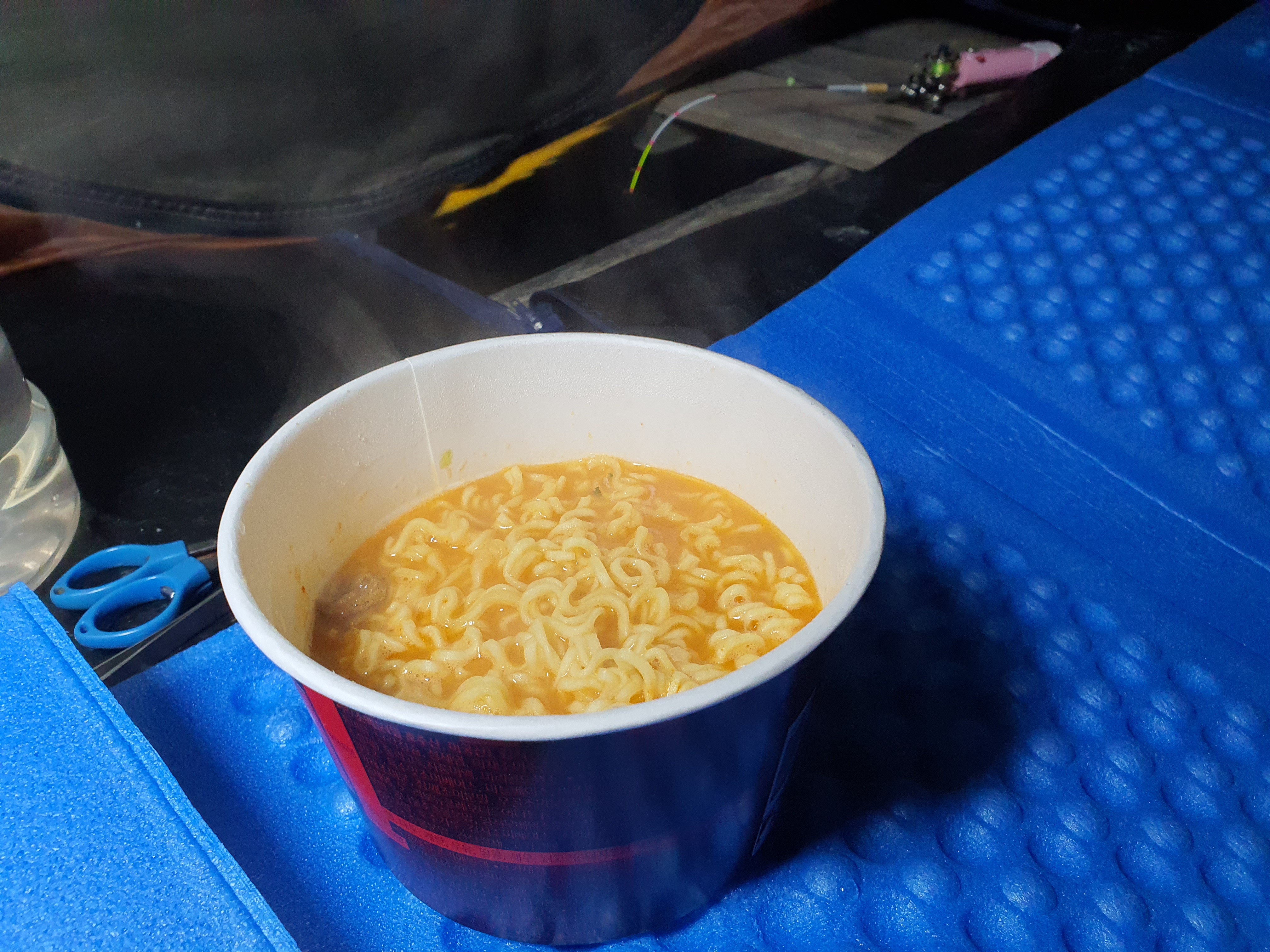 세팅을 다하고 저녁으로 컵라면을 한 그릇 합니다.