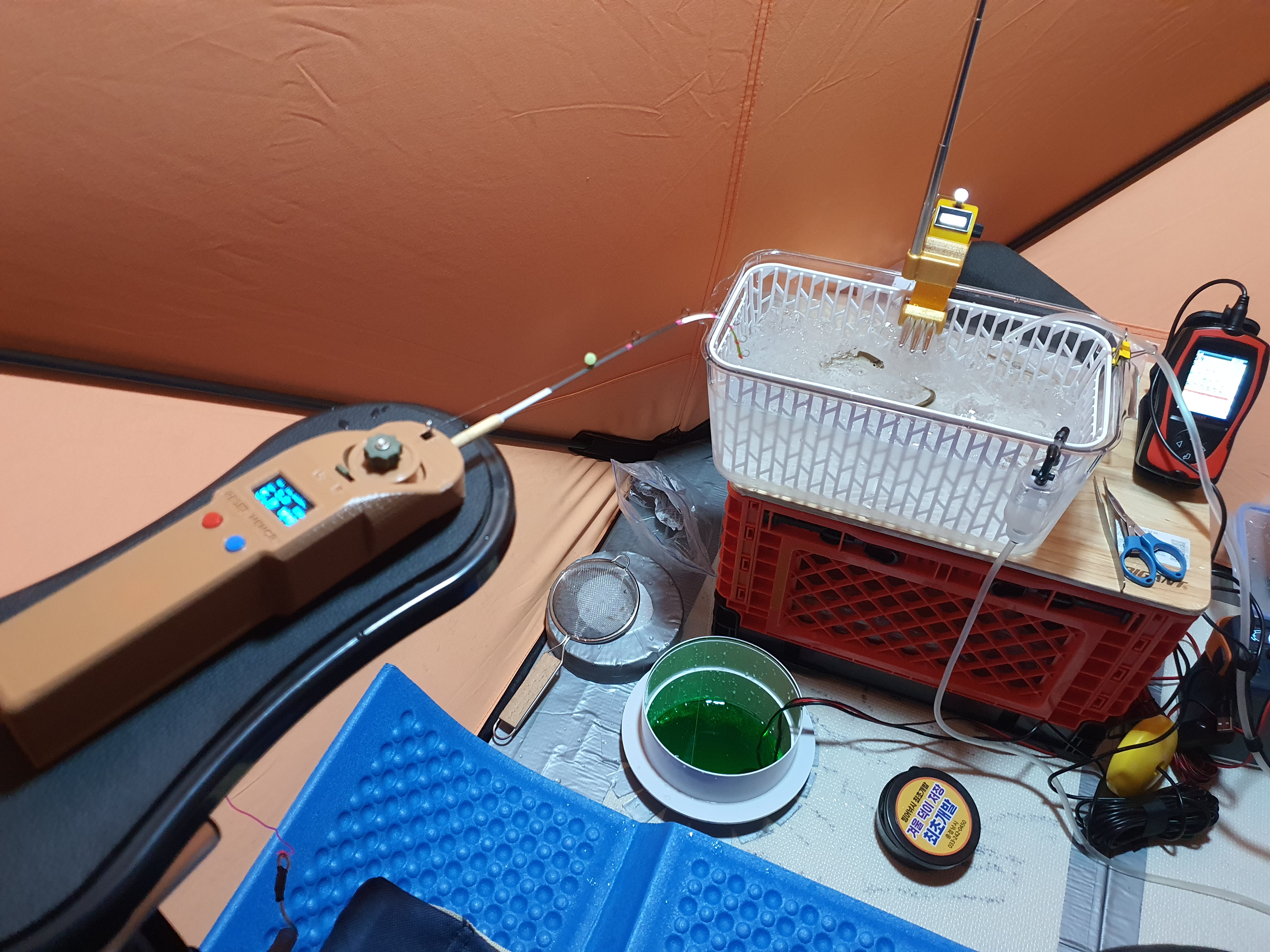 이번 빙어낚시에서는 시만님 전동릴을 사용해 봤습니다. 스풀 문제가 있고 나서 사용이 좀 꺼려졌는데 이번에 사용하면서 사용의 편의성 때문에 자주 사용할 전동릴이 될듯 합니다.
