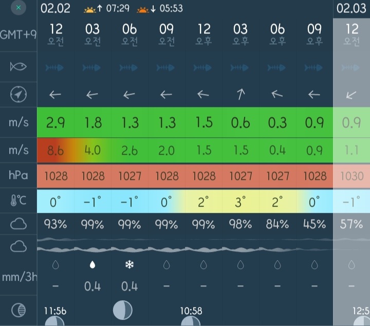 □ 날씨 : 바람 1단 이하, 영상 1도 이하, 맑음