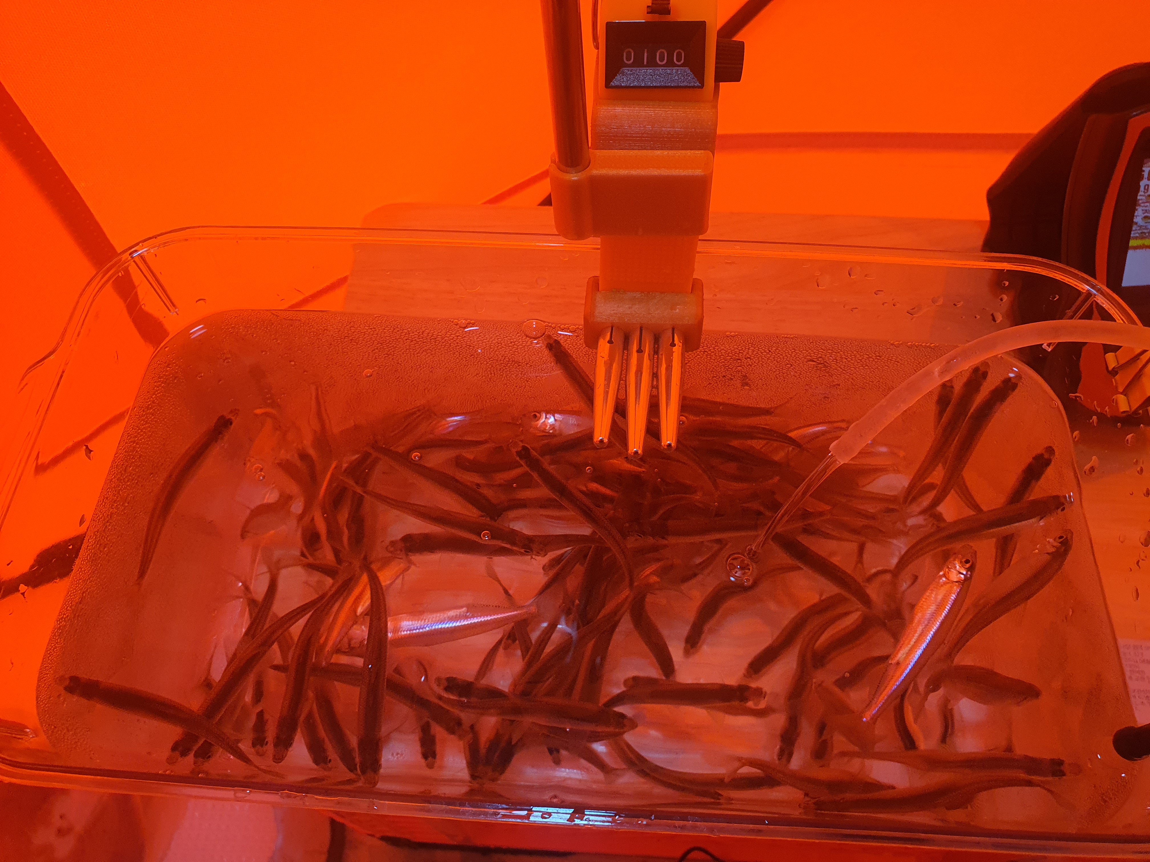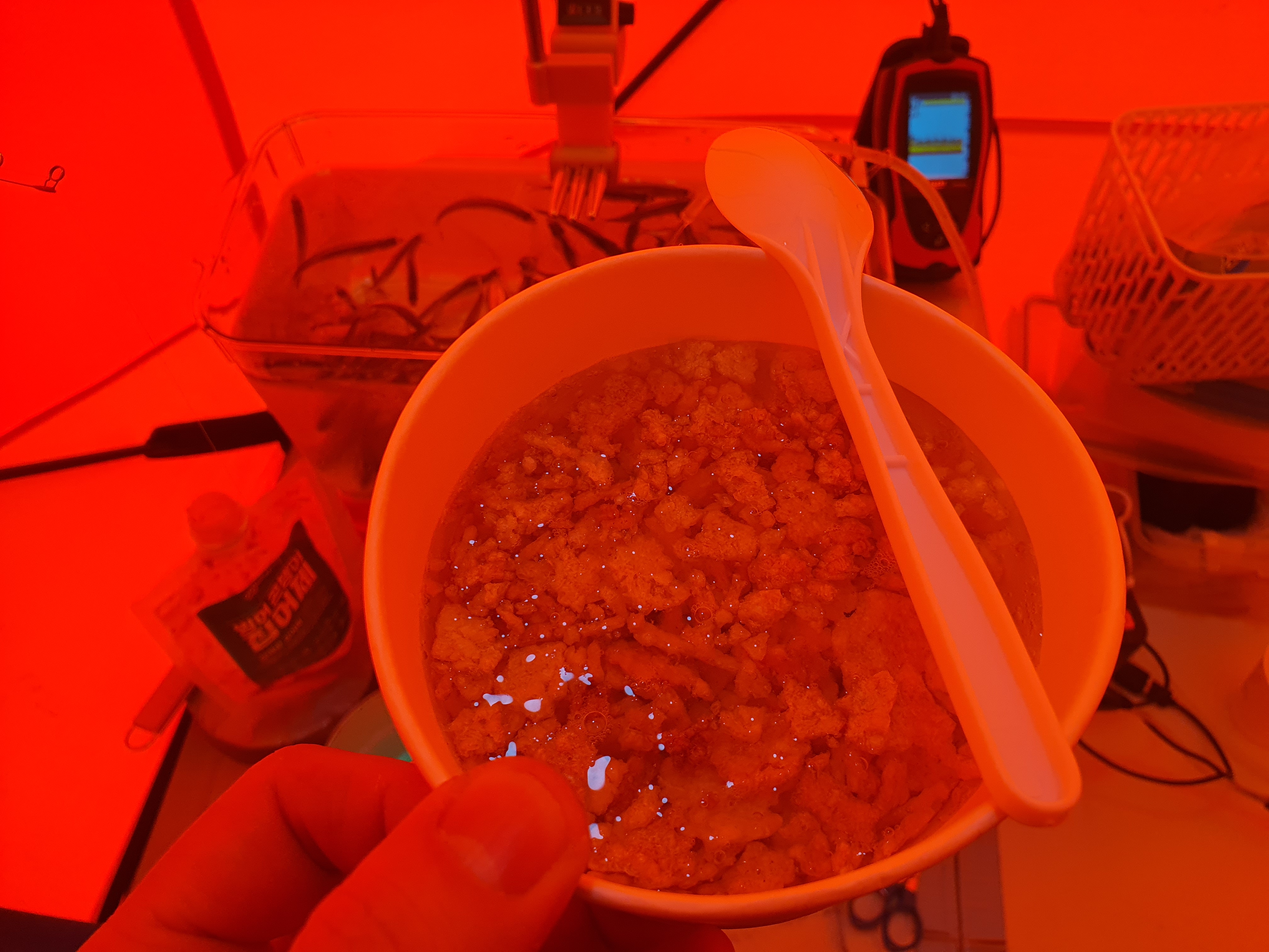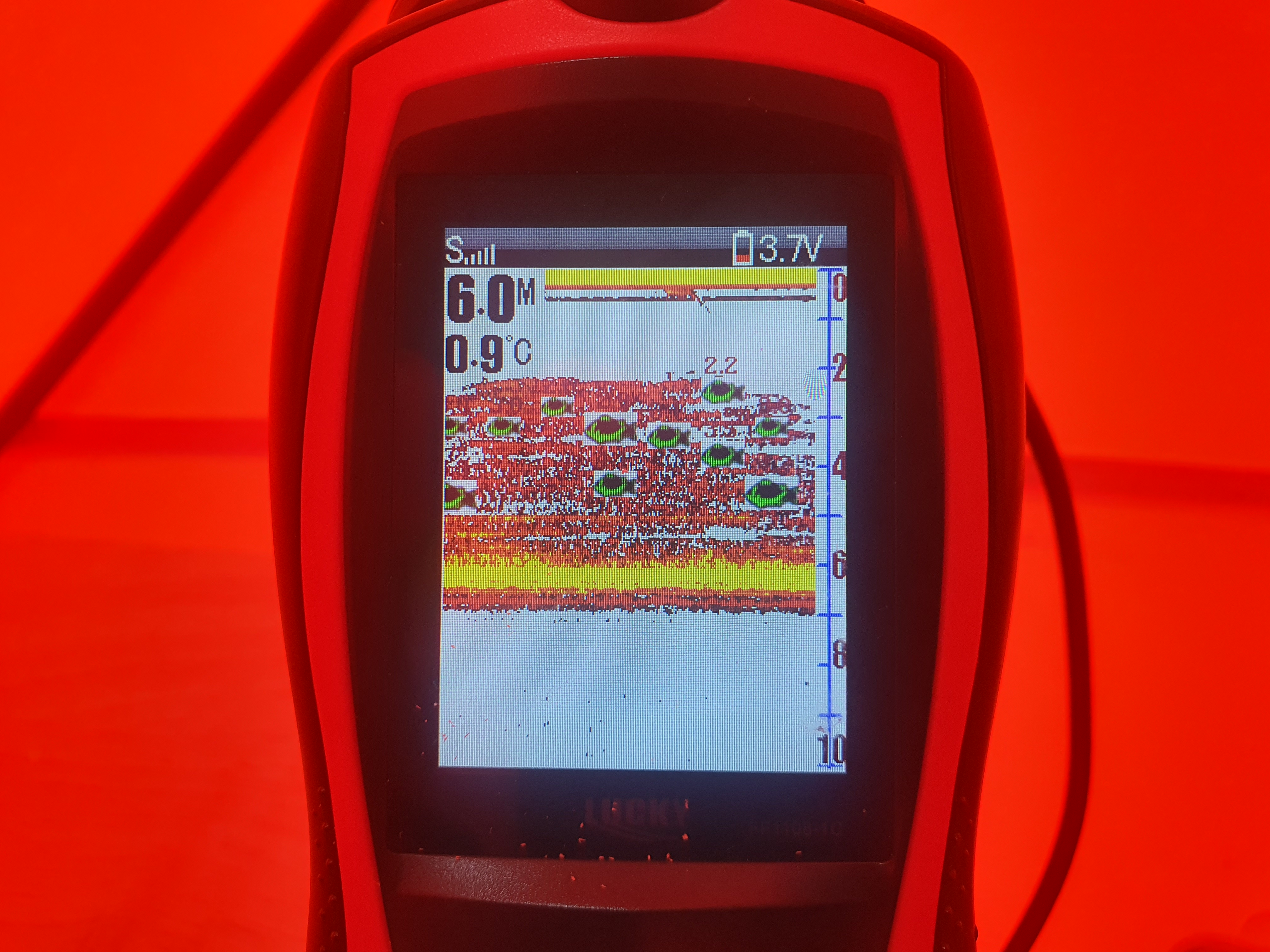온열조끼와 온열매트로 따뜻하게 잠을 자고 5시경에 일어나 피딩타임을 노려봅니다. 바닥권에서 많은 어군이 보였고, 바닥에서 1m정도 띄우니 어제와는 달리 활발하게 입질이 오더군요.