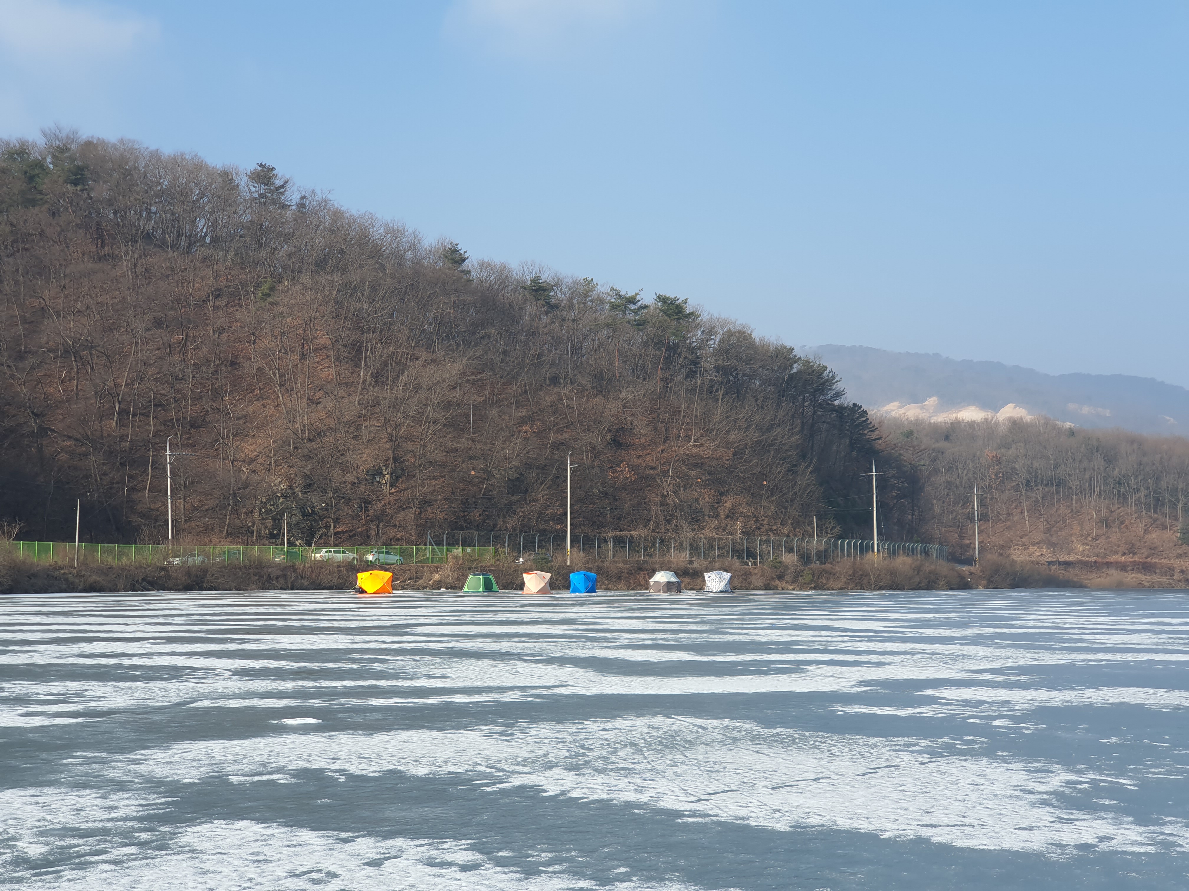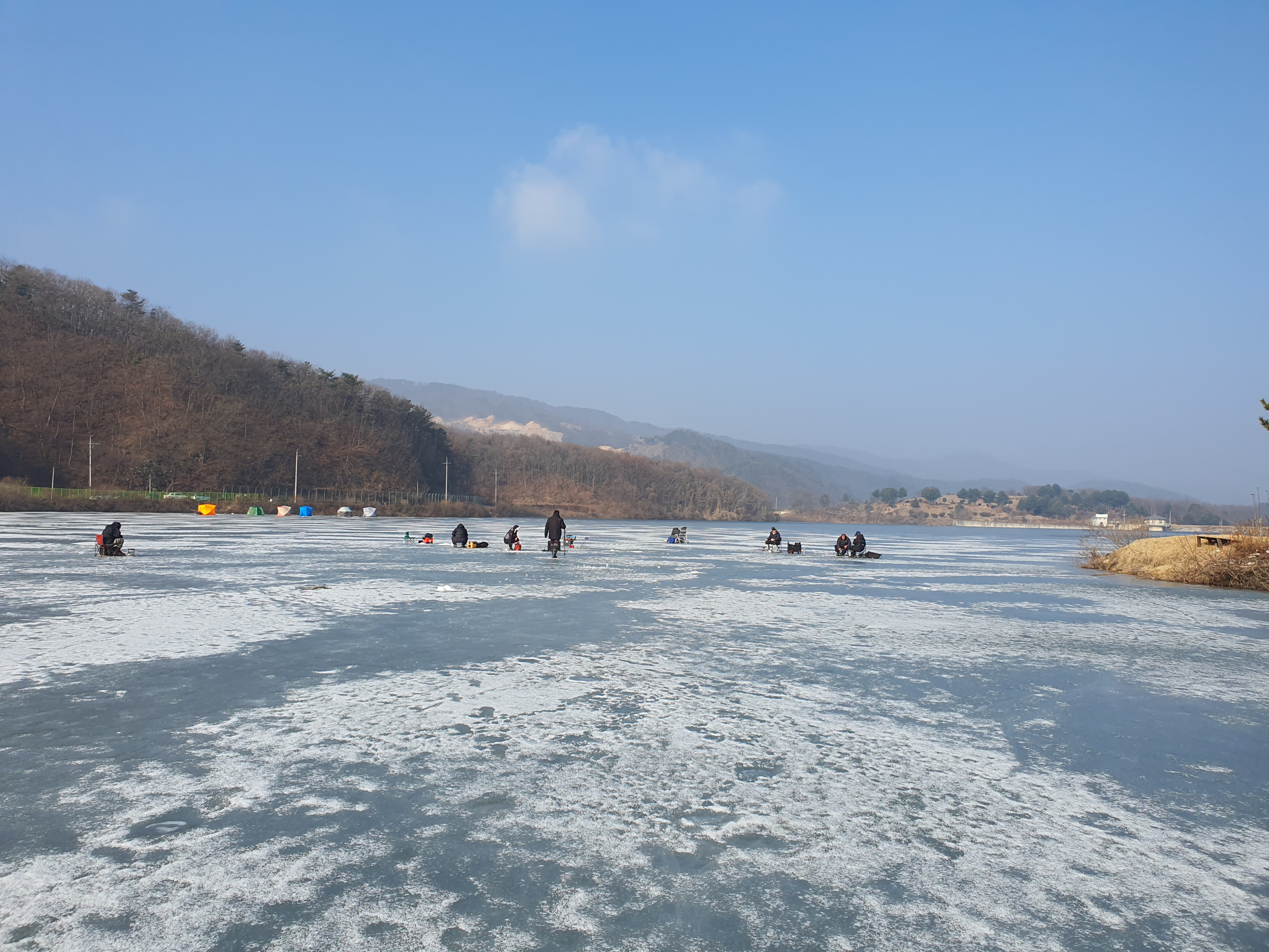 반대편 교회를 지난 포인트에는 빙박을 하시는 텐트가 몇 있었는데, 오후가 되니 절반이상이 철수를 했더군요. 아무래도 빙판 갈라지는 소리에 불안하기는 했습니다. 제가 하던곳도 쩌억쩌억 갈라지는 소리와 진동에 한번씩 놀라기도 했네요.