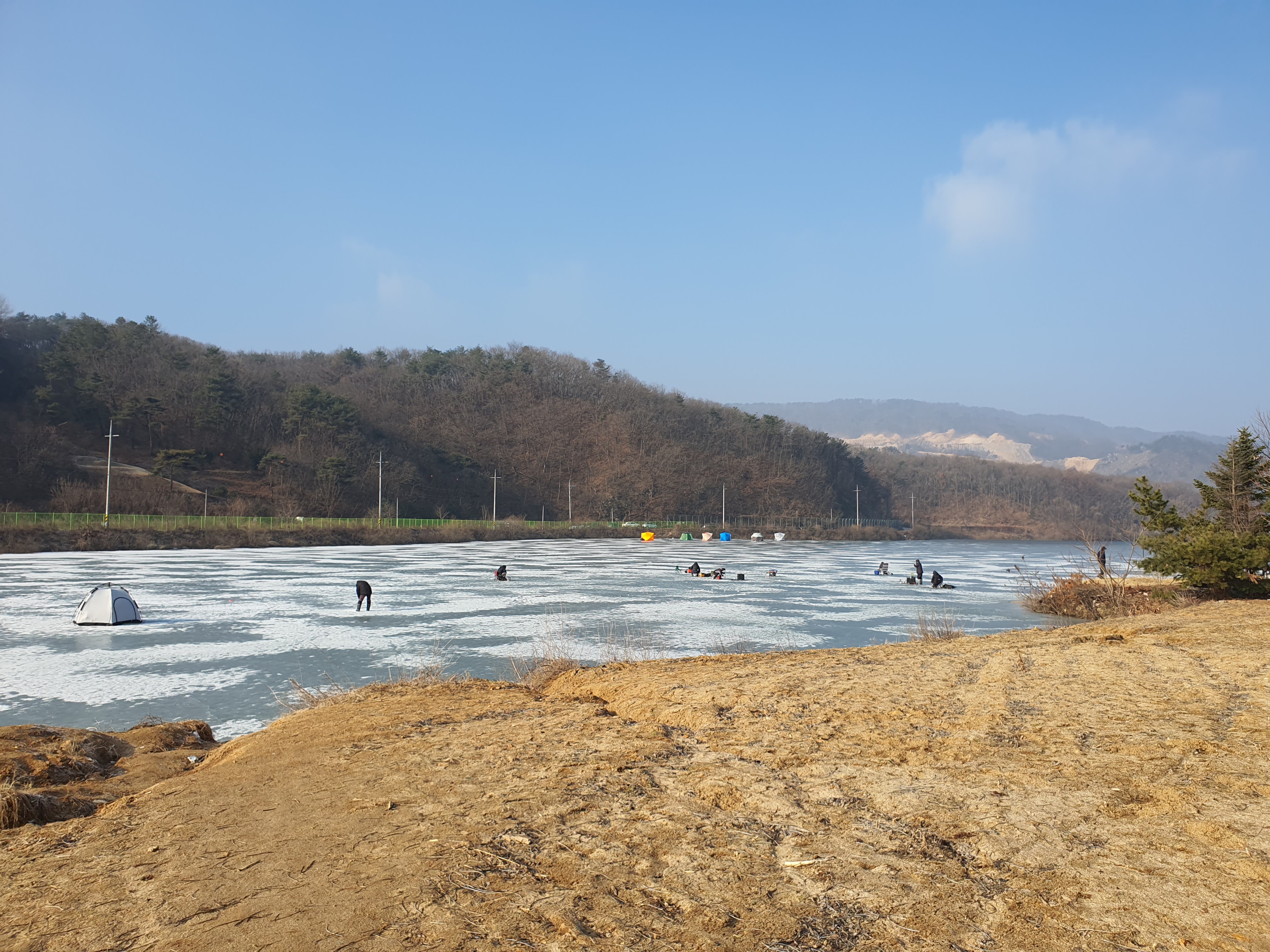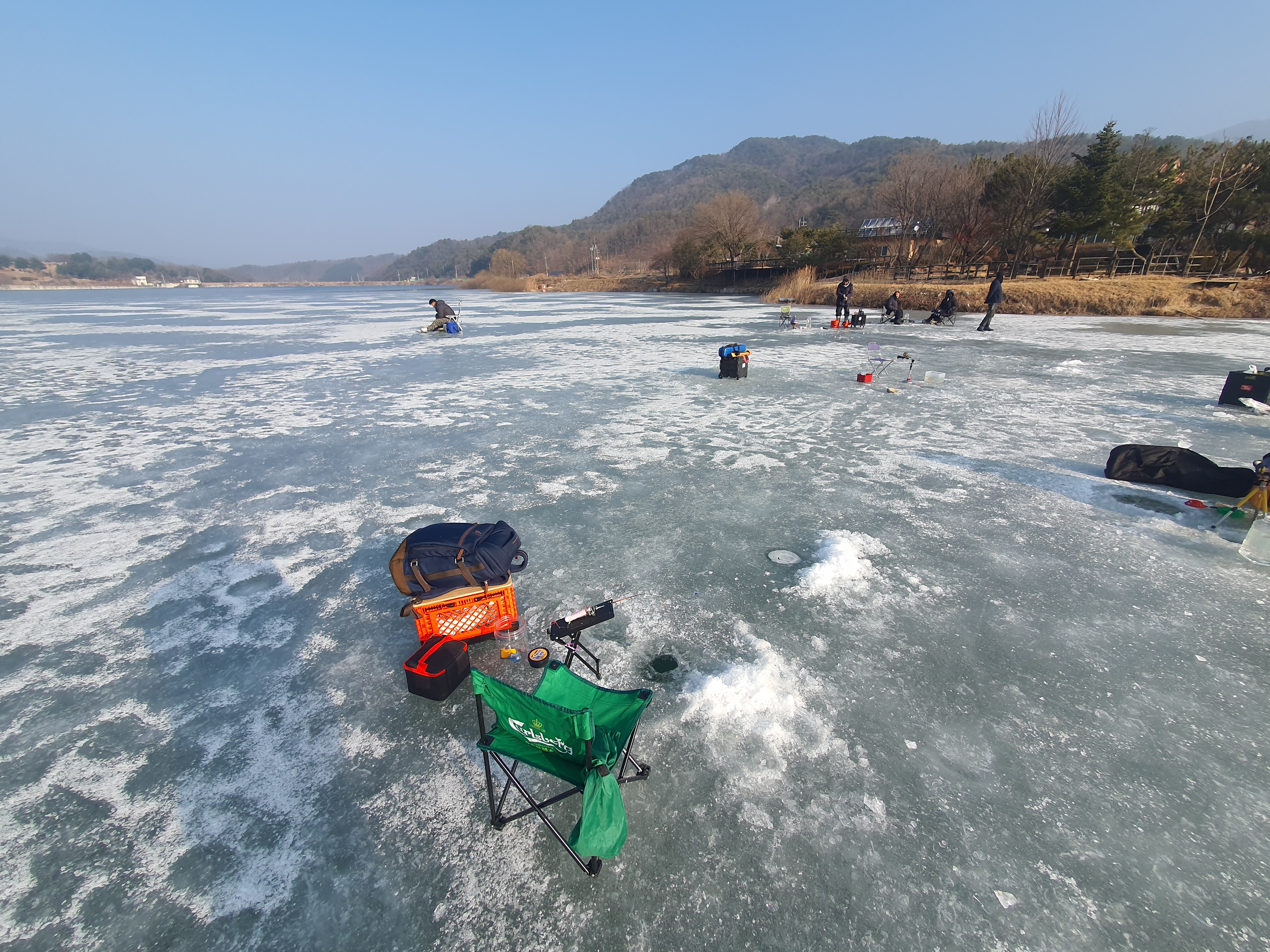 노지에서 하시는 분들 근처에 자리를 잡고 시즌 마지막 빙어낚시를 시작합니다.