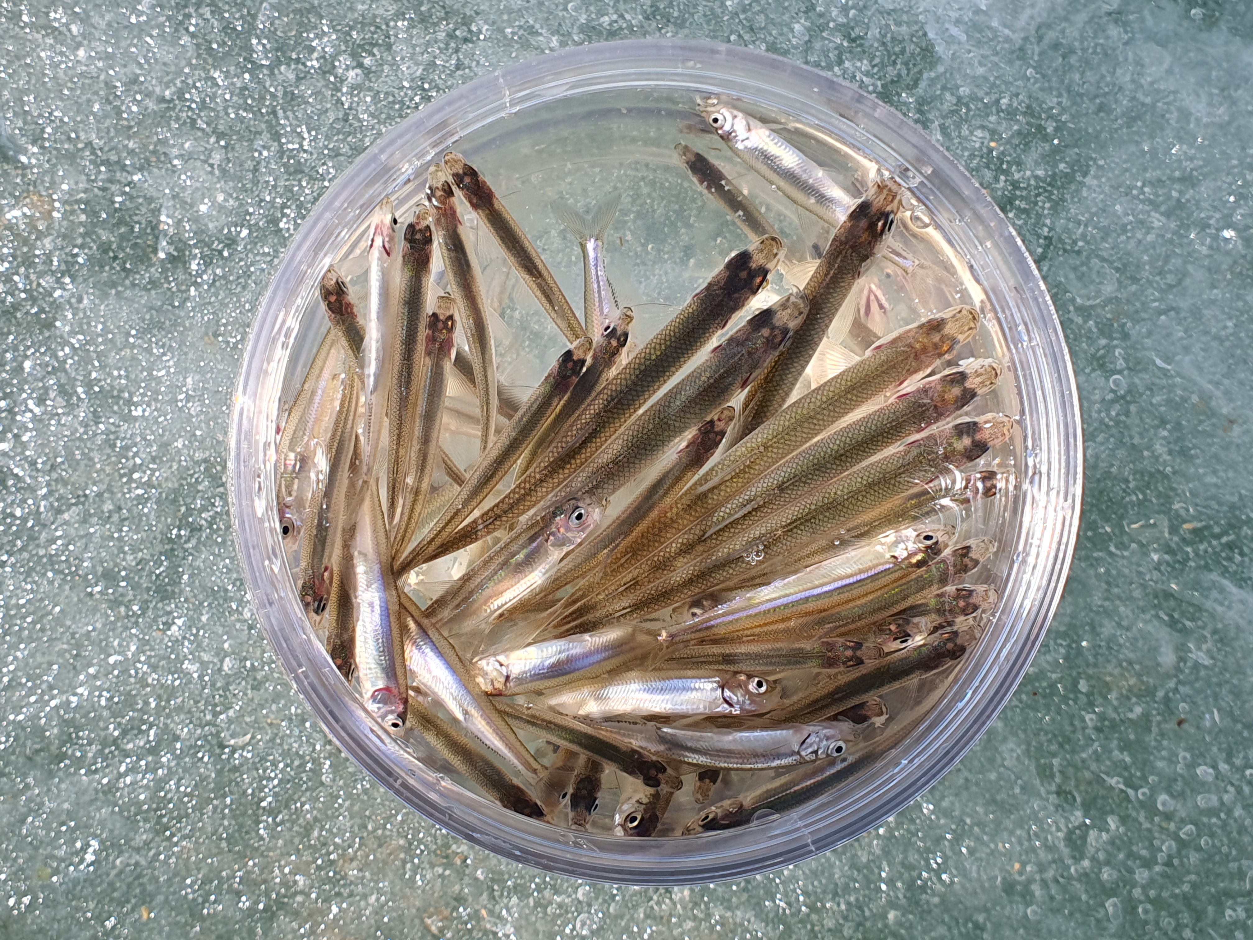 이미 알고 있었지만 귀운지 빙어 사이즈가 정말 작더군요. 사이즈는 둘째치고, 맞은편에 계시는 분은 계속 한마리 한마리 올리시는것에 비해 간간히 오는 입질에 챔질이 잘 안되더군요.