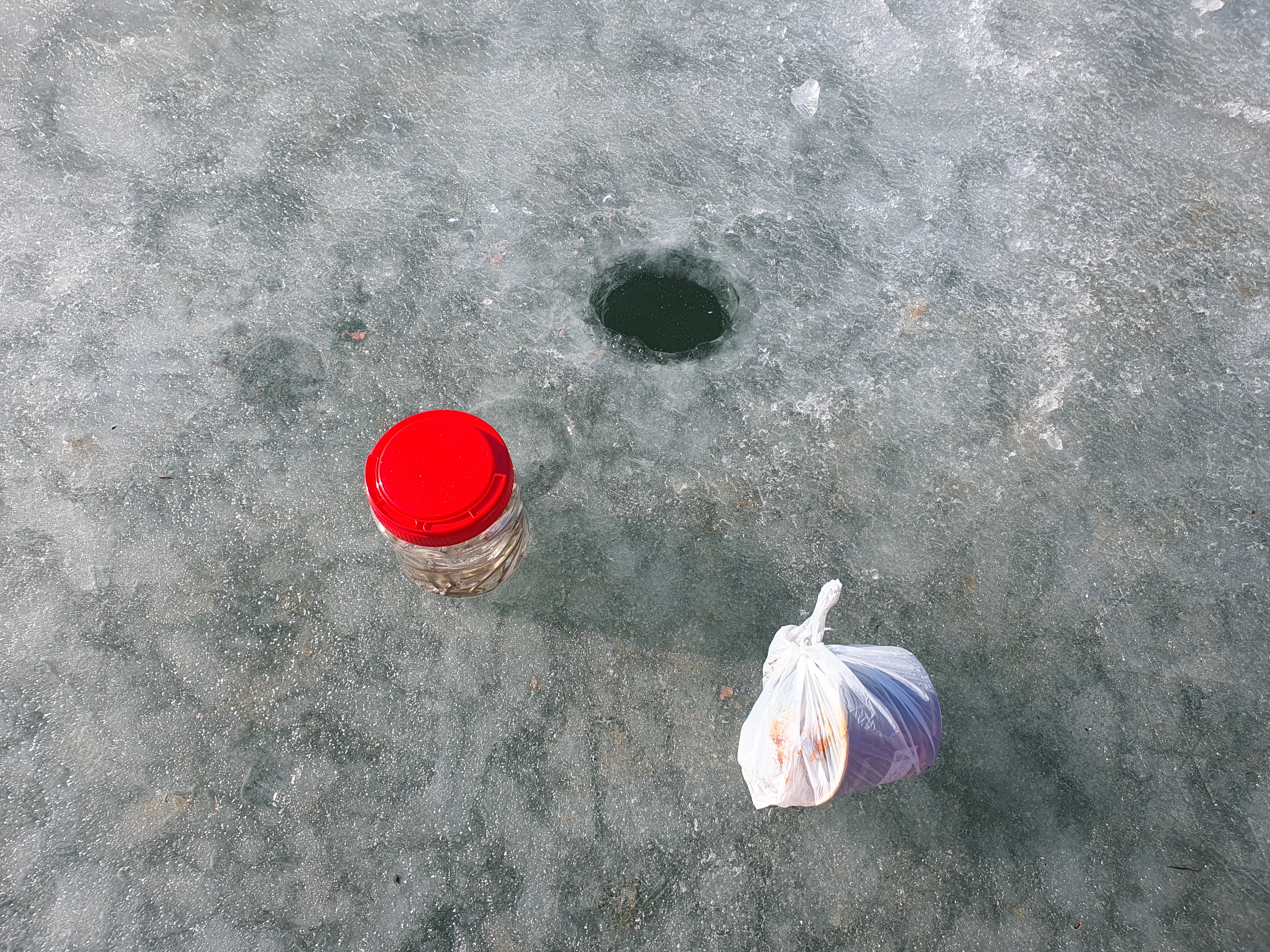 1시간동안 이전에 잡은 빙어보다 더 많이 잡은 듯 합니다. 입질이 조금 뜸해진 틈을 타 컵라면으로 점심을 합니다.