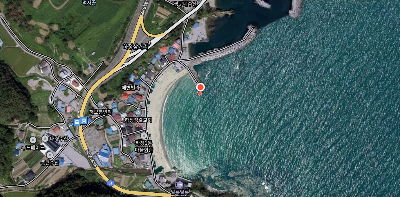 구룡포항에서 그리 멀지 않은 하정2리에 위치한 해변을 끼고 있는 포인트입니다.