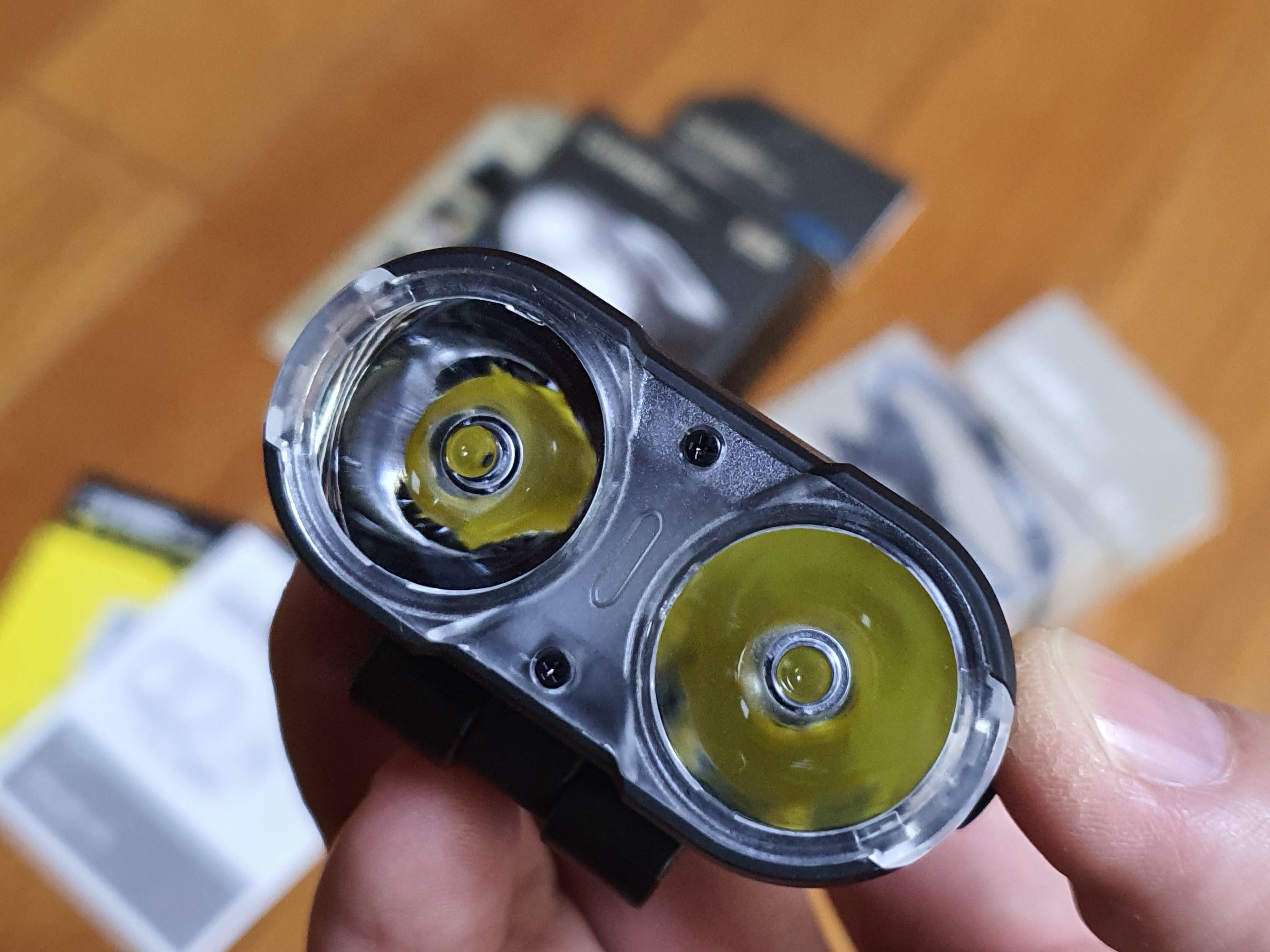 크레모아3 캡온을 살펴보면, 집중광이 나오는 부분이 노란색이 보이는 부분입니다. 최대 500루멘의 밝기를 제공하는데, 아쉽지 않은 밝기라 만족하며 사용 중이네요.