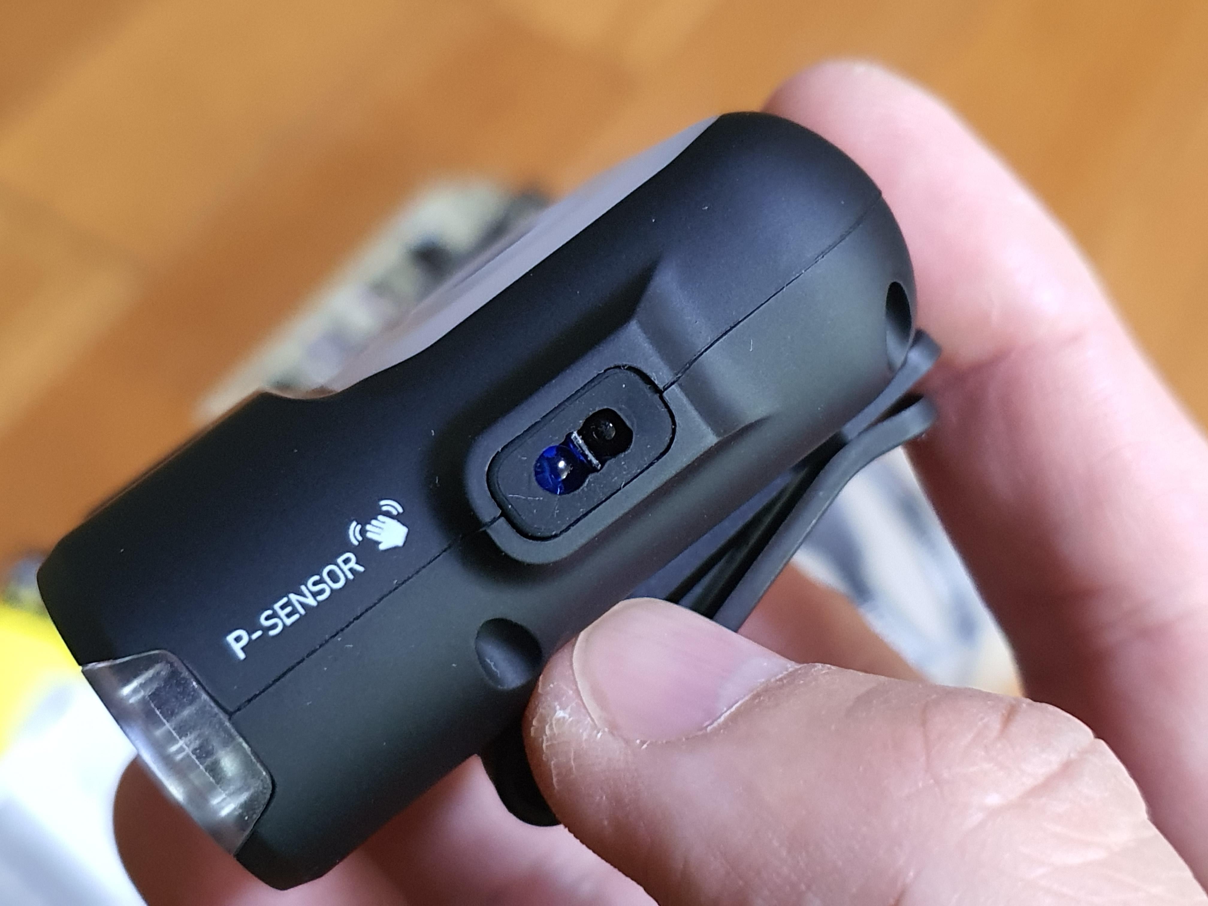 측면에 센서가 위치하고 있어서 모드버튼을 2초 누르면 센서모드를 이용할 수 있고, 버튼을 누르지 않고 센서부분을 슥~ 지나가면 핸즈프리로 빛을 On/Off 할 수 있습니다.