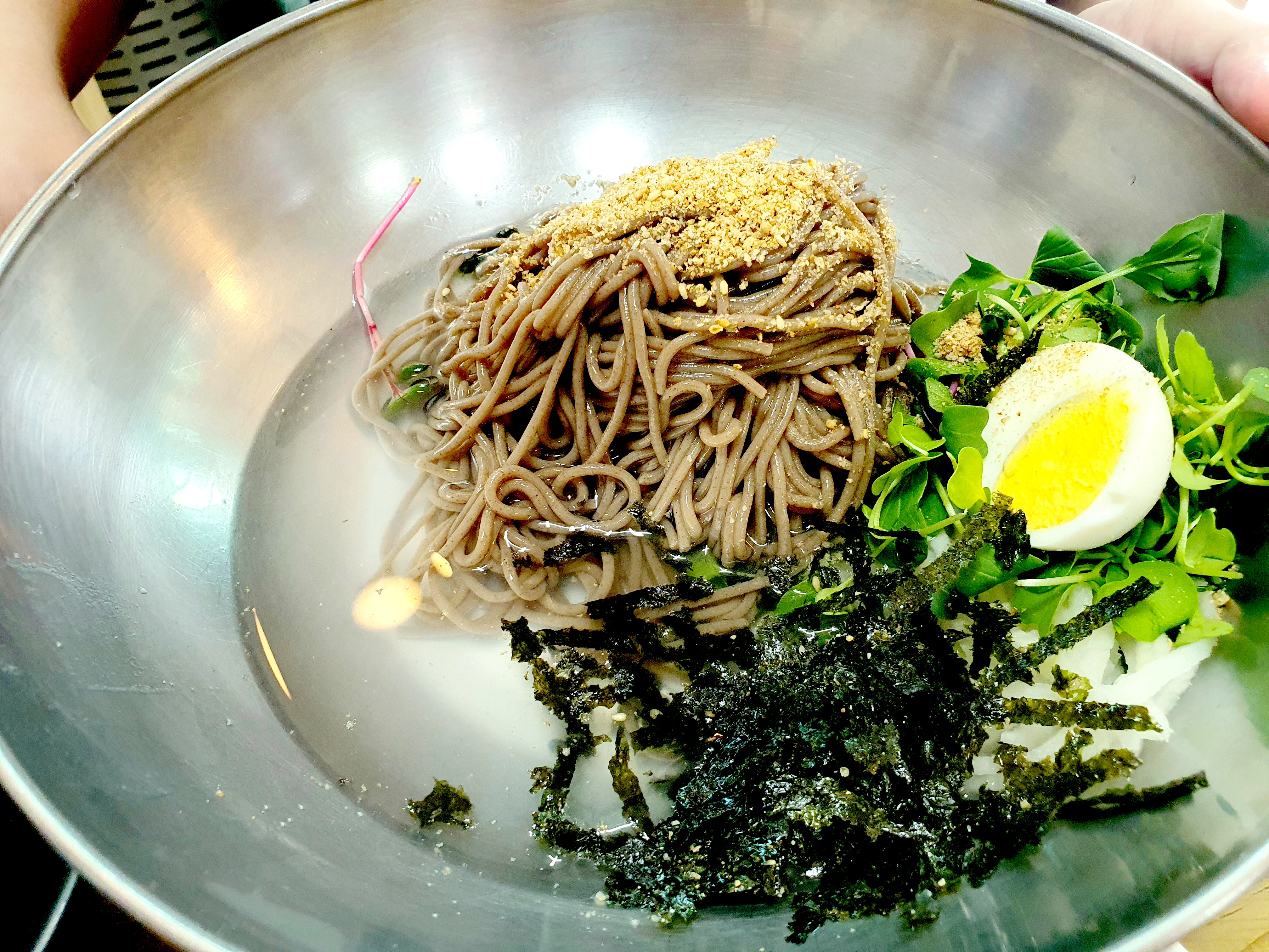 짭짜롬하면서도 시원한 동치미 맛을 보는 동안 주문했던 막국수가 나옵니다.