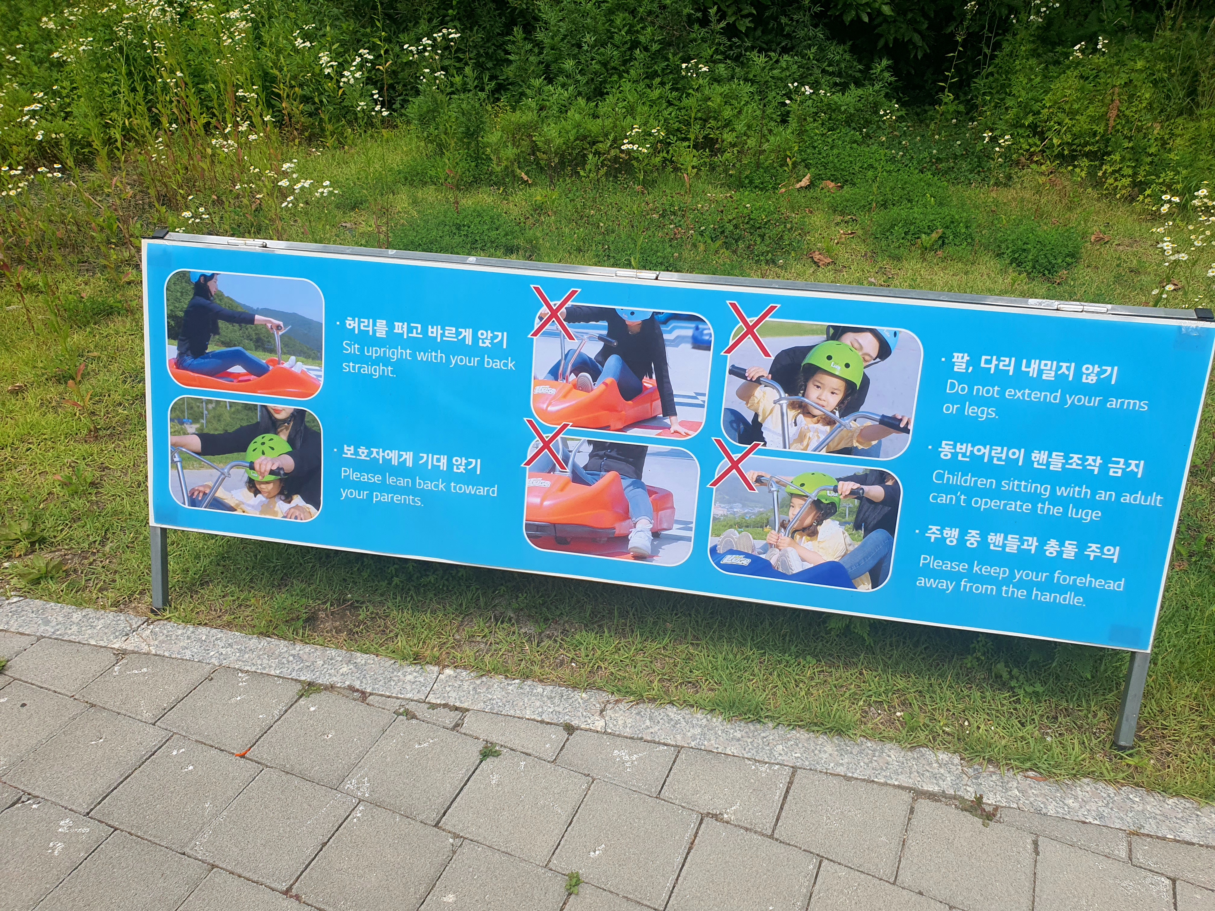 루지 탄 경험이 있더라도 첫 번째 탑승 시에는 오른쪽으로, 이후에는 왼쪽으로 진입합니다.