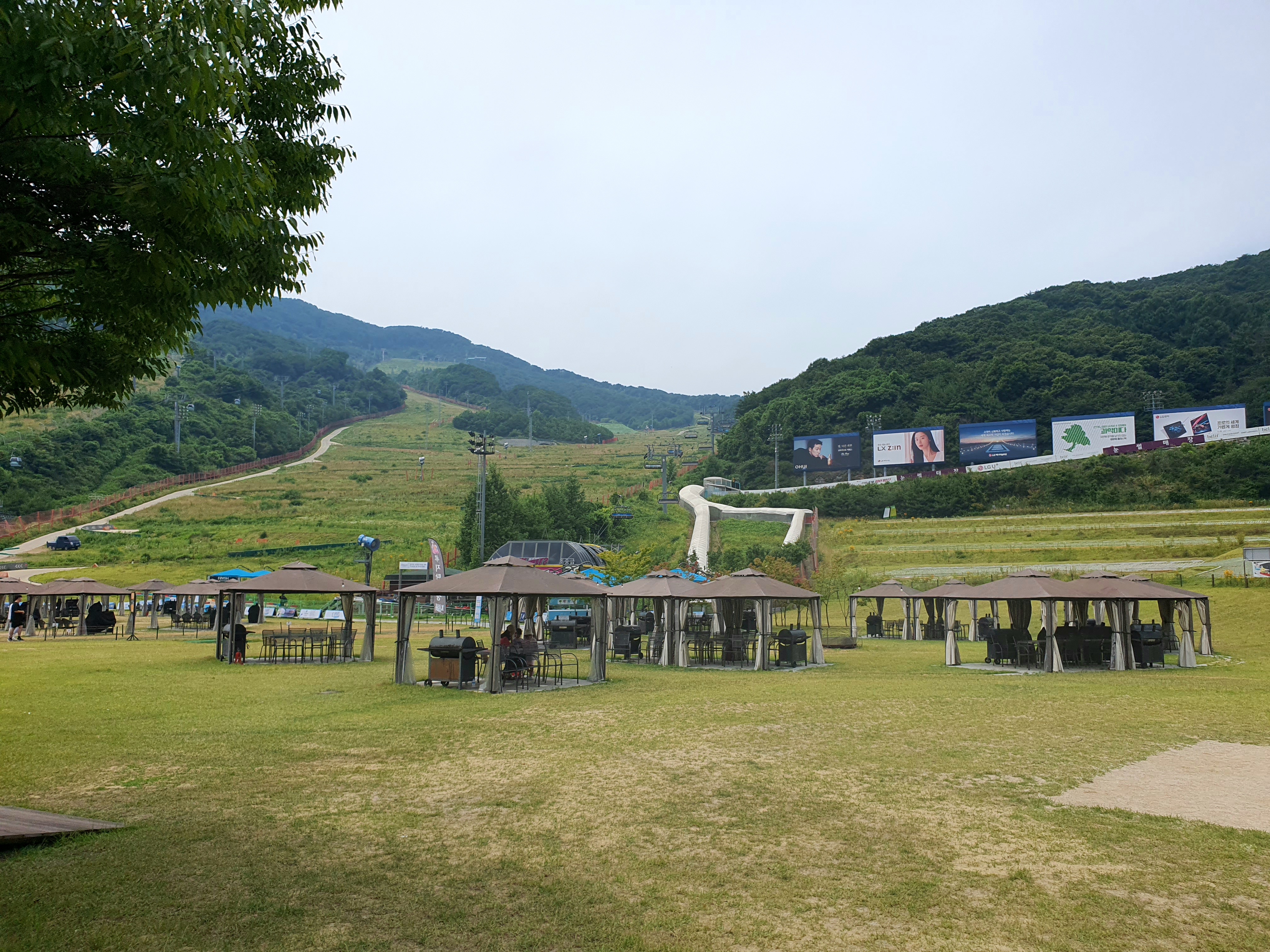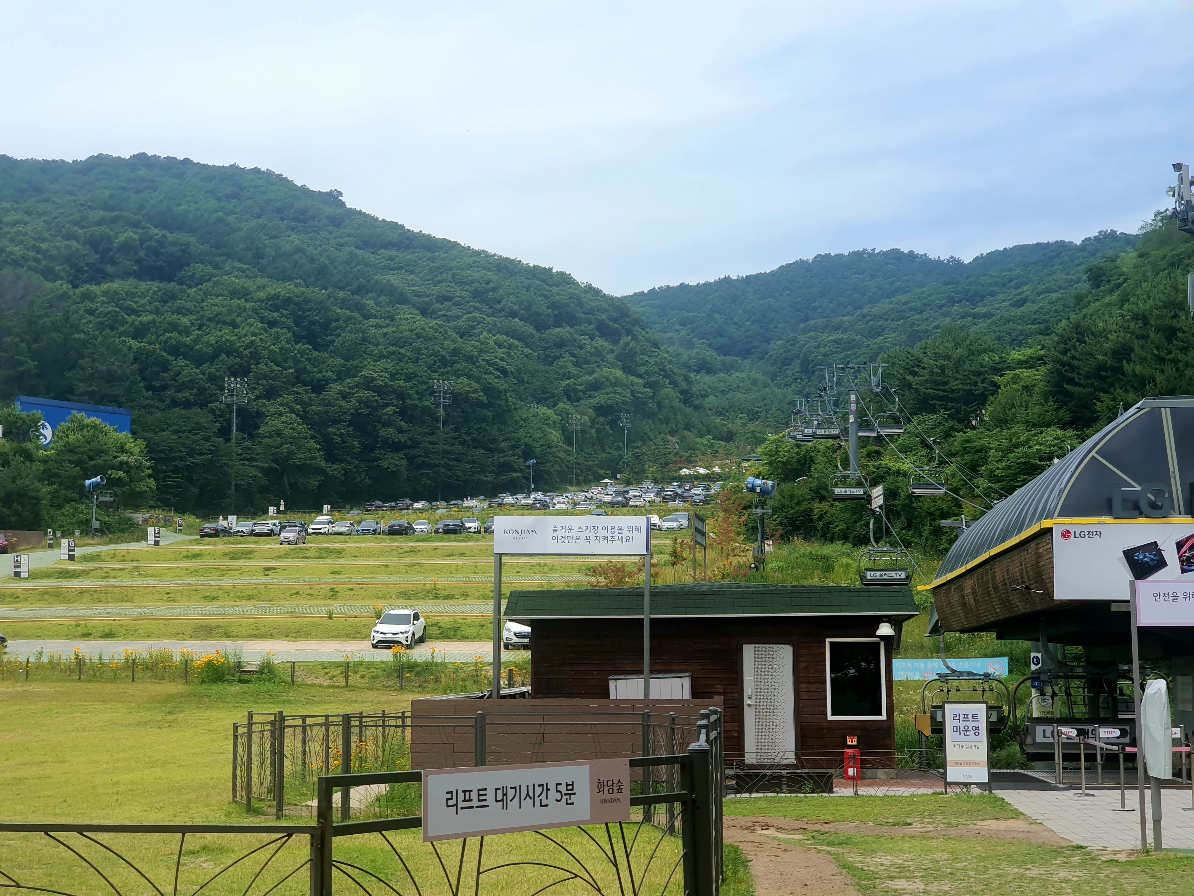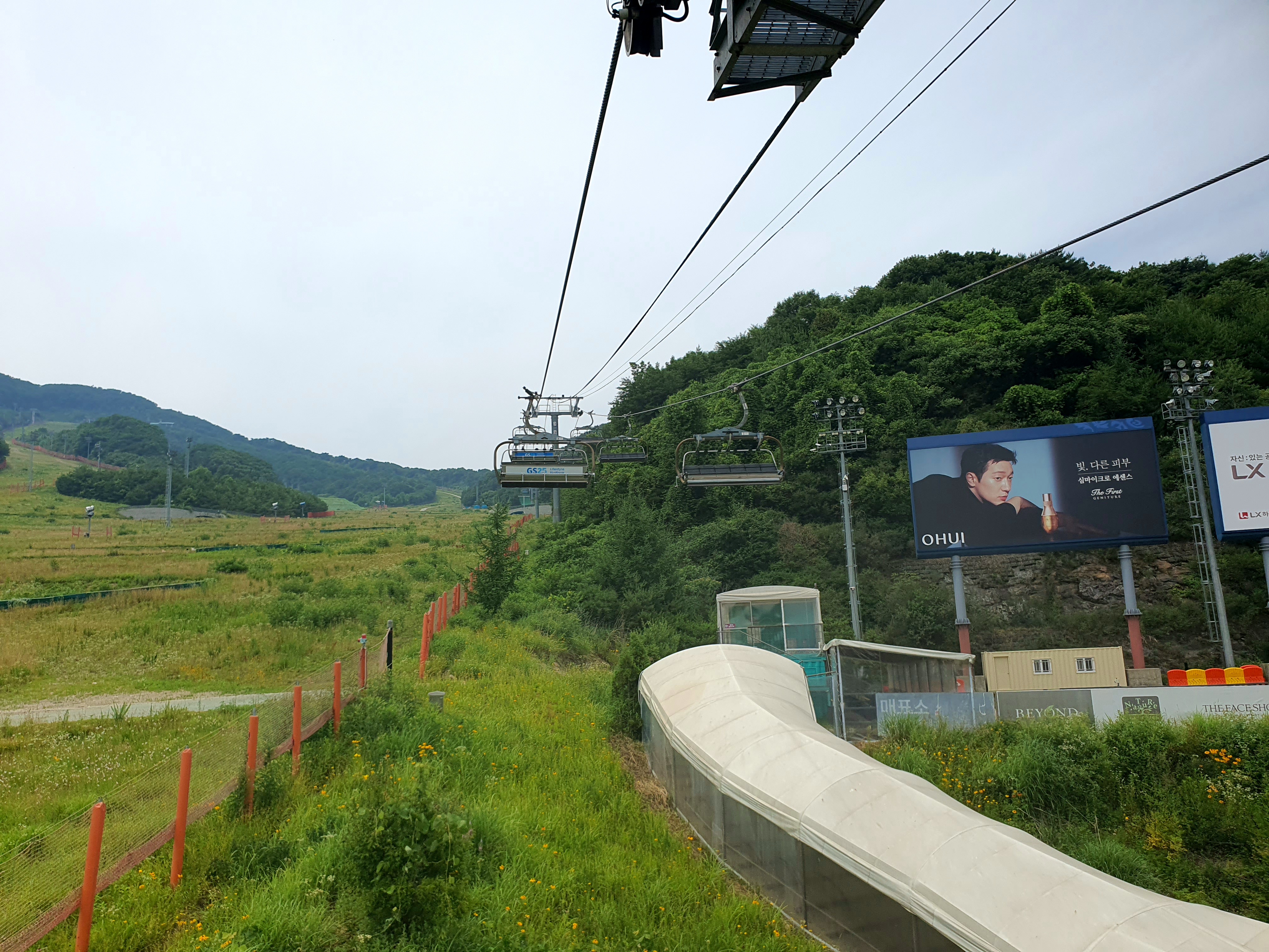 겨울의 눈 덮인 스키장이 아닌 녹음이 우러러진 산과 시원하게 부는 바람이 다가오는 더위를 무색게 합니다.