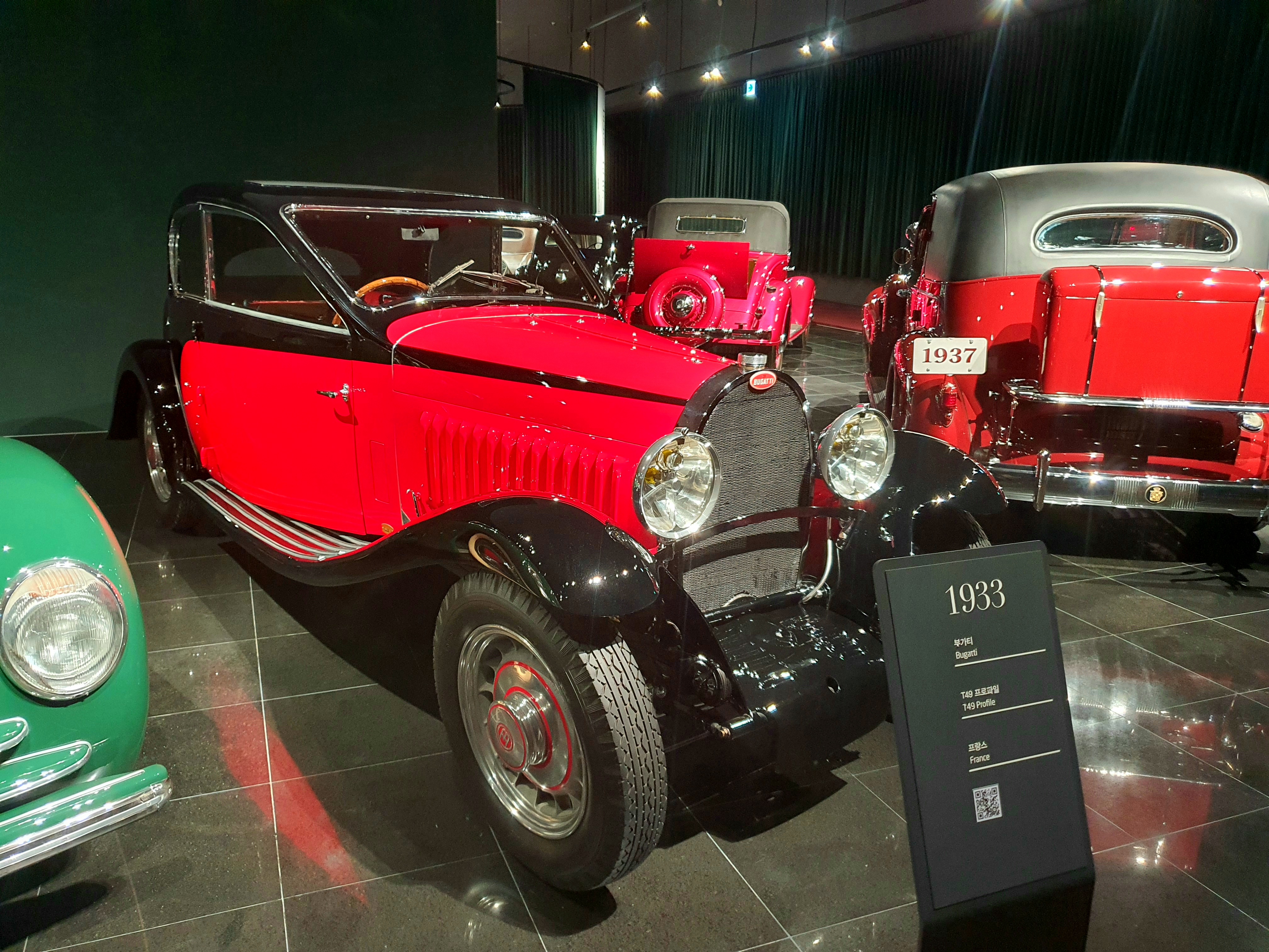 붉은색 색감이 좋은 멋진 옛날 해외 차량들이 전시되어 있어요. 중간에 실제 탑승해 볼 수 있도록 해 놓은 차들도 있습니다.