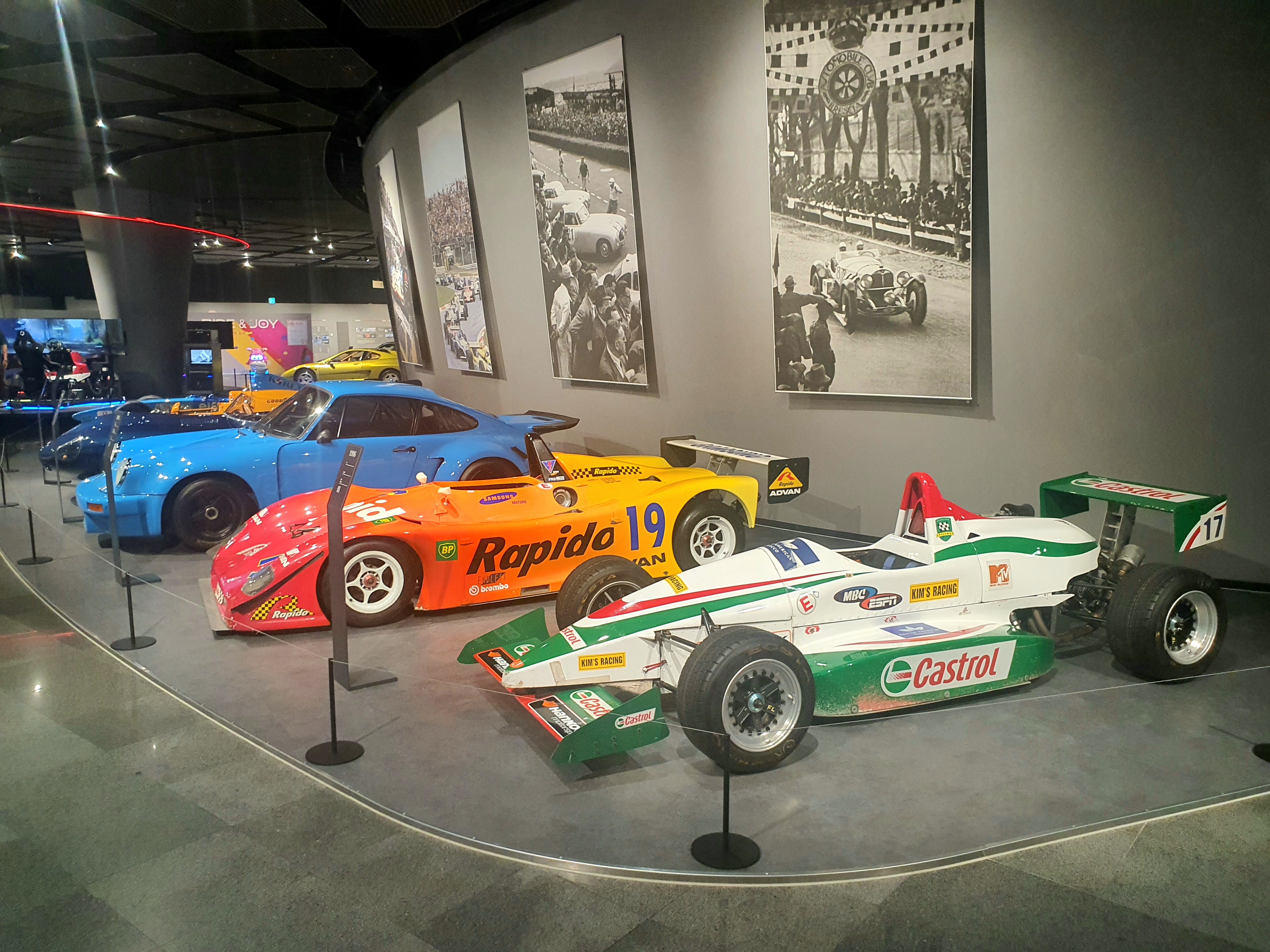 실제 트랙을 달렸던 차량들을 가져와 전시한 듯 하더라구요.