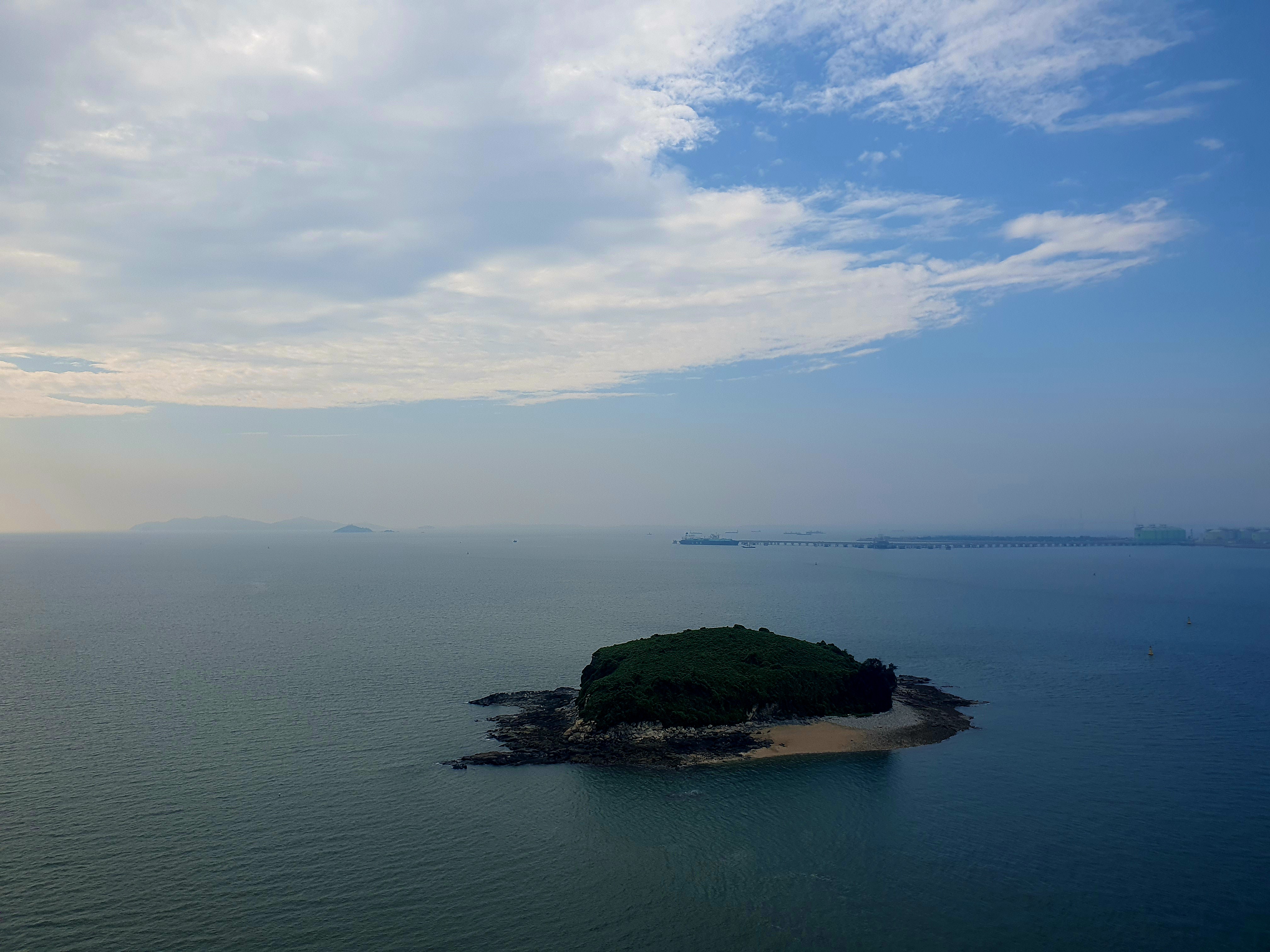 시화 이루나타워 달전망대의 카페가 있는 곳에서는 큰가리섬과 그 뒤쪽으로 인천신항을 조망할 수 있습니다.