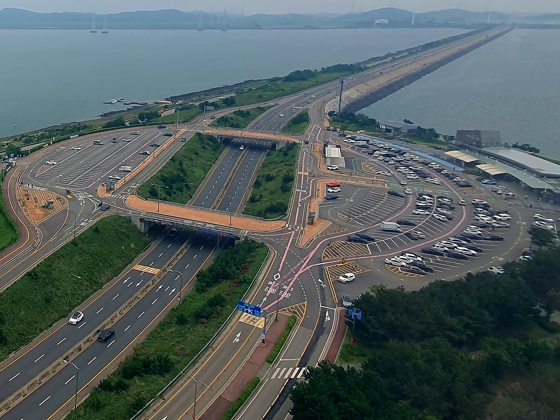 도로 좌우측 모두 주차장이 있지만, 휴게소가 있는 (대부도 가는 방향) 우측 편으로 많이 주차를 합니다. 전망대도 우측 편에 주차를 하면 보다 가까워요.