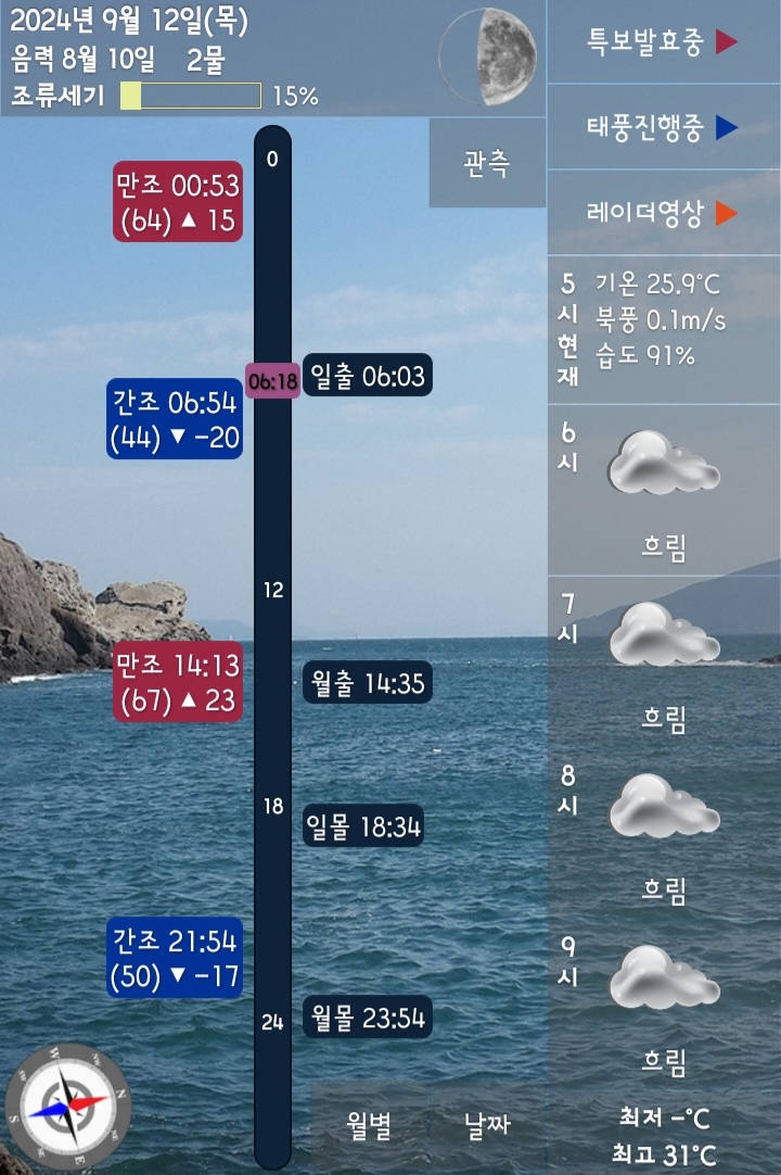 부산 여행 전에는 비예보에 바람도 강할 것이라는 예보였는데, 비는커녕 폭염에 바람도 간헐적인 강풍 이외에는 낚시하는데 전혀 무리가 없더군요.