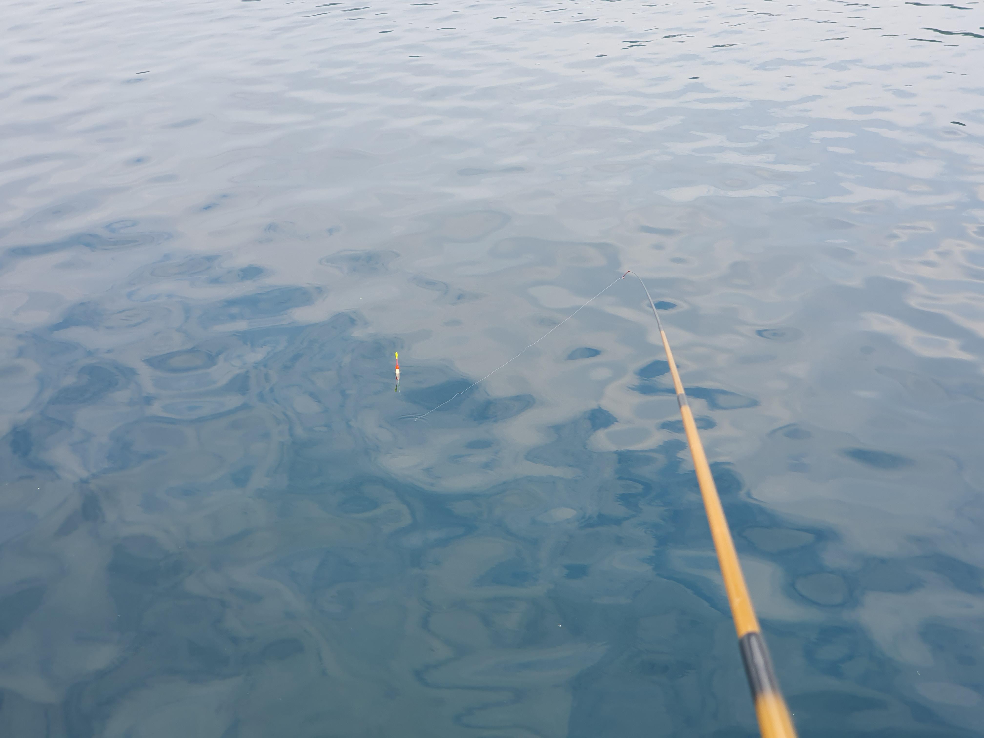 쌍포를 캐스팅했는데, 입질이 없더군요. 해가 오르기 전이라 시원했지만 심심하던 차에 코앞에 뮬고기들이 있어서 민장대도 펴 봅니다.