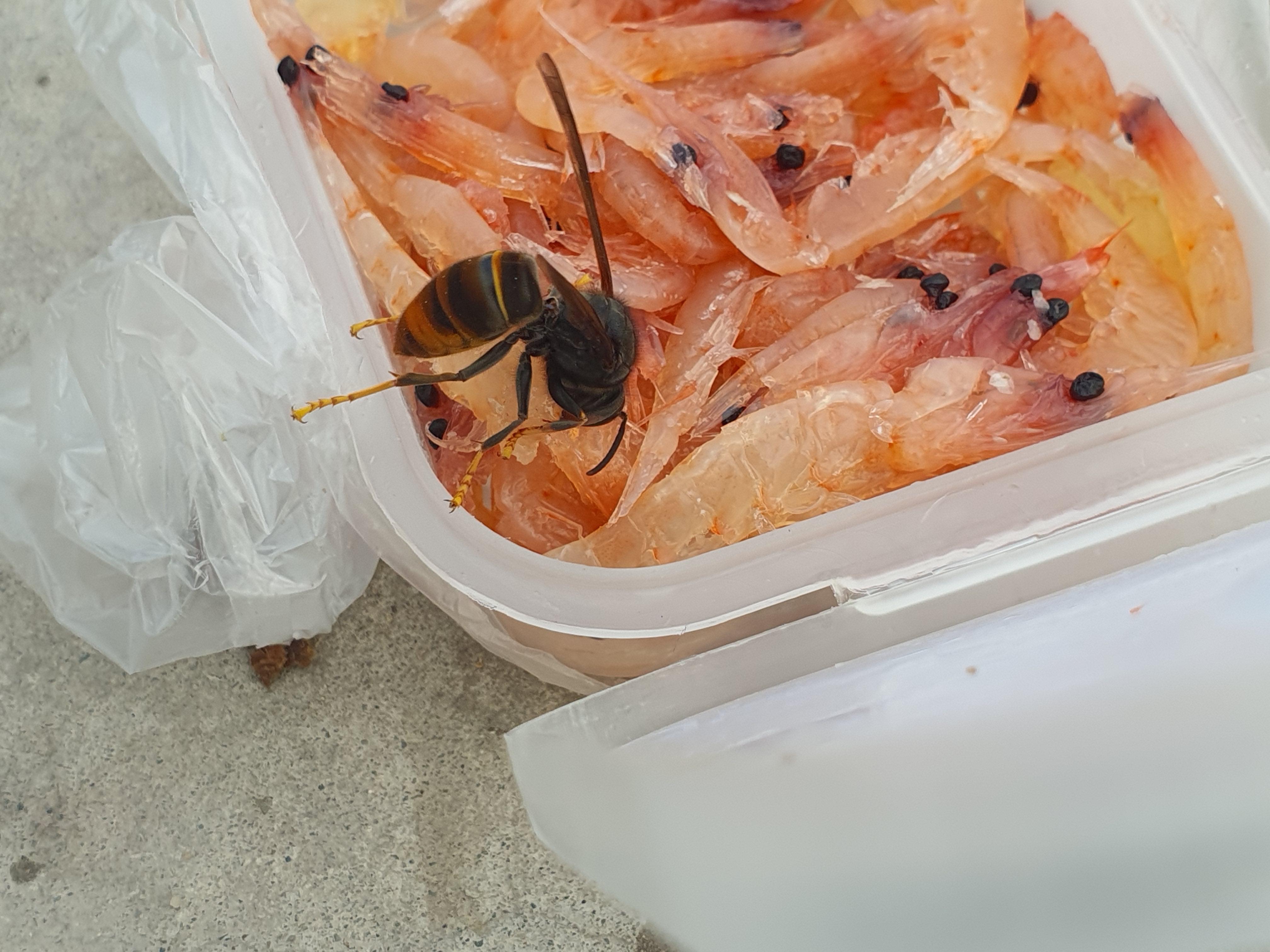 미끼 새우를 고기가 아닌 말벌이 와서 노리더군요.