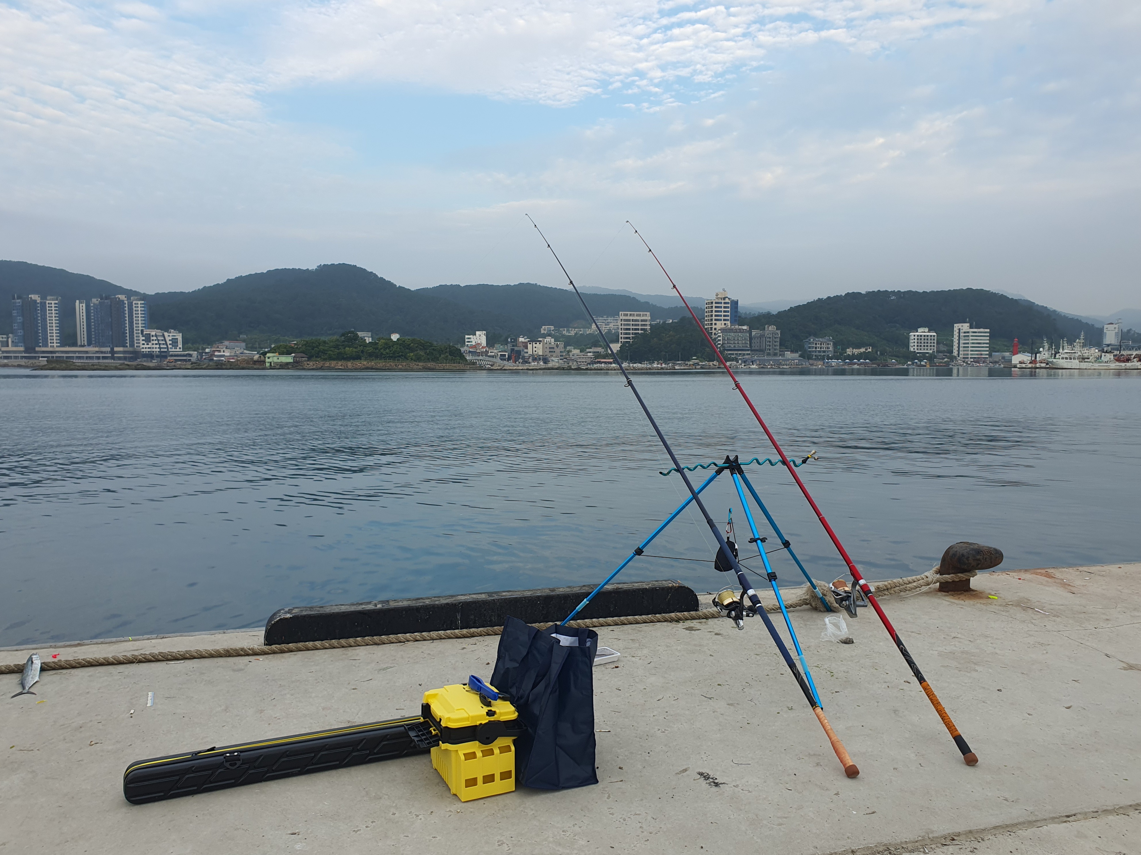 내항 초입에 난간이 있는 곳에서 최근에 붉바리를 올렸다는 글을 본 적이 있었지만 캐스팅하기가 애매해서 잠시 하다가 선착장 쪽에 자리가 나서 이동해 쌍포를 폅니다.