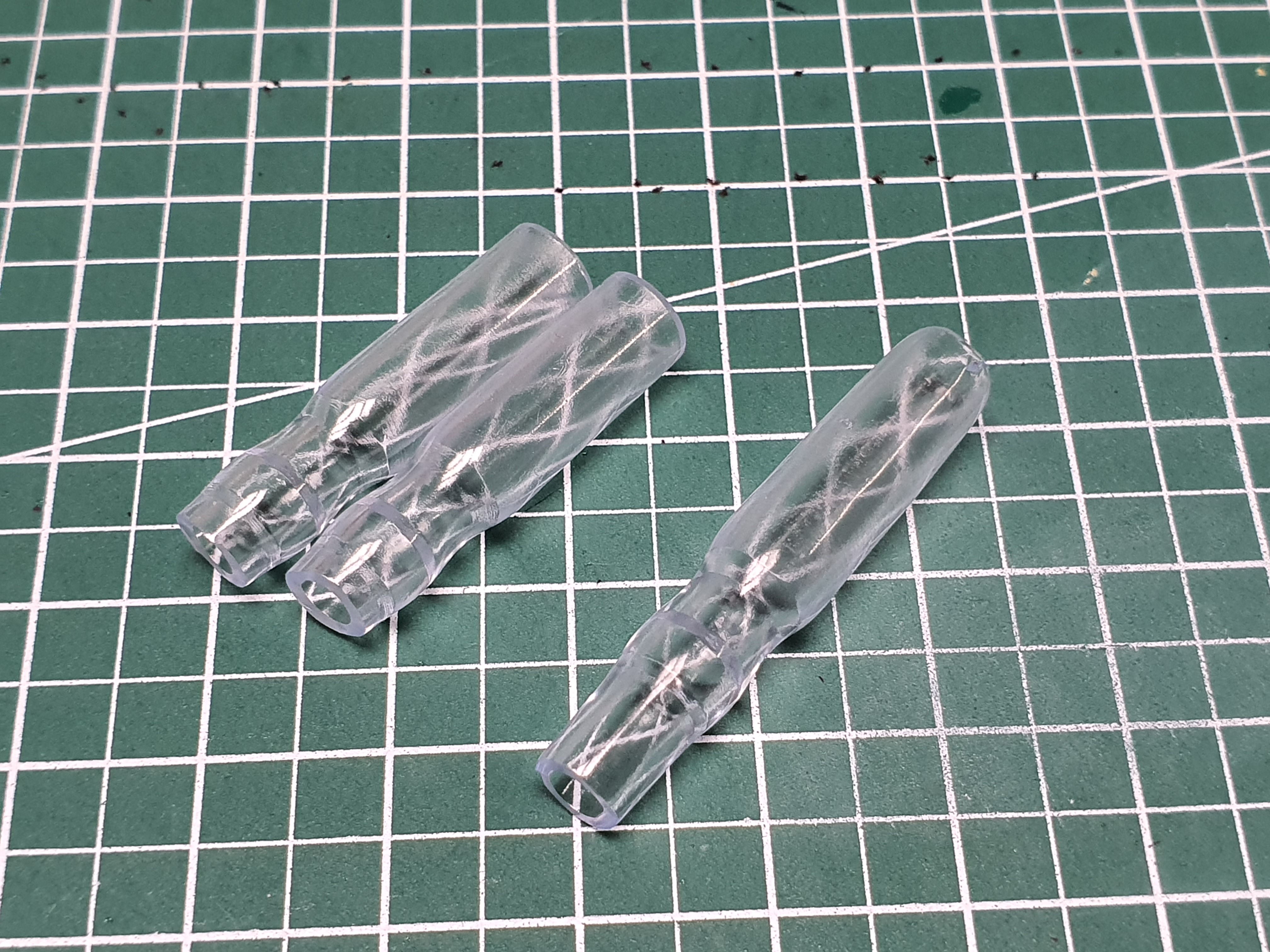 위 아래를 잘라낸 절연캡과 잘라내지 않은 절연캡 비교 사진입니다.