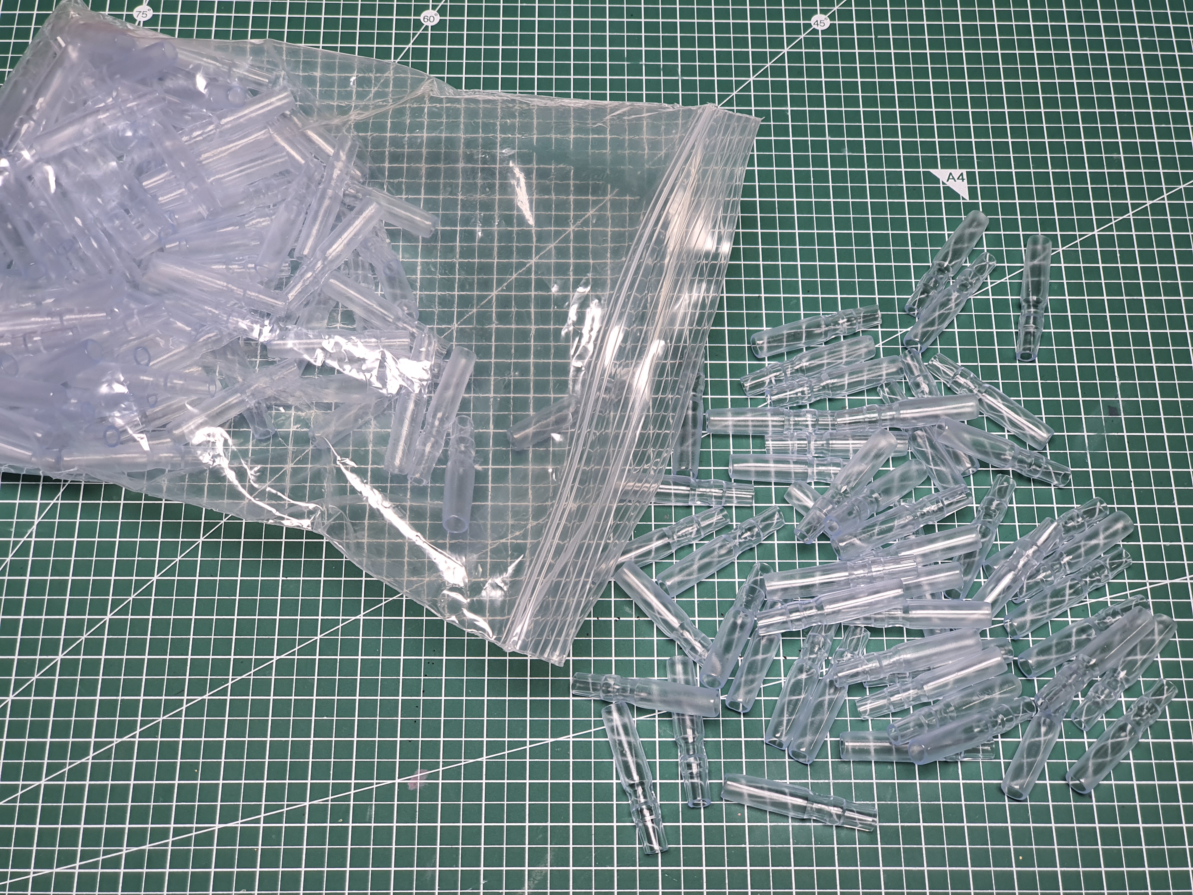 먼저 절연캡을 약간 손을 봐야 합니다. 줄보기캐미 하나는 절연캡 2개가 한쌍으로 사용되는데, 2개중 하나에 LED를 장착하기 때문에 적당한 길이로 잘라주어야 합니다.